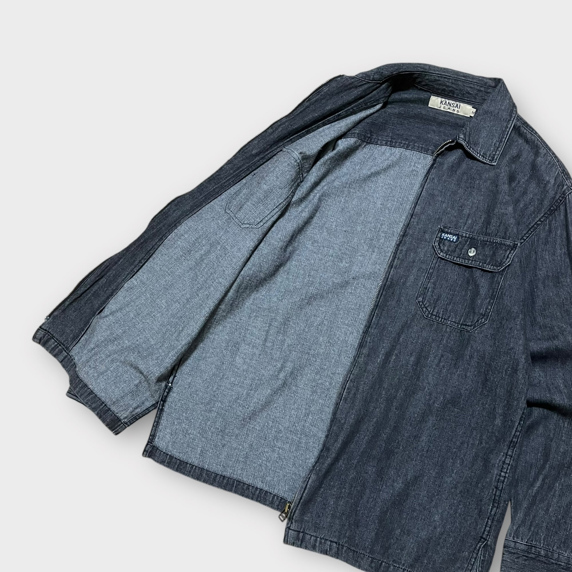 【KANSAI JEANS】1990's~ ジップアップブラックデニムシャツ