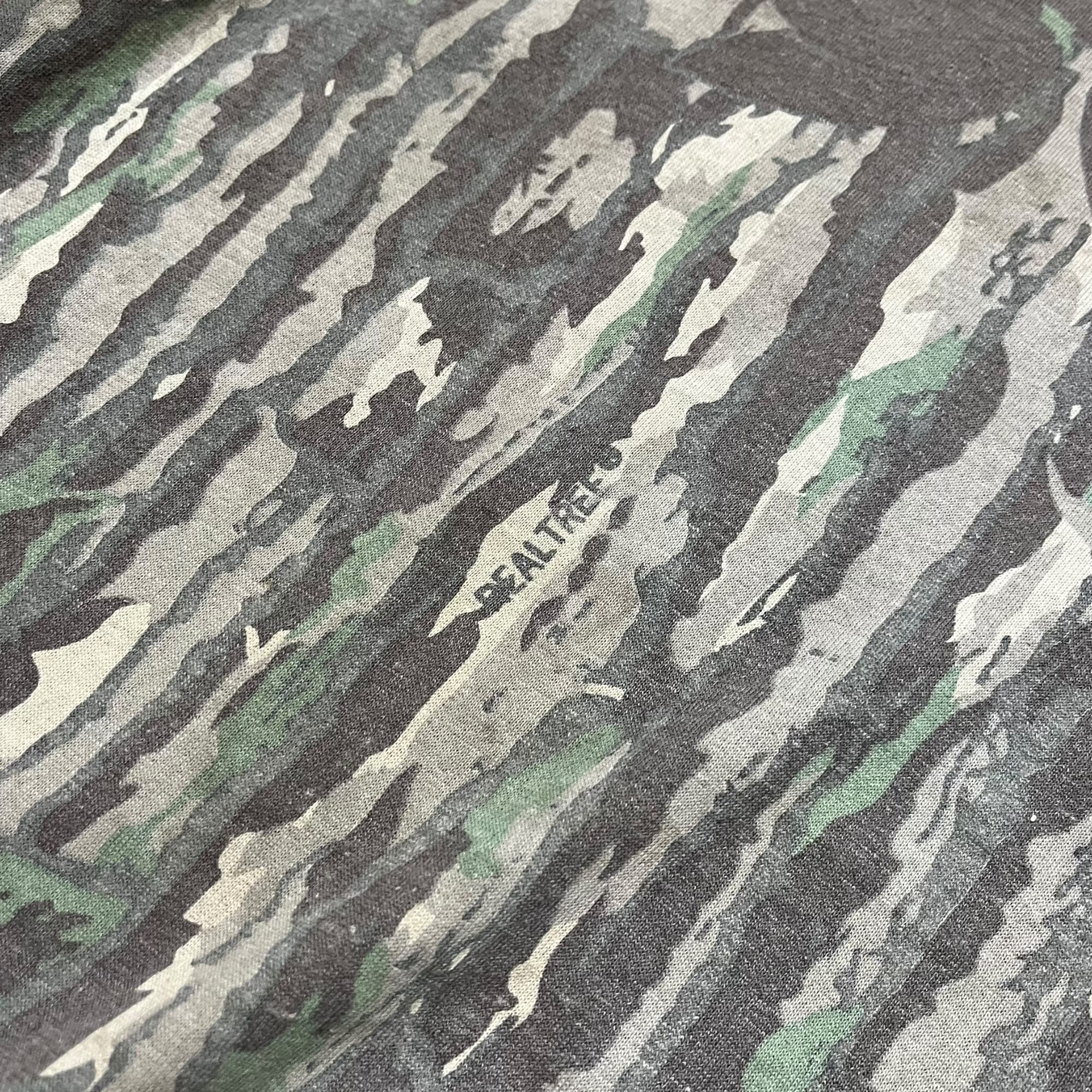 リアルツリー柄のショートスリーブTシャツ。迷彩柄の中でも人気の高いリアルツリーカモが全面にプリントされ、独特のヴィンテージ感が漂う一着です。ボディは柔らかいテロテロとしたコットンポリエステル生地で、着心地も軽やか。