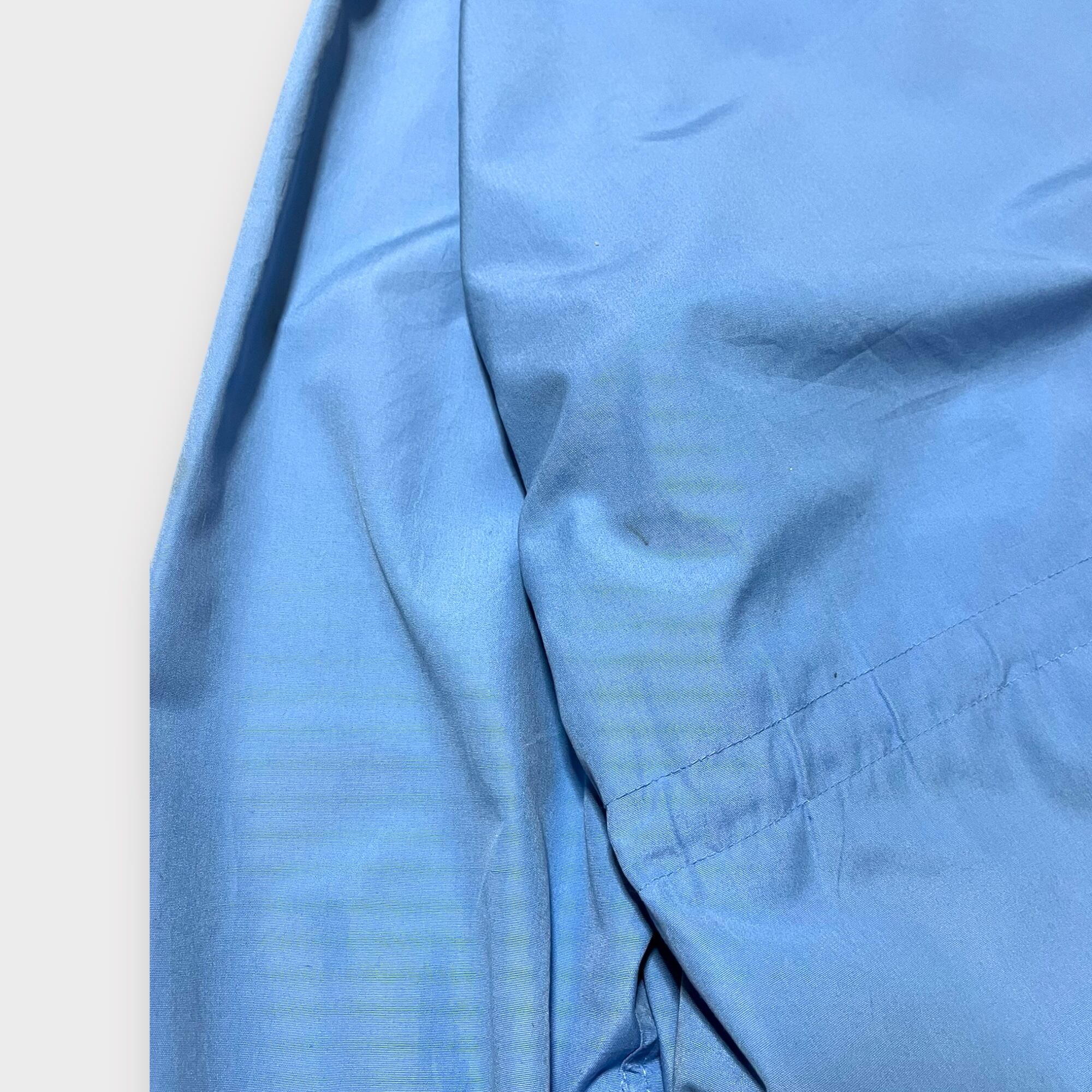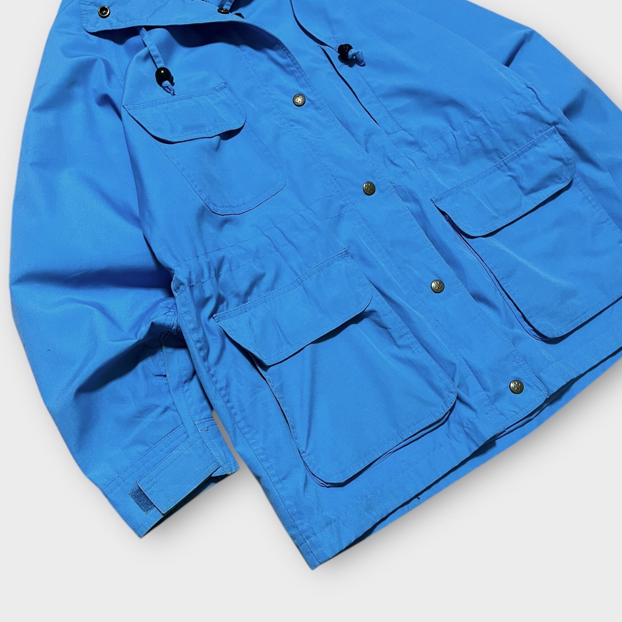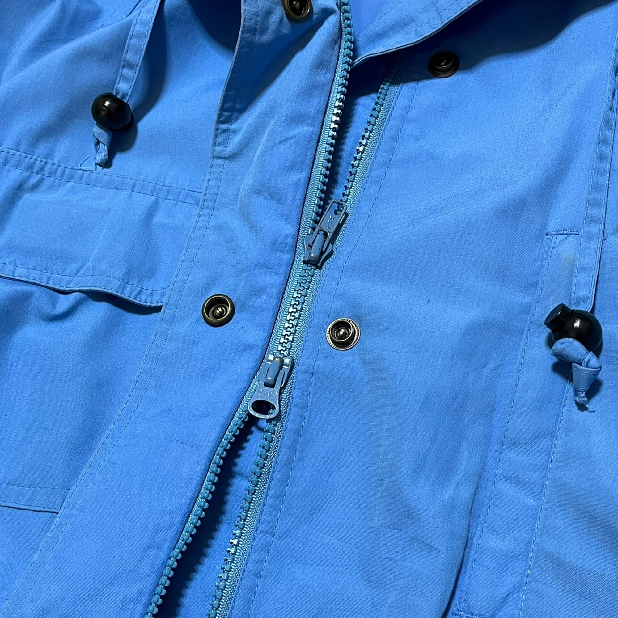1980年代のEddie Bauer製マウンテンパーカー。薄手の素材を使用しており、軽やかな着心地を実現しています。このアイテムは、アウトドアから日常使いまで、幅広いシーンで活躍できるデザインです。ライトブルーのカラーは非常に爽やかで、春や秋の軽アウターとして最適。ヴィンテージならではの風合いがあり、古き良き時代のデザインが光ります。