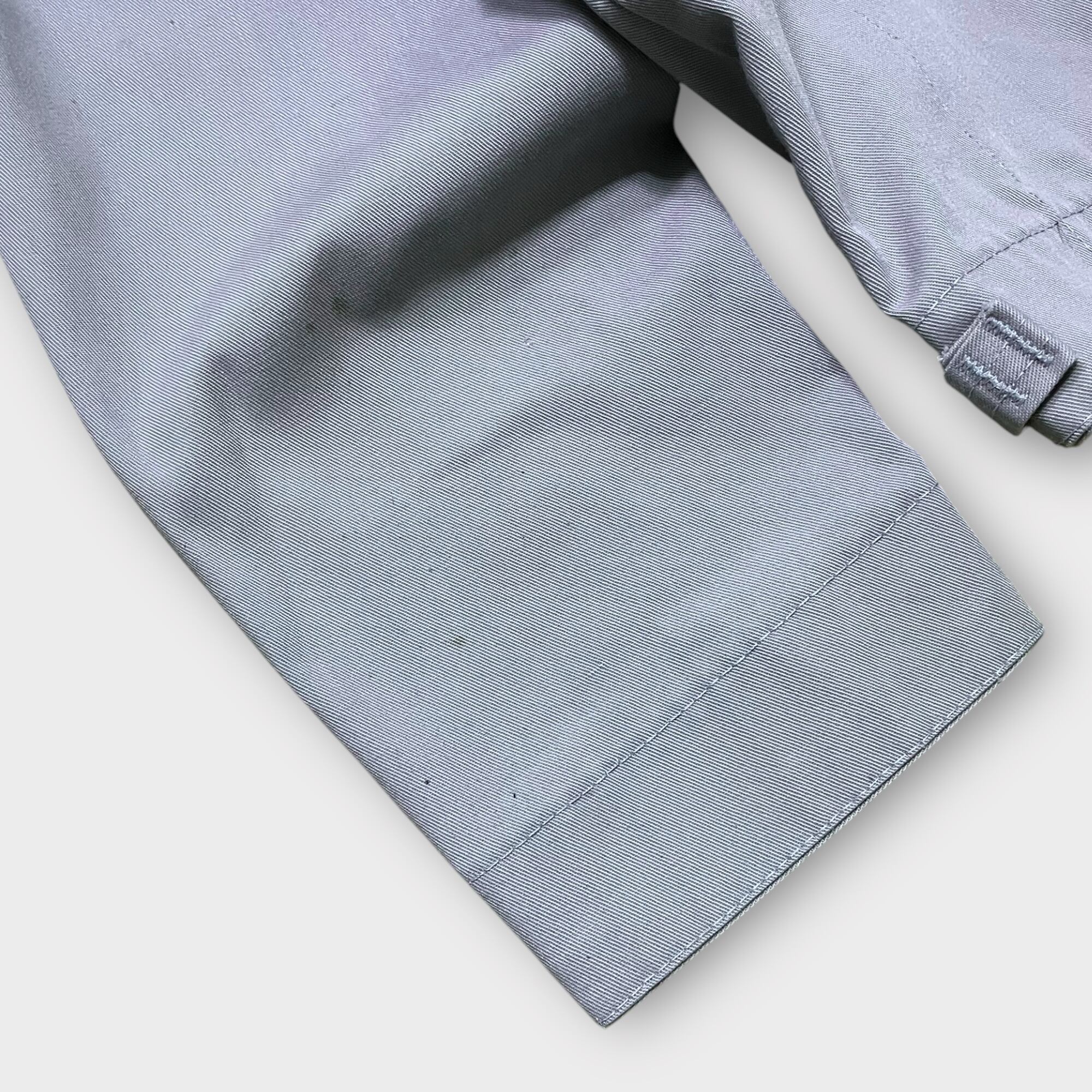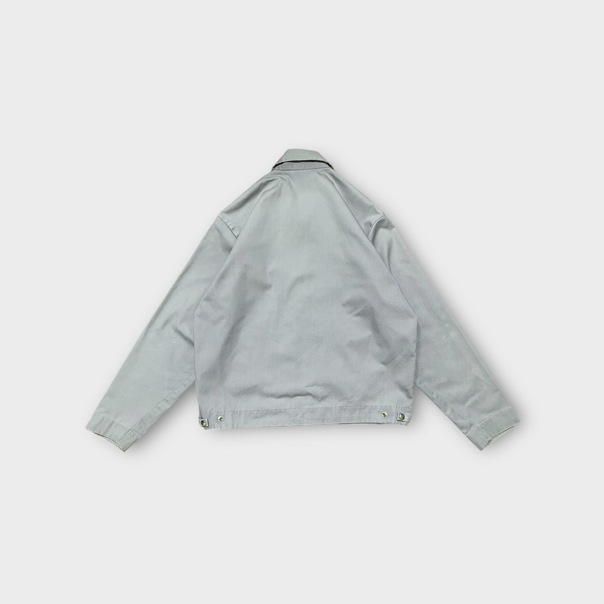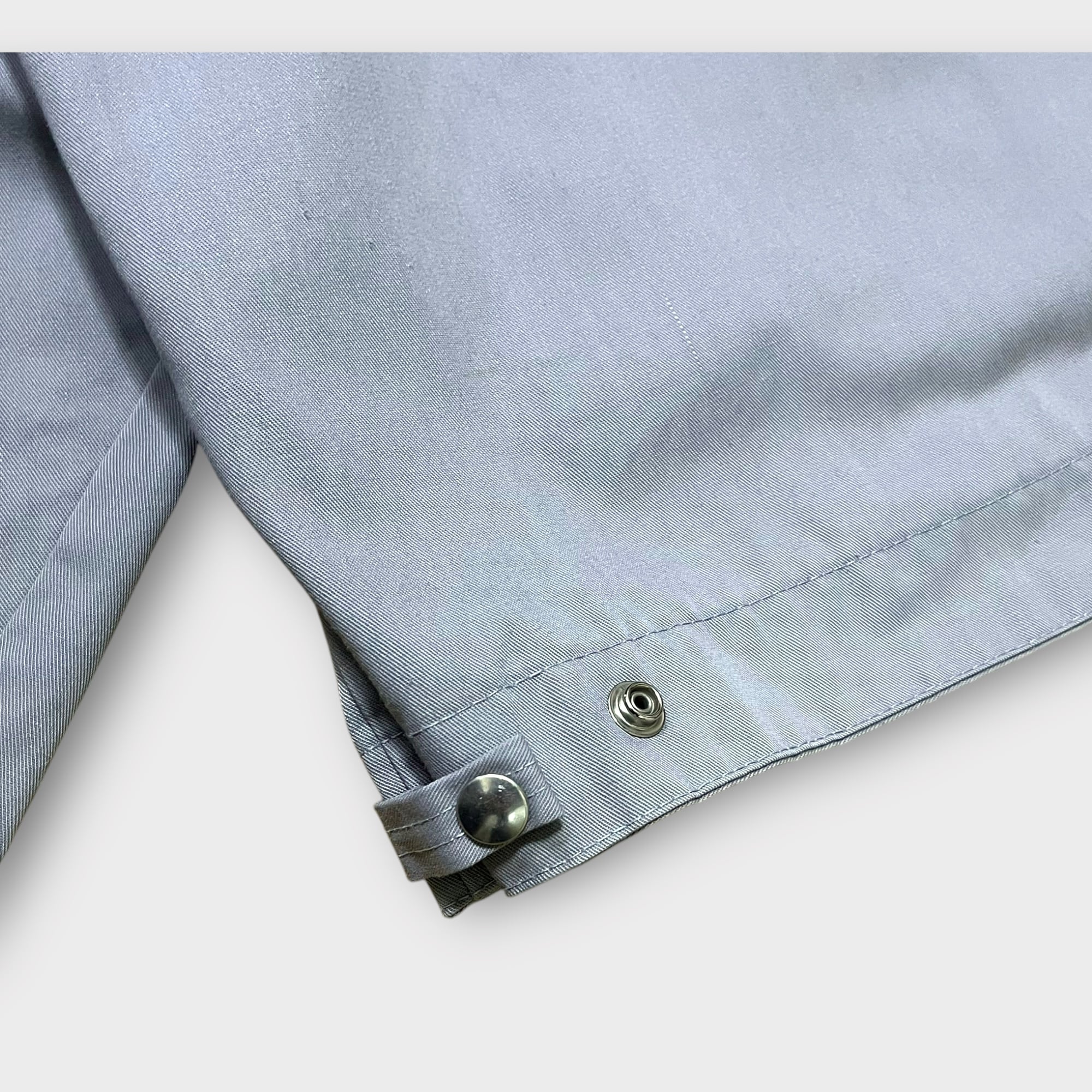 1960年代のヴィンテージワークジャケット。コットンポリエステル混紡の生地を使用し、適度なハリとしなやかさを兼ね備えた質感が特徴です。ワークウェアらしい耐久性の高さと、ポリエステル混紡によるシワになりにくい特性が魅力的な一着。軽量でありながら丈夫な作りで、デイリーユースに適しています。