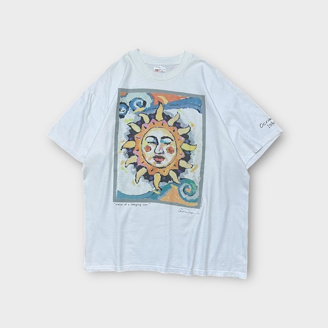 ゴッホの名作「星月夜(The Starry Night)」をモチーフにしたアートプリントTシャツ。ポスト印象派を代表するこの作品は、渦巻く夜空と輝く星々が特徴的で、独自の筆遣いと鮮やかな色彩が魅力の一枚。ブラックボディにプリントされることで、アートのディテールが際立ち、存在感のある仕上がりになっています。