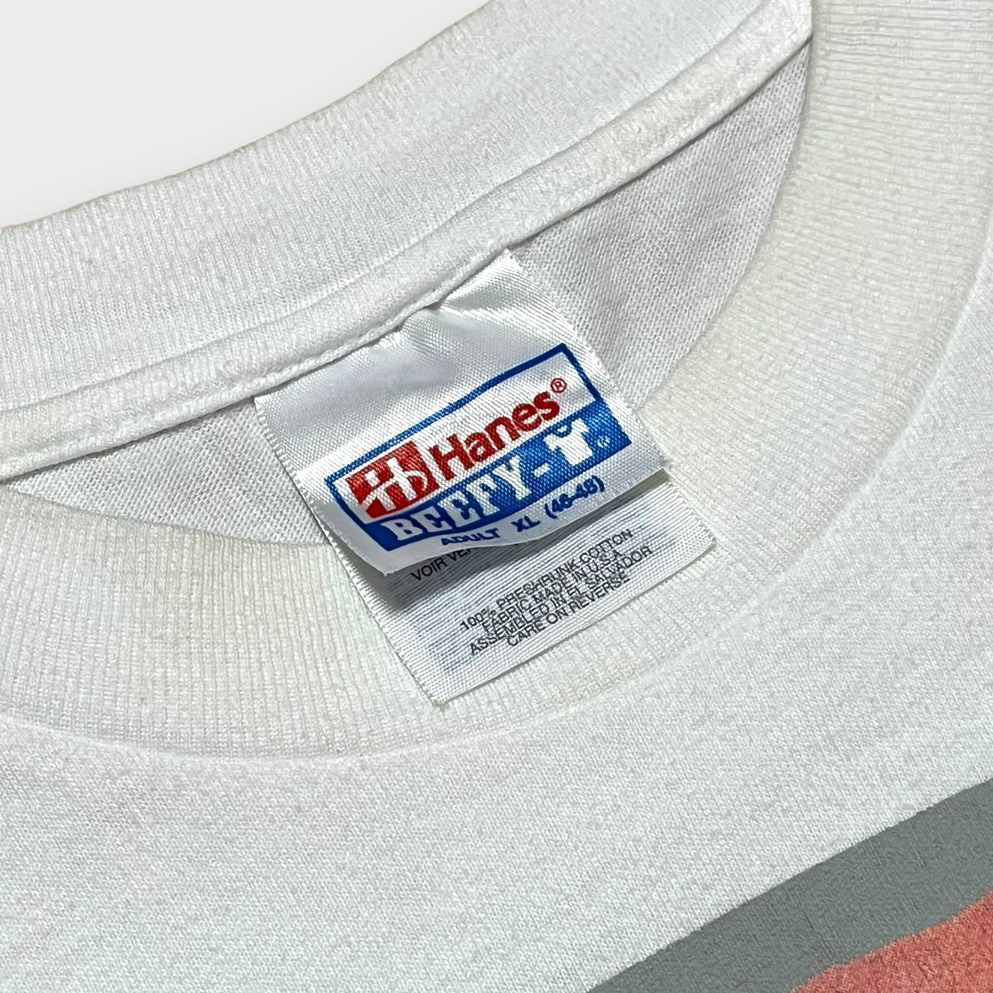 1994年製のHanes BEEFY-T ボディを使用したヴィンテージTシャツ。厚手の100%コットン素材が特徴で、しっかりとした耐久性とソフトな肌触りが魅力の一枚です。FABRIC MADE IN USA(生地はアメリカ製)です。