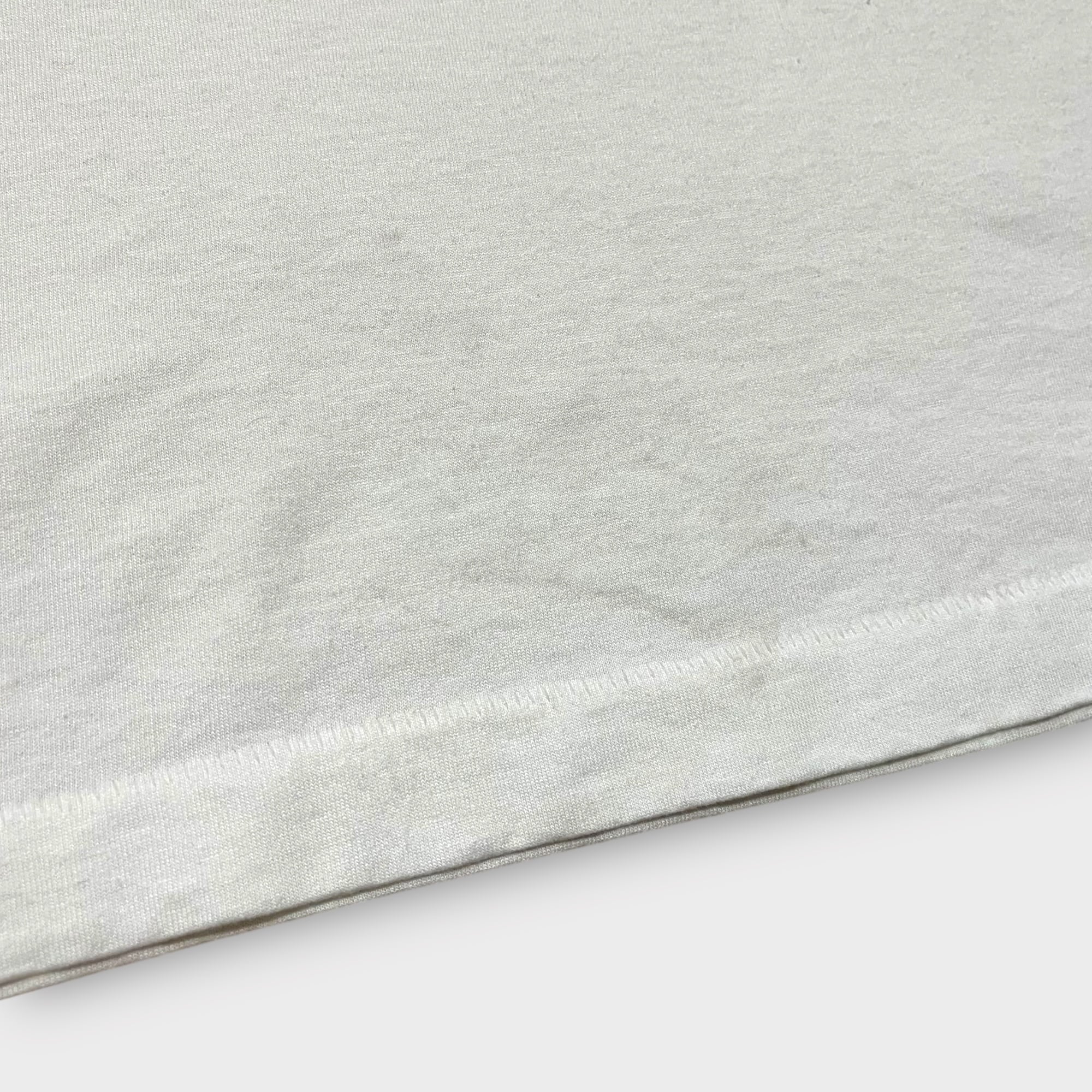 ボディは50%コットン / 50%ポリエステルの混紡素材を使用し、コットンの柔らかさとポリエステルの耐久性を兼ね備えた仕上がり。ヴィンテージTシャツらしいシングルステッチ仕様で、時代を感じさせるディテールも魅力です。