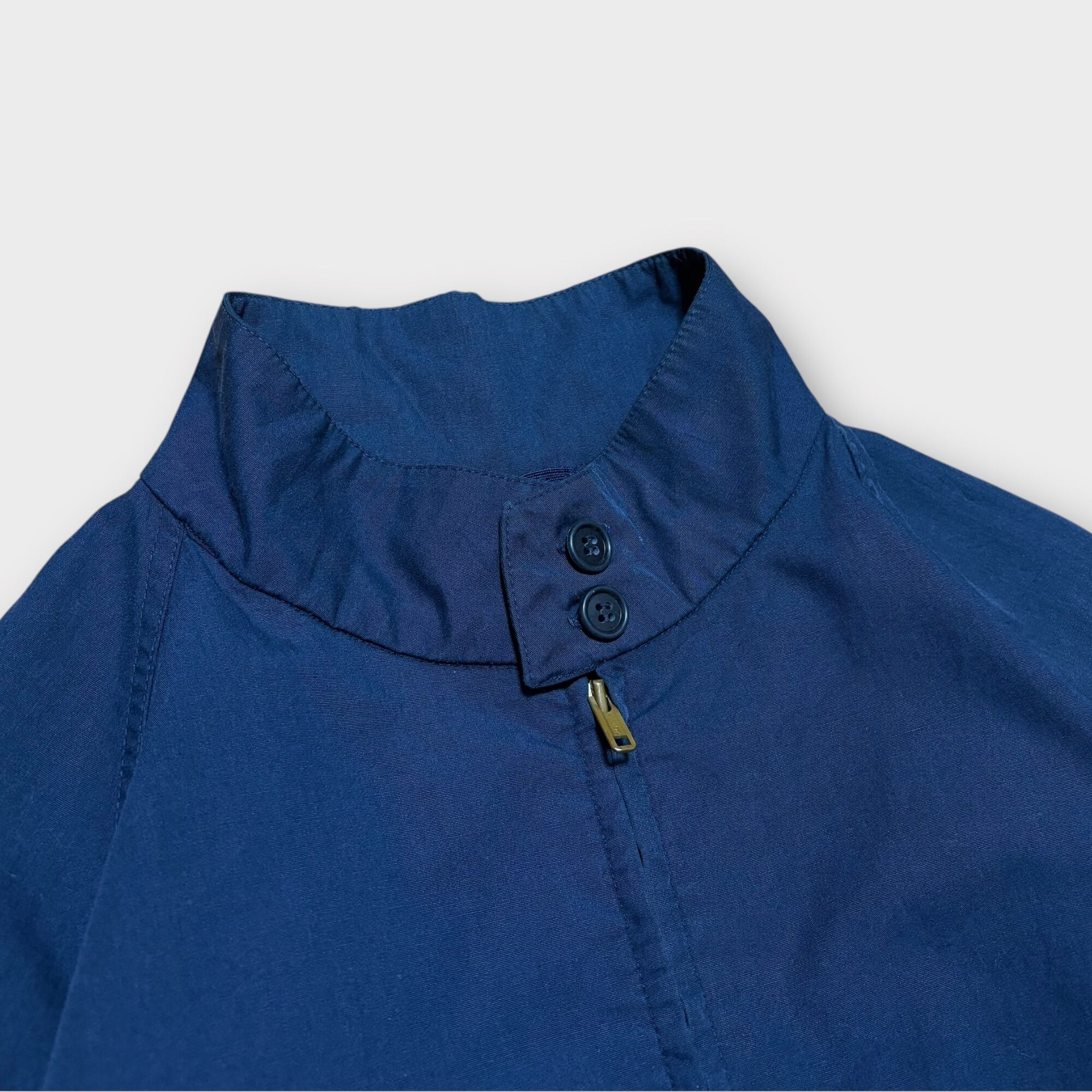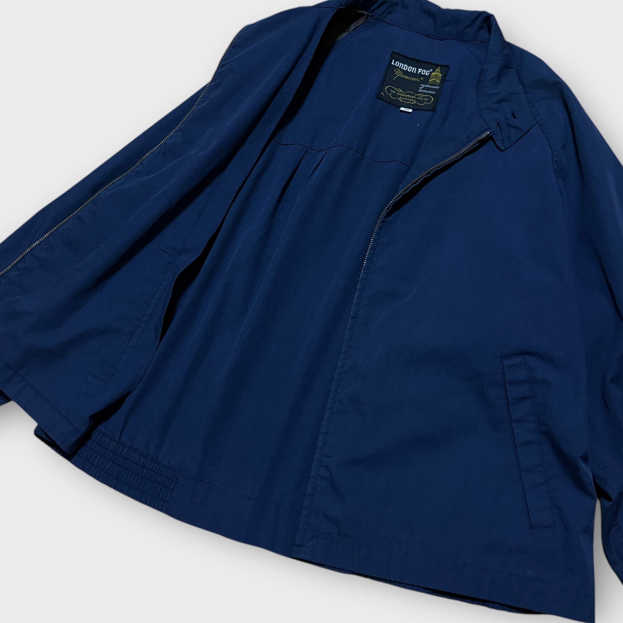 1923年創業のアメリカンブランドLONDON FOGによる1960〜70年代製ヴィンテージドリズラージャケット。アメリカ軍のレインコート製造にも関わるブランドとして耐久性の高さに定評があり、このジャケットもまた実用性と洗練されたデザインが融合した一着となっています。シワになりにくく軽量ながら丈夫なダクロンポリエステル×コットン素材を使用し、適度なハリ感とさらりとした肌触りが特徴。裏地のないシングル仕様で、通気性が良く春秋のライトアウターとして最適です。