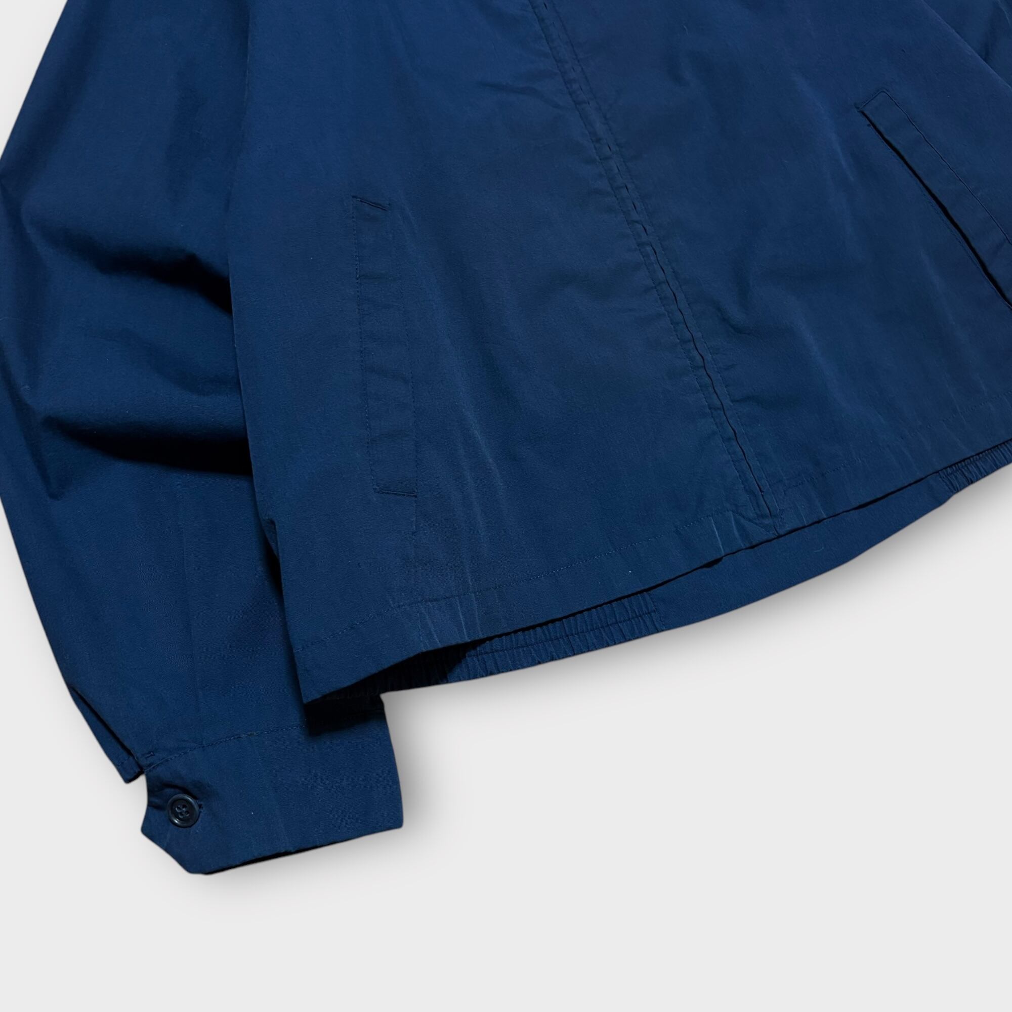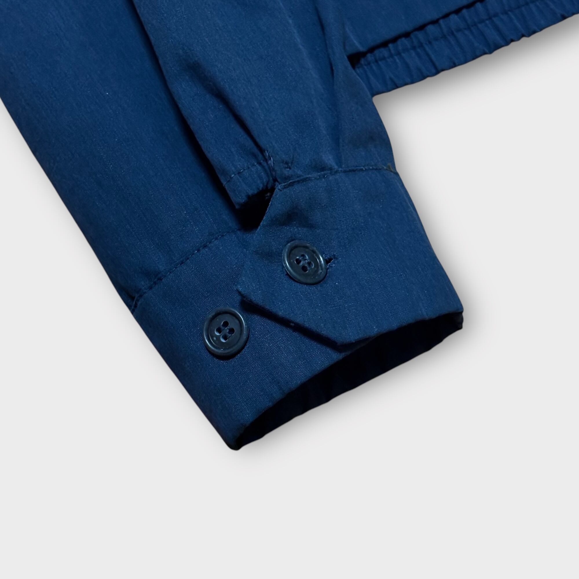 落ち着いたネイビーカラーは、トラッドやミリタリースタイルに馴染みやすく、デニムやチノパンとの相性も抜群。ゆとりのあるボックスシルエットは、インナーを選ばず幅広い着こなしが可能です。クラシックなディテールと現代のファッションにも馴染むデザイン性を兼ね備えた、ヴィンテージジャケットならではの魅力が詰まった一着。