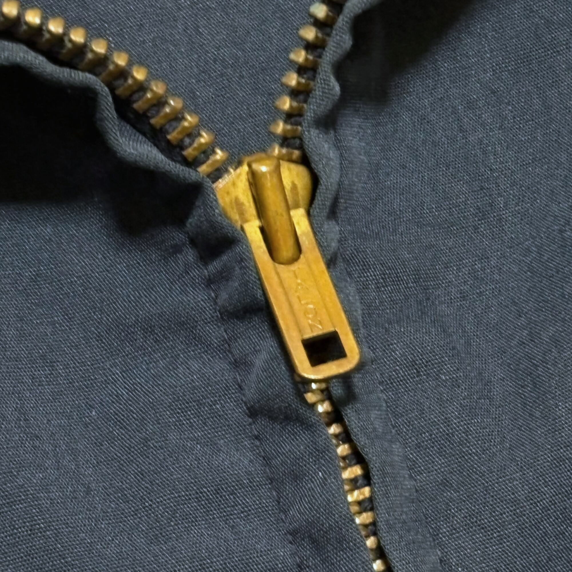 ディテールには、ヴィンテージらしいTALON社製のブラスジップを採用し、無骨な雰囲気をプラス。スタンドカラーにはチンストラップが付き、防風性を高めると同時にデザインのアクセントになっています。袖口にはボタン付きストラップを備え、フィット感の調整が可能。背面にはアクションプリーツが施され、腕の動きやすさを確保しながらもシルエットの美しさを維持します。
