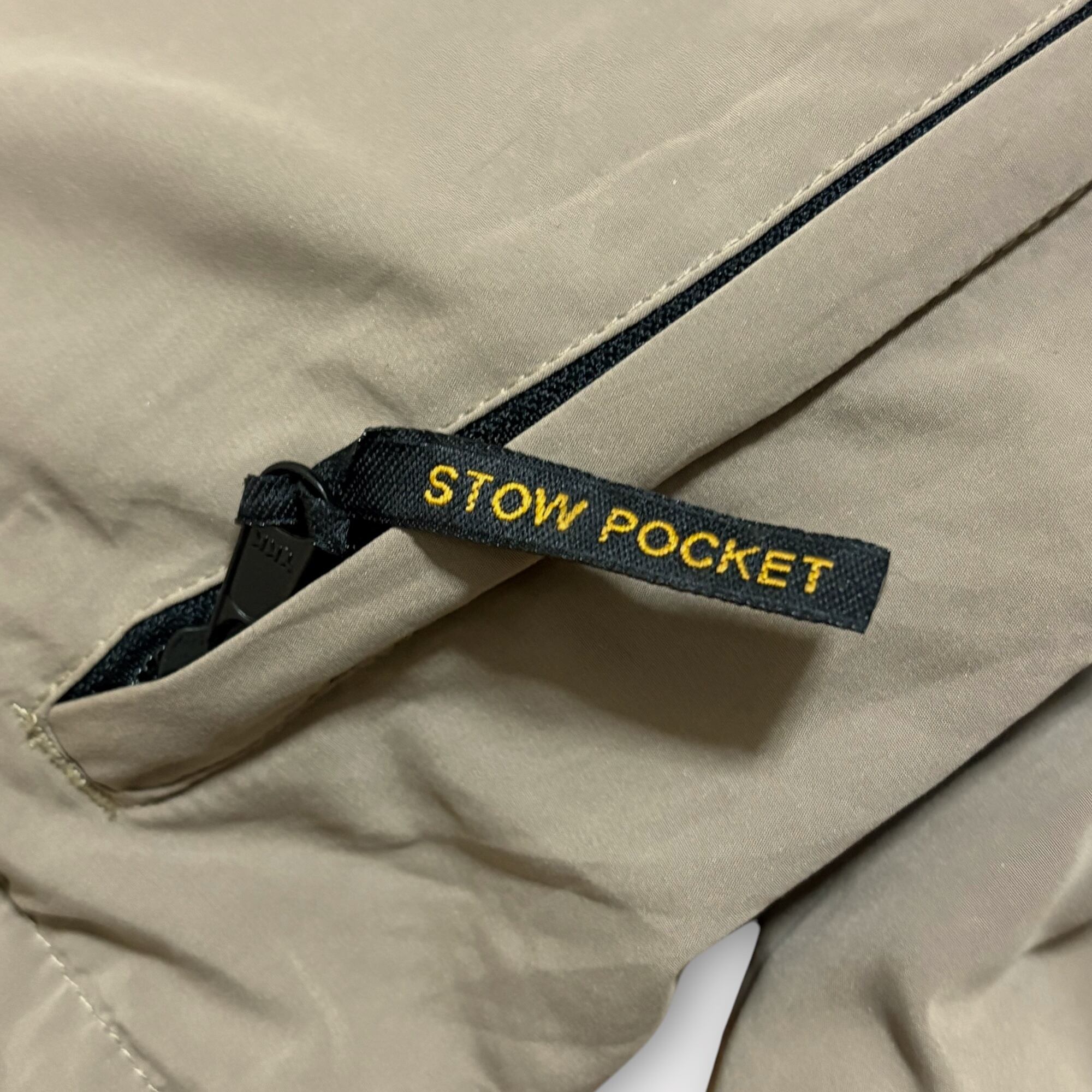背面にはSTOW POCKETのジップポケットを搭載し、ジャケット自体をコンパクトに収納できるパッカブル仕様。フィッシングウェアとしての実用性はもちろん、ストリートやアウトドアスタイルのアクセントとしても活躍するアイテムです。