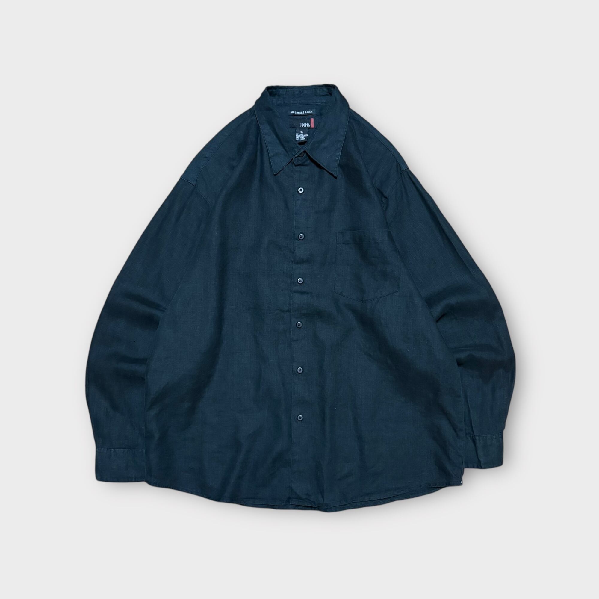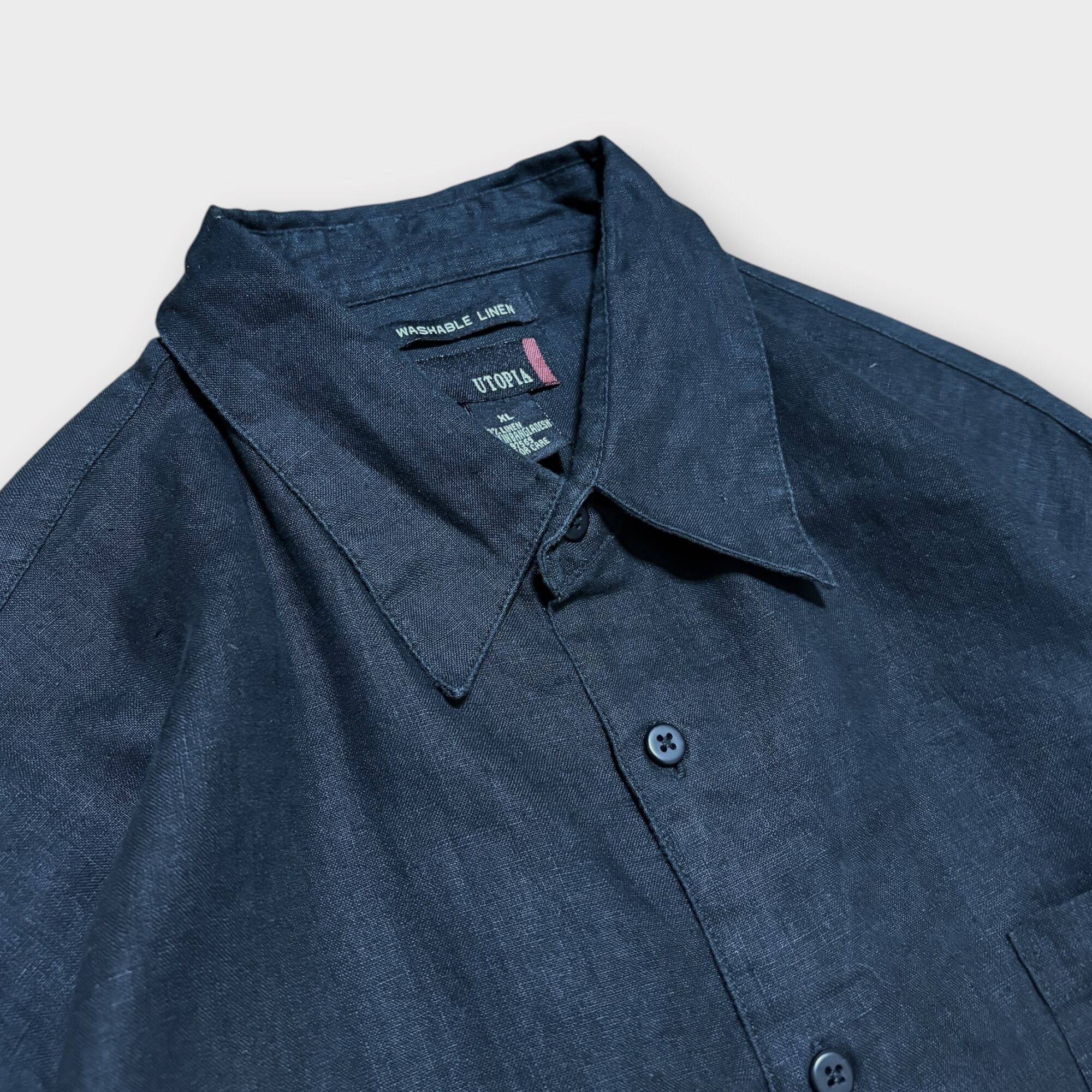 【UTOPIA】ウォッシャブルリネンシャツ ブラック