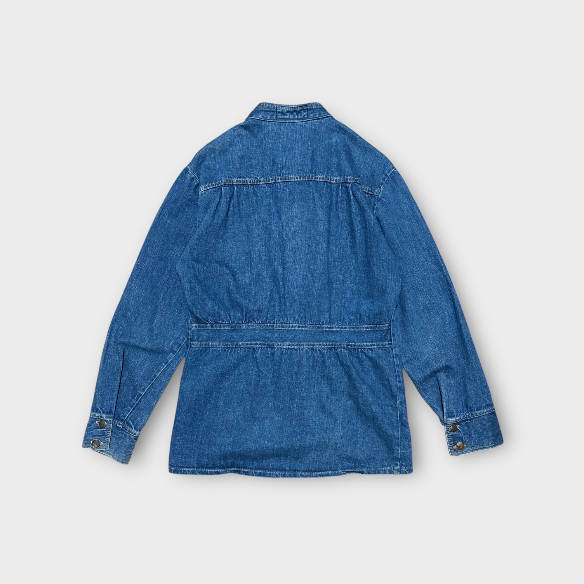背面にはギャザーを効かせた切り替えが入り、立体感あるシルエットに。作業着としての実用性を備えながら、現代のファッションシーンにもマッチするデザイン性の高さは、まさにヴィンテージならでは。