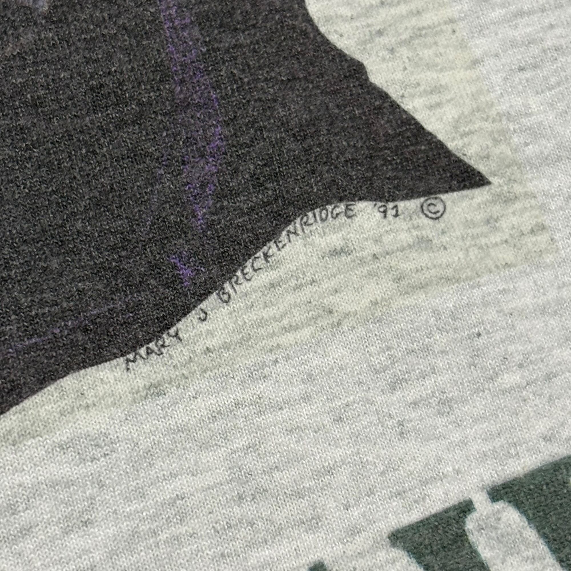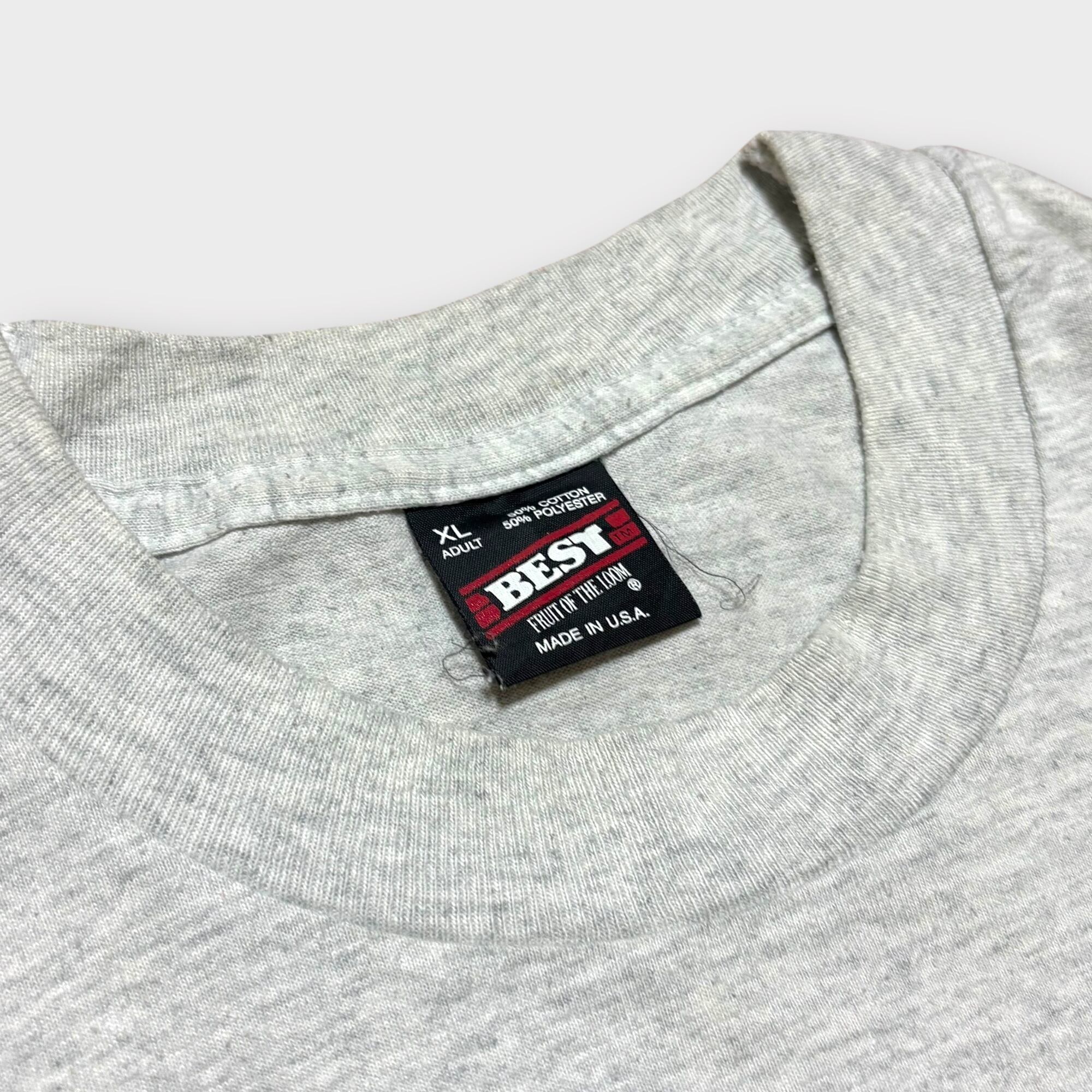1991年コピーライト入りの一枚。ライトグレーのボディに、フロント・バックともに強いメッセージ性を持ったグラフィックがプリントされたヴィンテージTシャツ。
