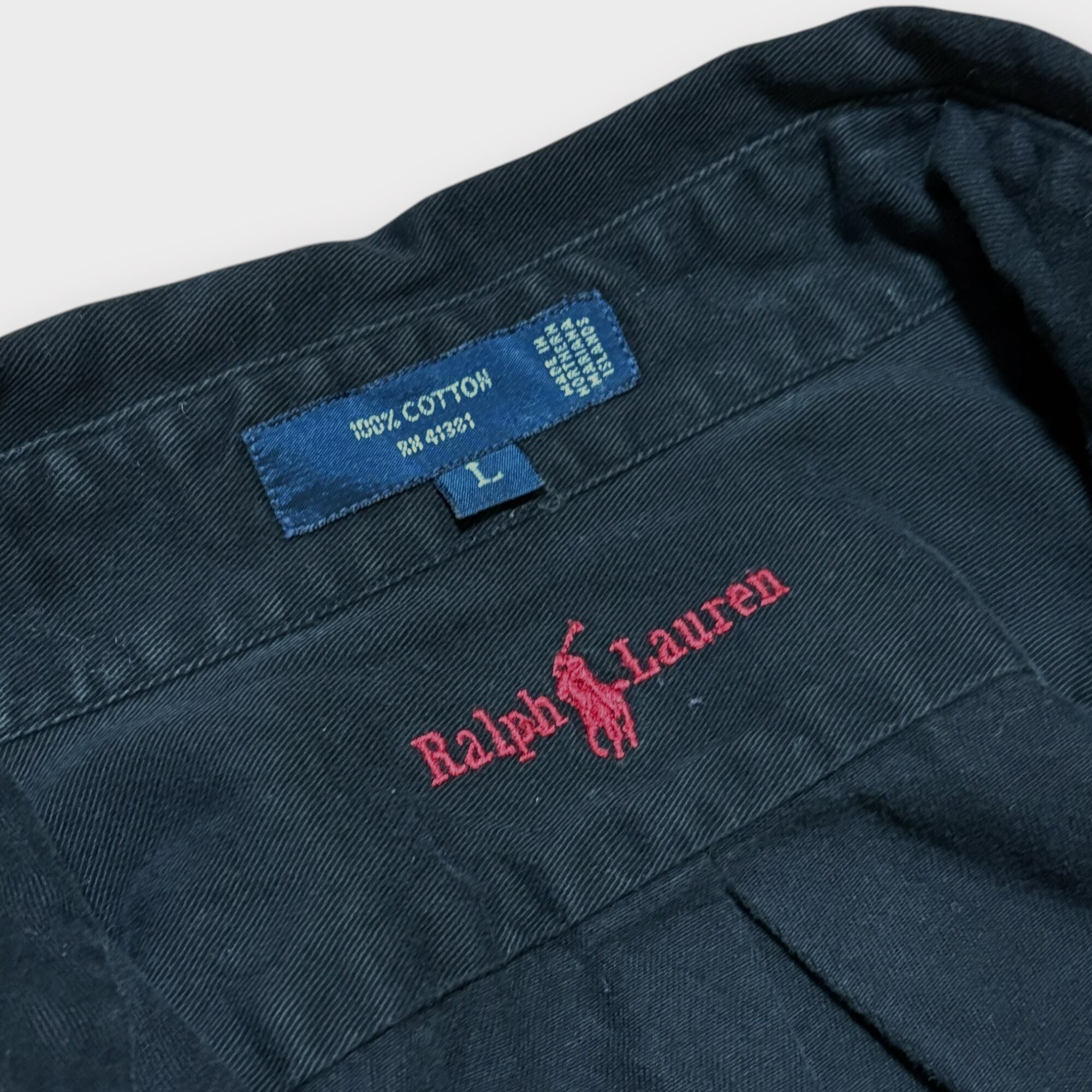 【VINTAGE】1990’s “Ralph Lauren” Black Cotton Twill B.D. Shirt