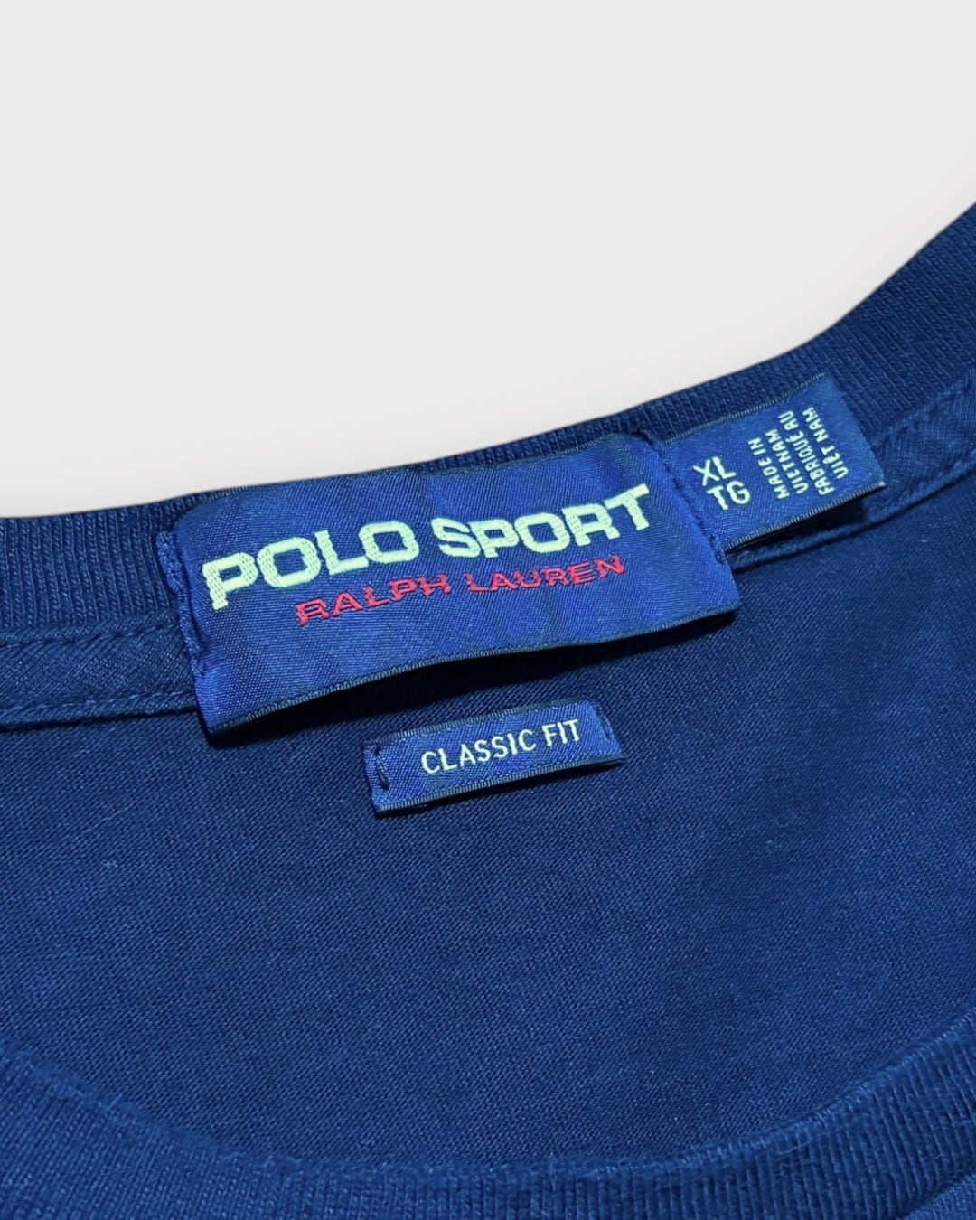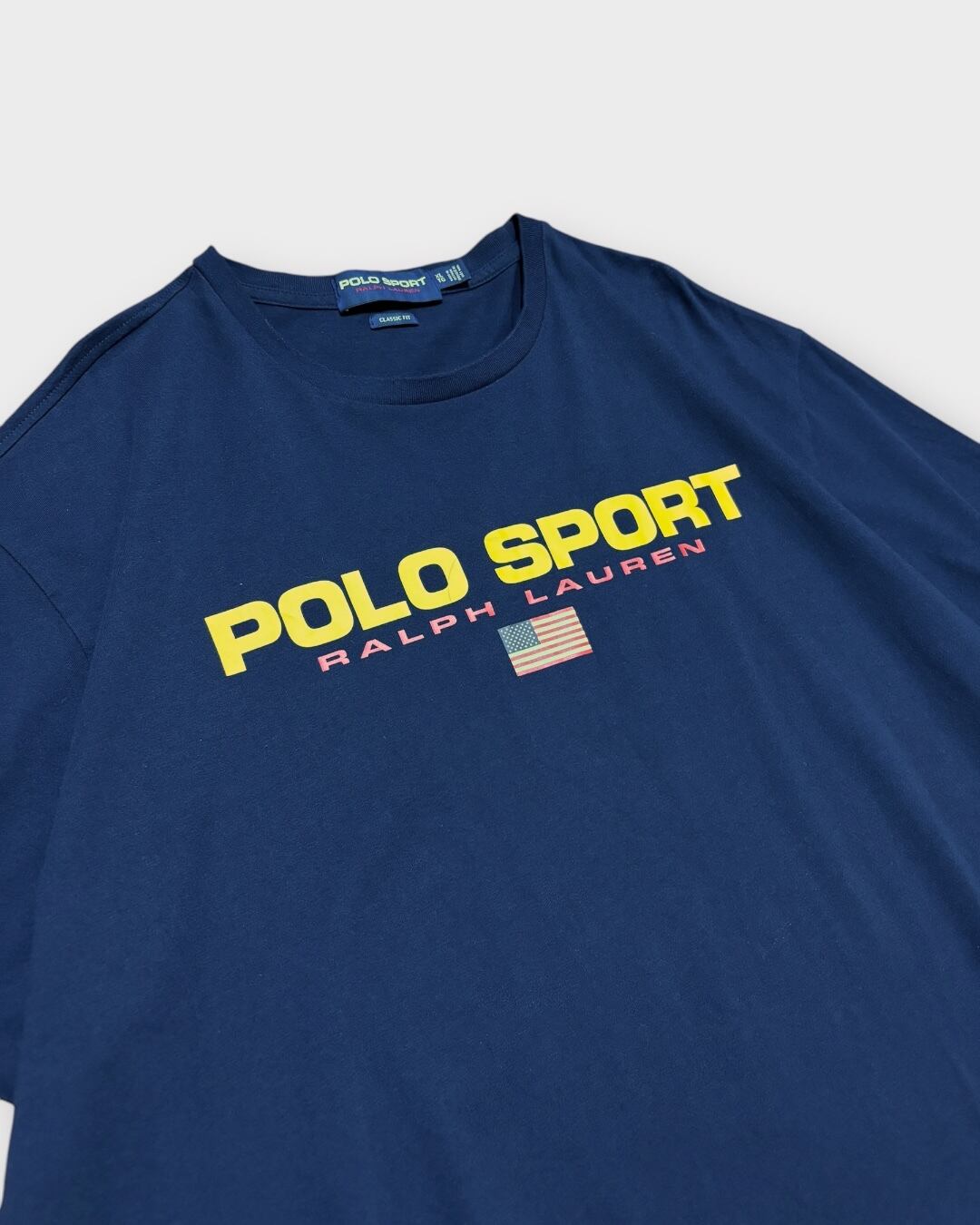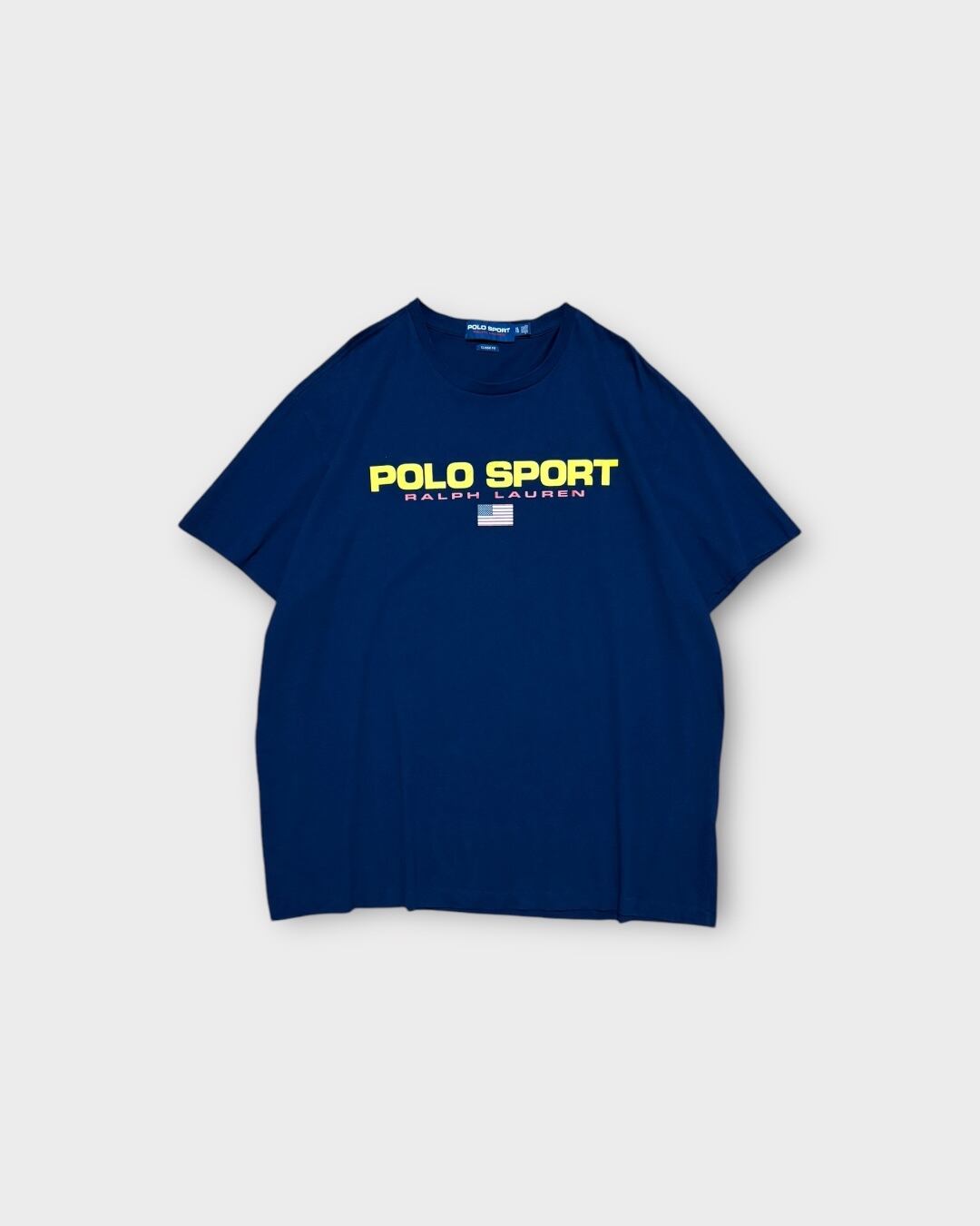 ネイビーボディに、イエローの”POLO SPORT”ロゴと星条旗、レッドの”RALPH LAUREN”ロゴが映える上品な一枚。