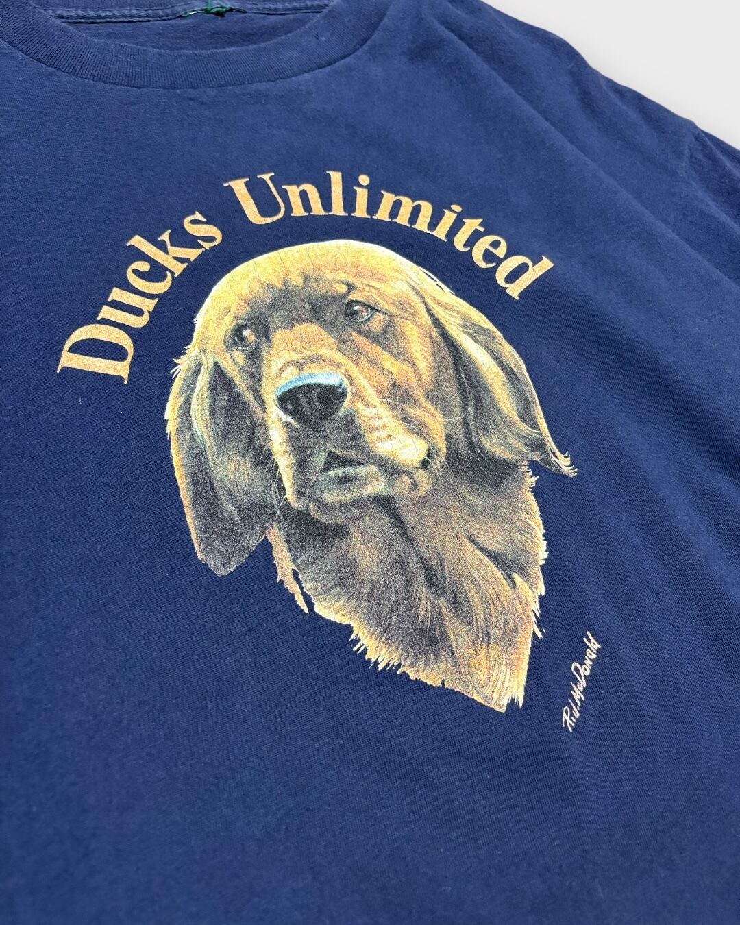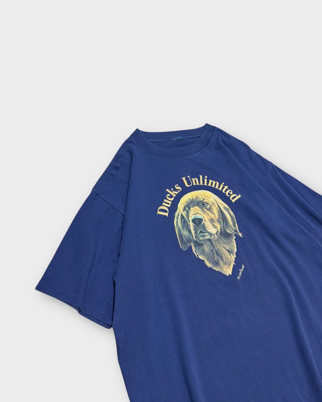 自然保護団体としても知られる「Ducks Unlimited」から、犬のリアルなグラフィックが映える90年代Tシャツ。