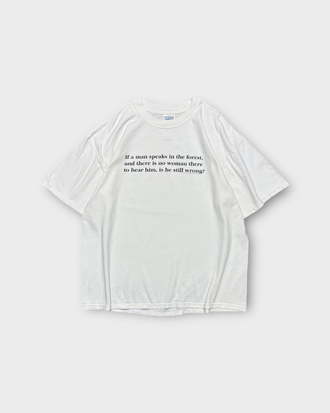 少し皮肉で、ちょっと笑える──90年代らしいウィットに富んだメッセージが胸にプリントされた一枚です。