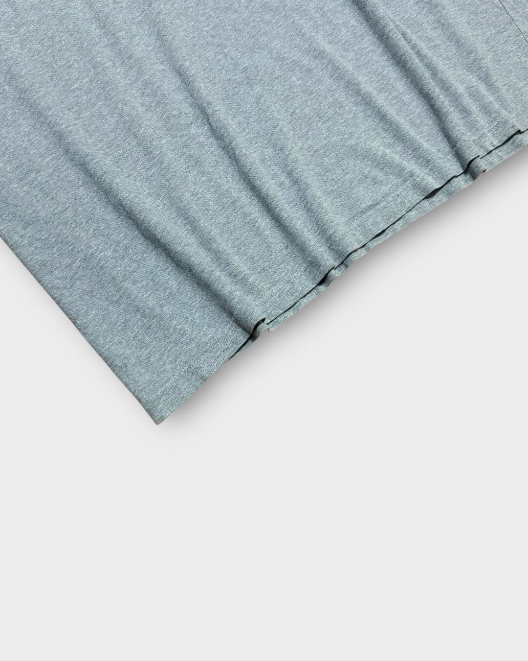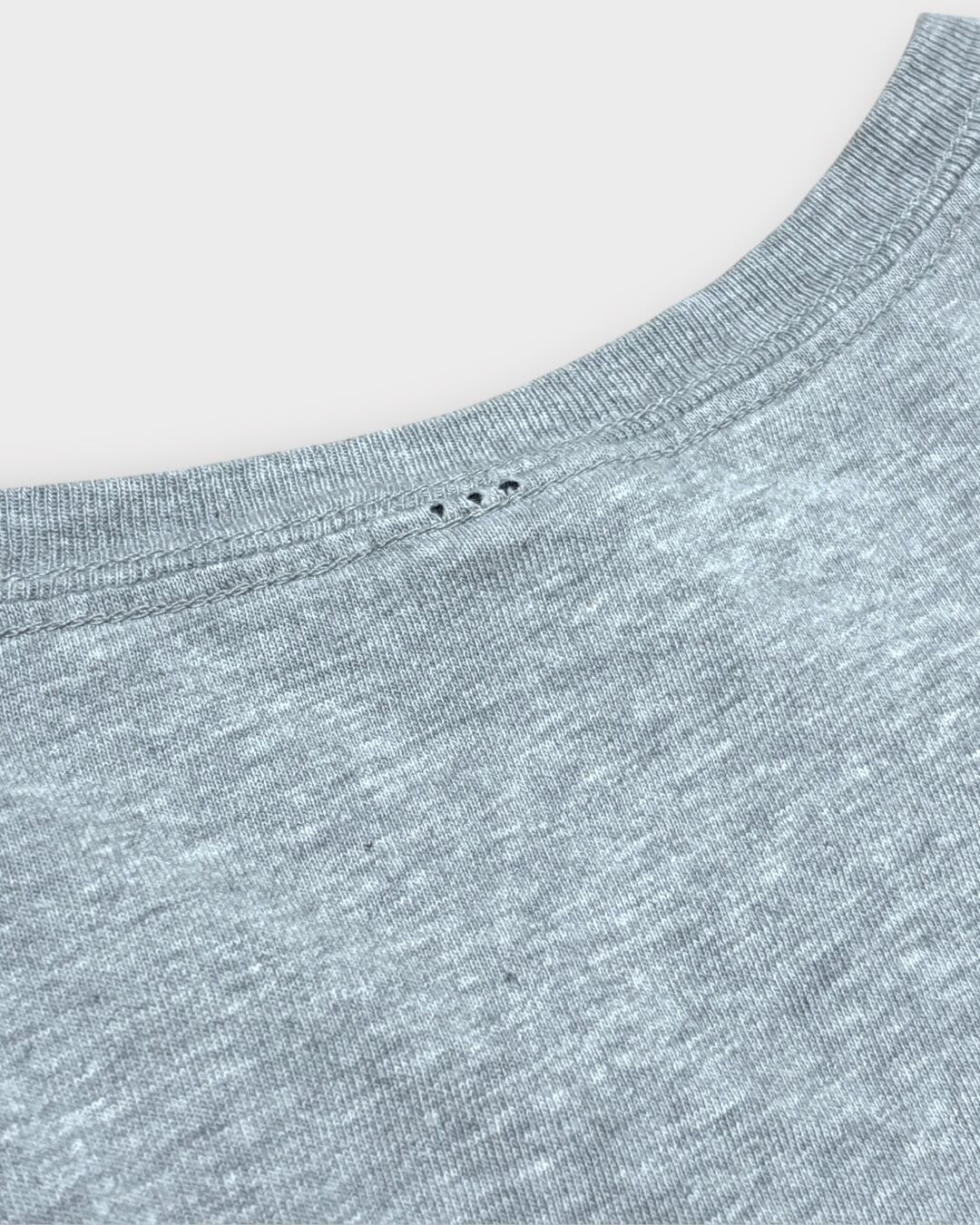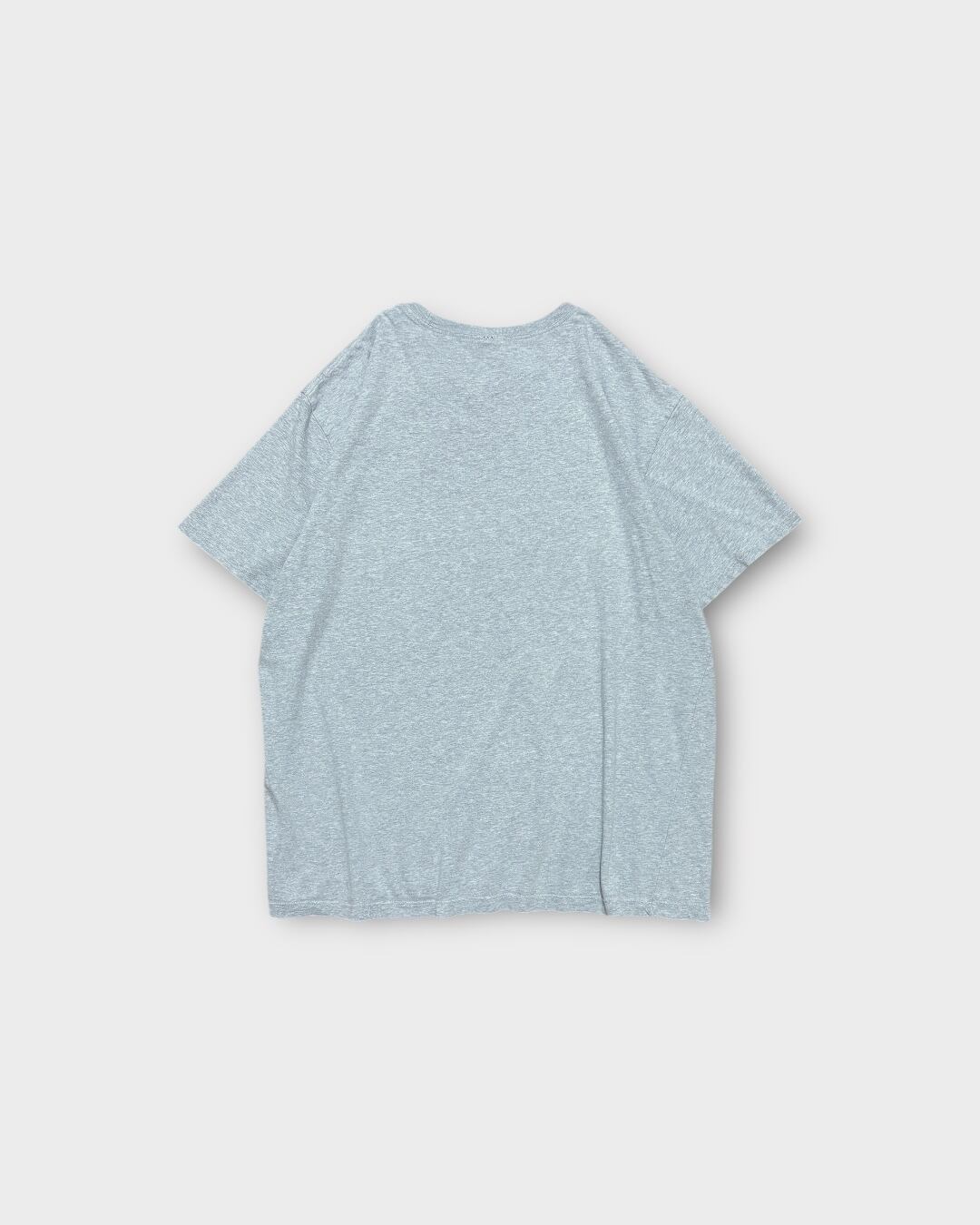 グレー杢の柔らかなコットンボディに、ネイビーのブロック体ロゴが映える、無駄のないベーシックなデザインです。