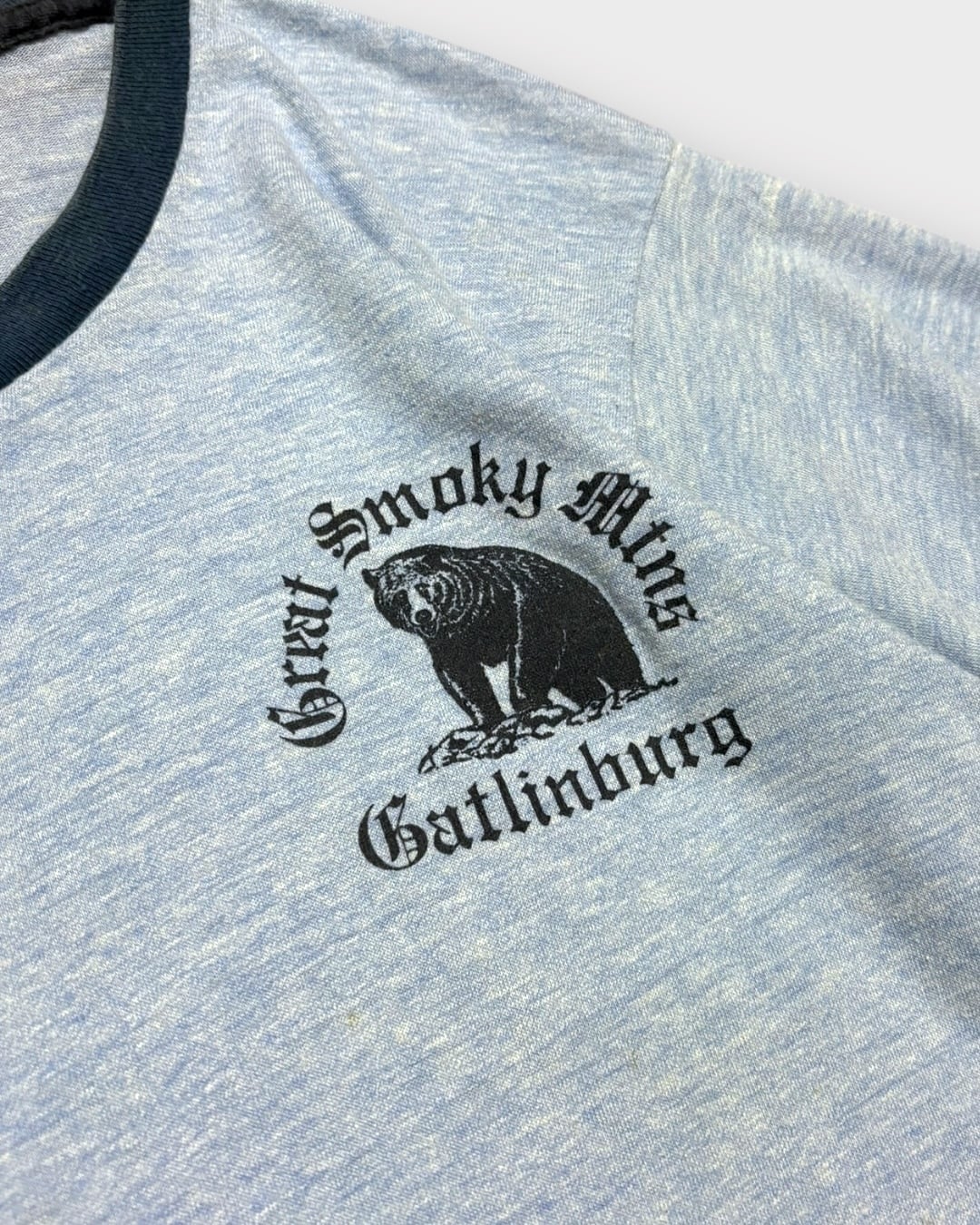 1970〜80年代の”DIAMOND”ボディを使用した、Great Smoky Mountains GatlinburgプリントのヴィンテージリンガーTシャツ。