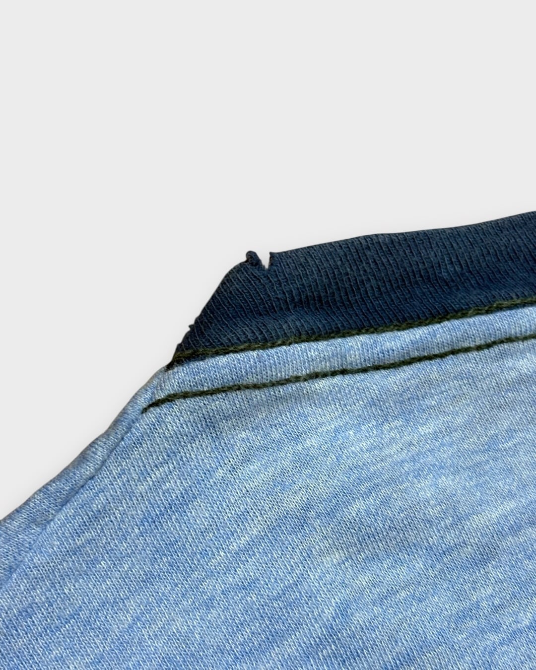 トリプルブレンドの柔らかな生地感は、当時ならではの軽い着心地が魅力。やや短めの着丈とコンパクトな身幅で、タックインしてもバランスがとりやすく、ユニセックスにおすすめです。