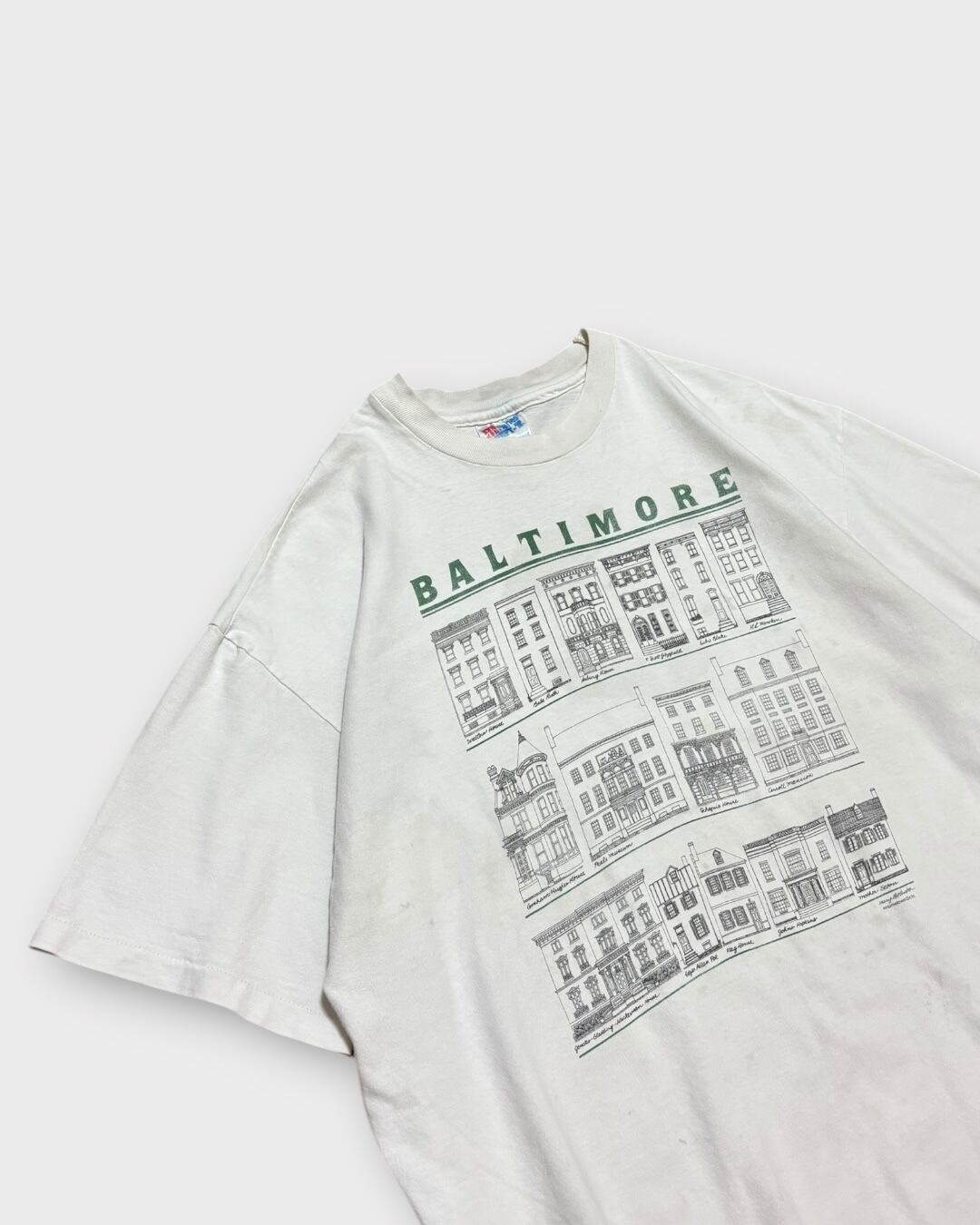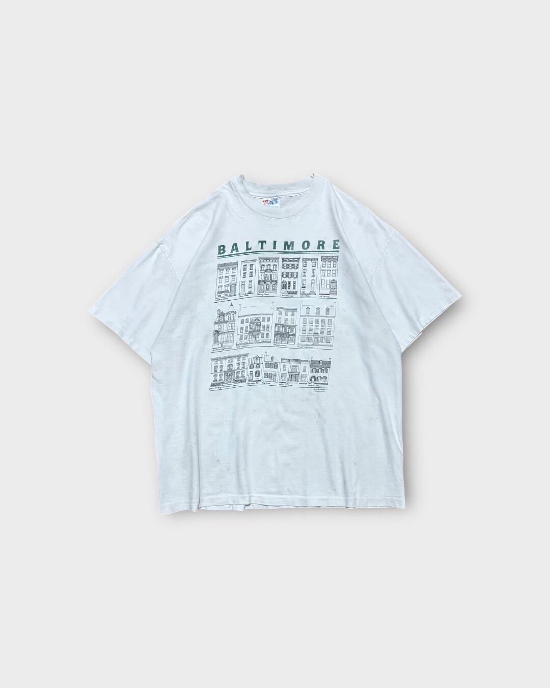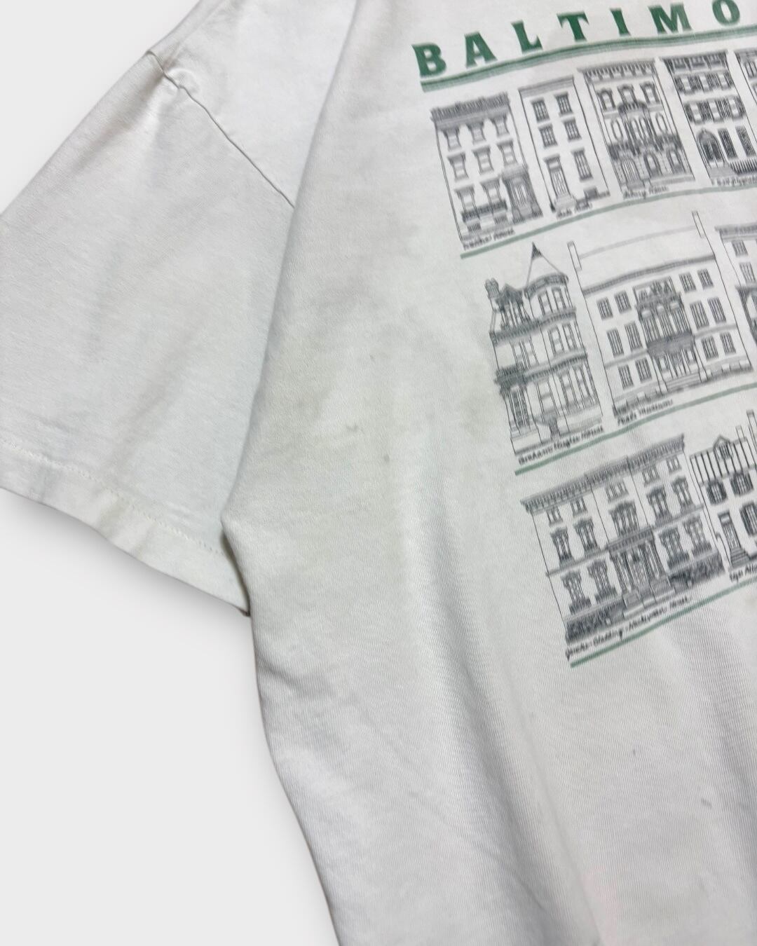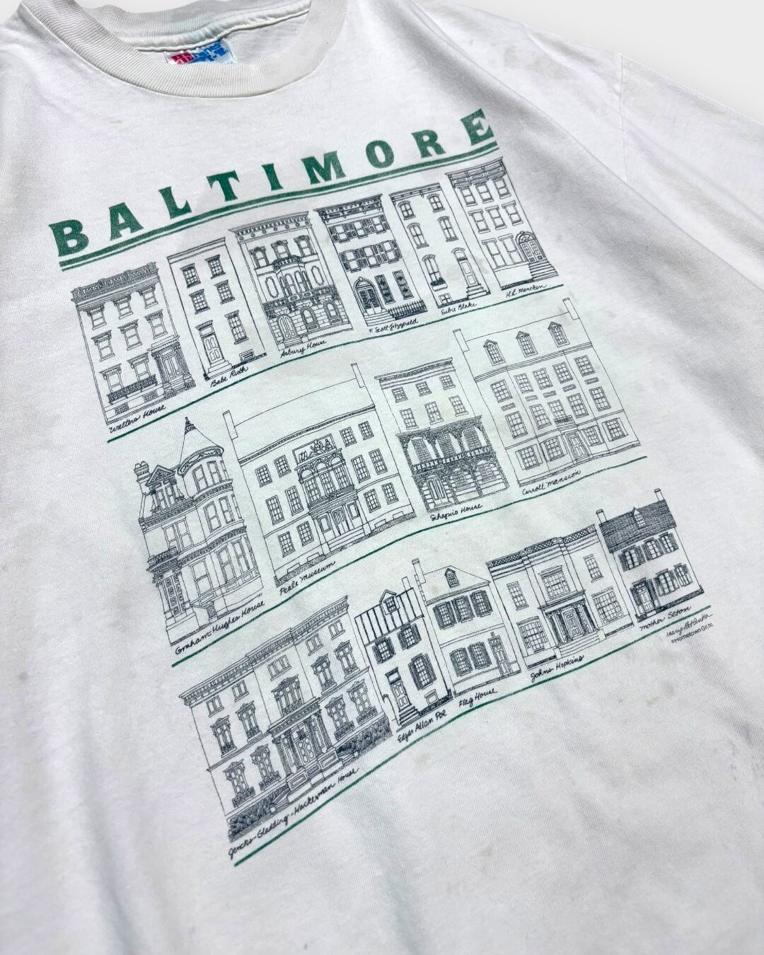【VINTAGE】1990’s “Hanes” Baltimore Architecture Print T-Shirt Made in USA