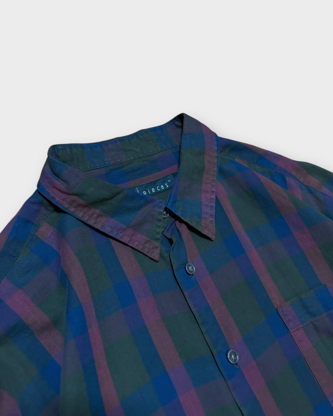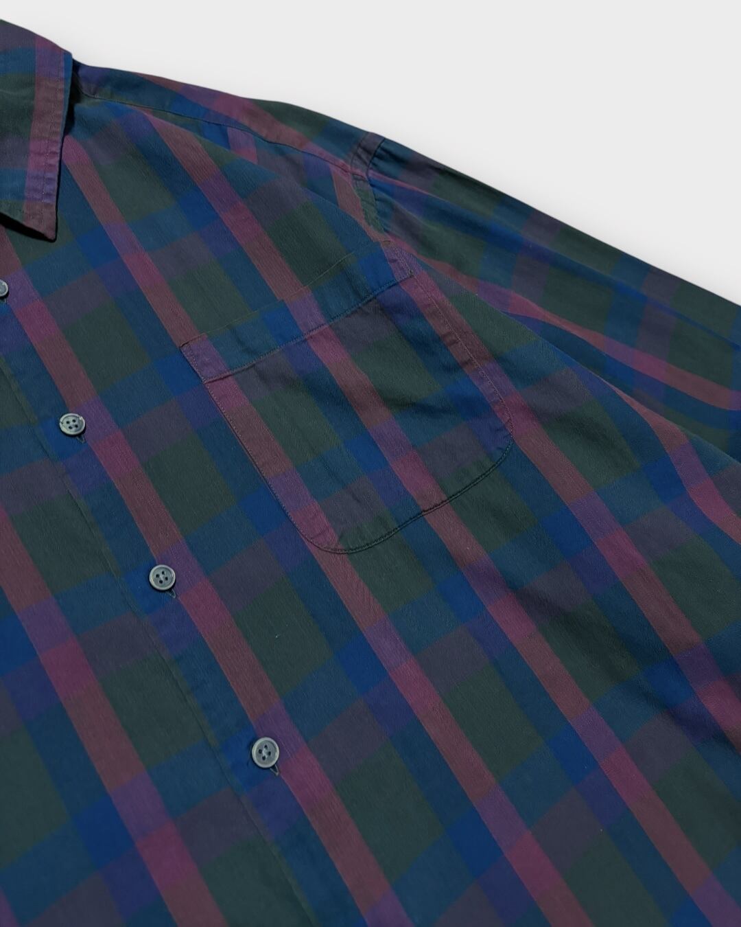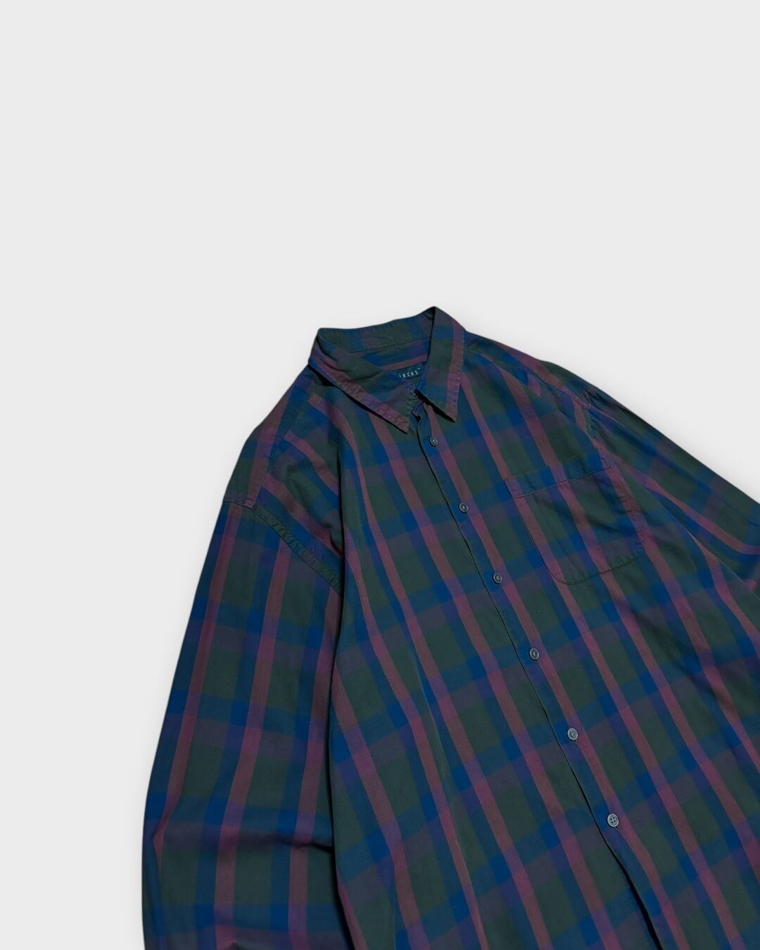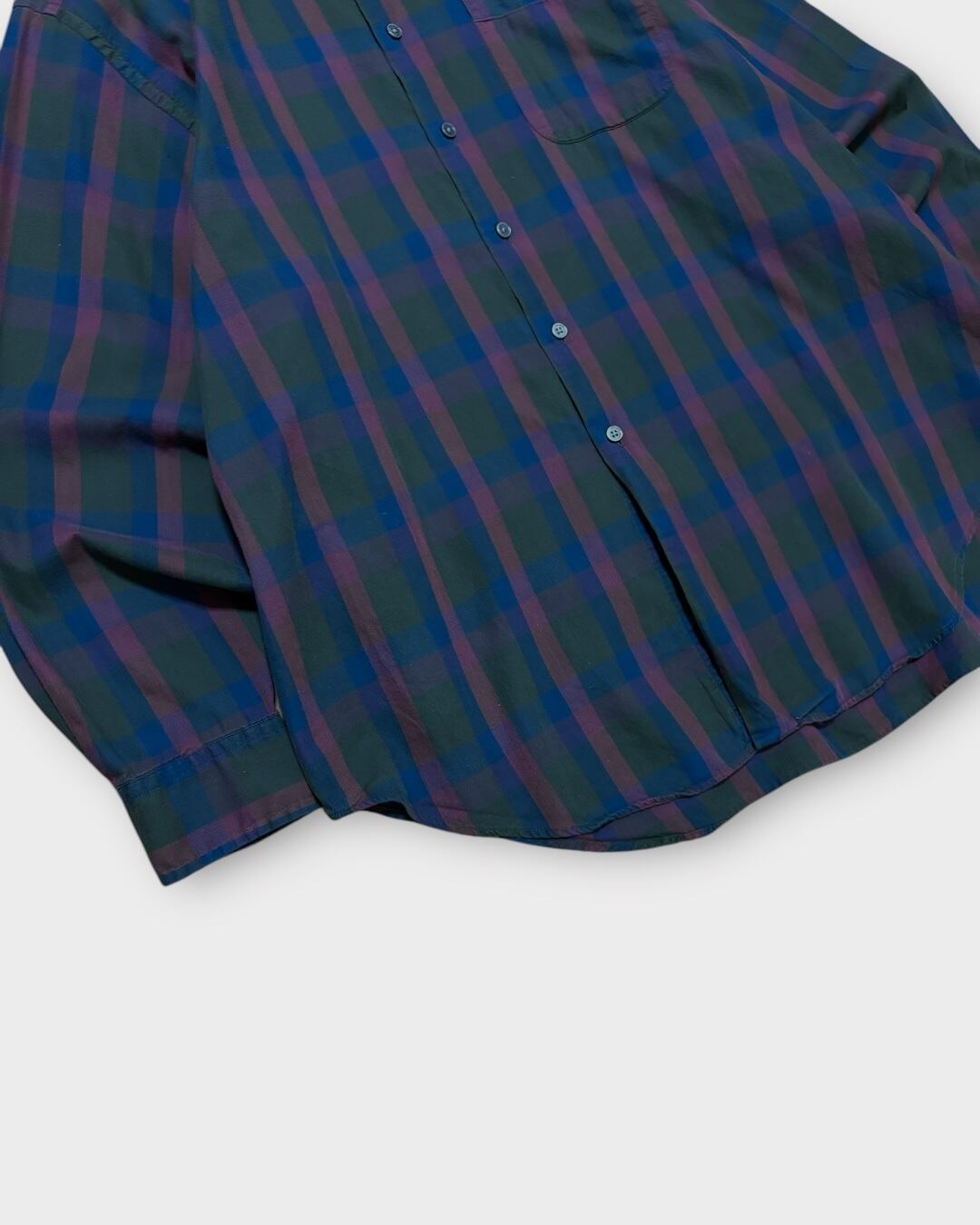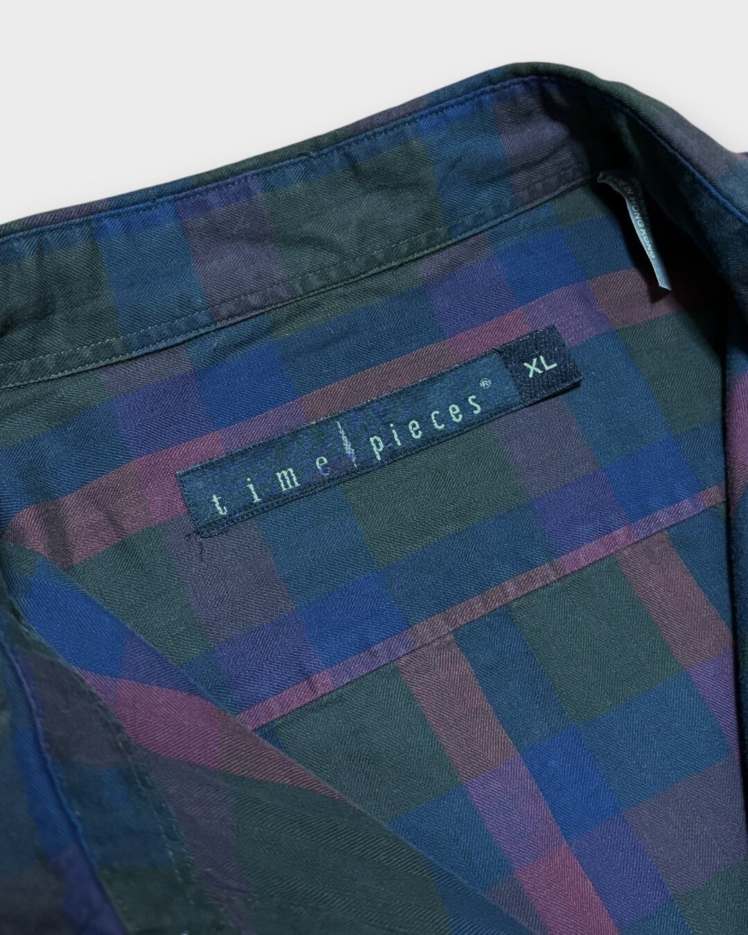 深みのあるグリーン×レッド×ネイビーのチェックが印象的な、time piecesの長袖シャツ。