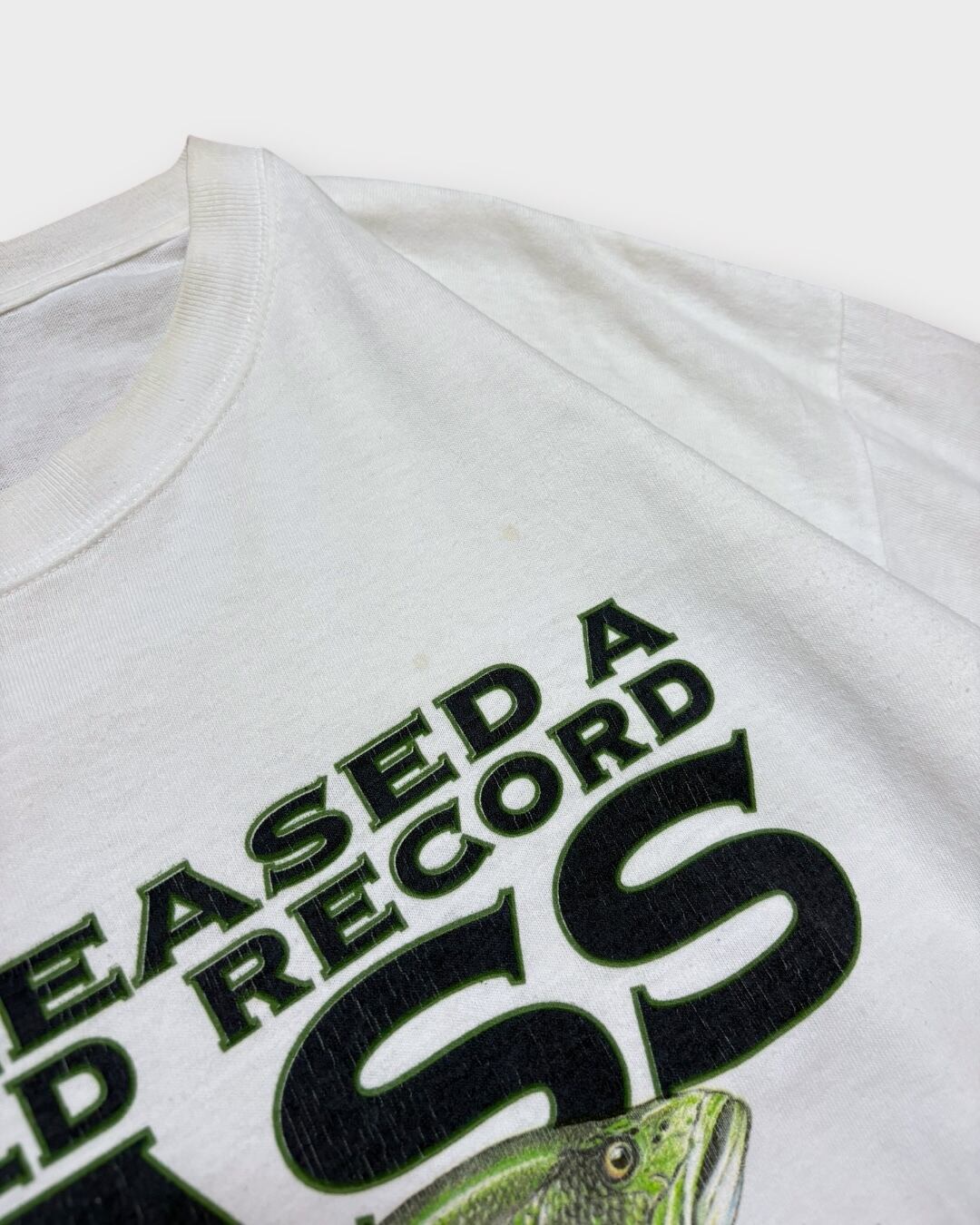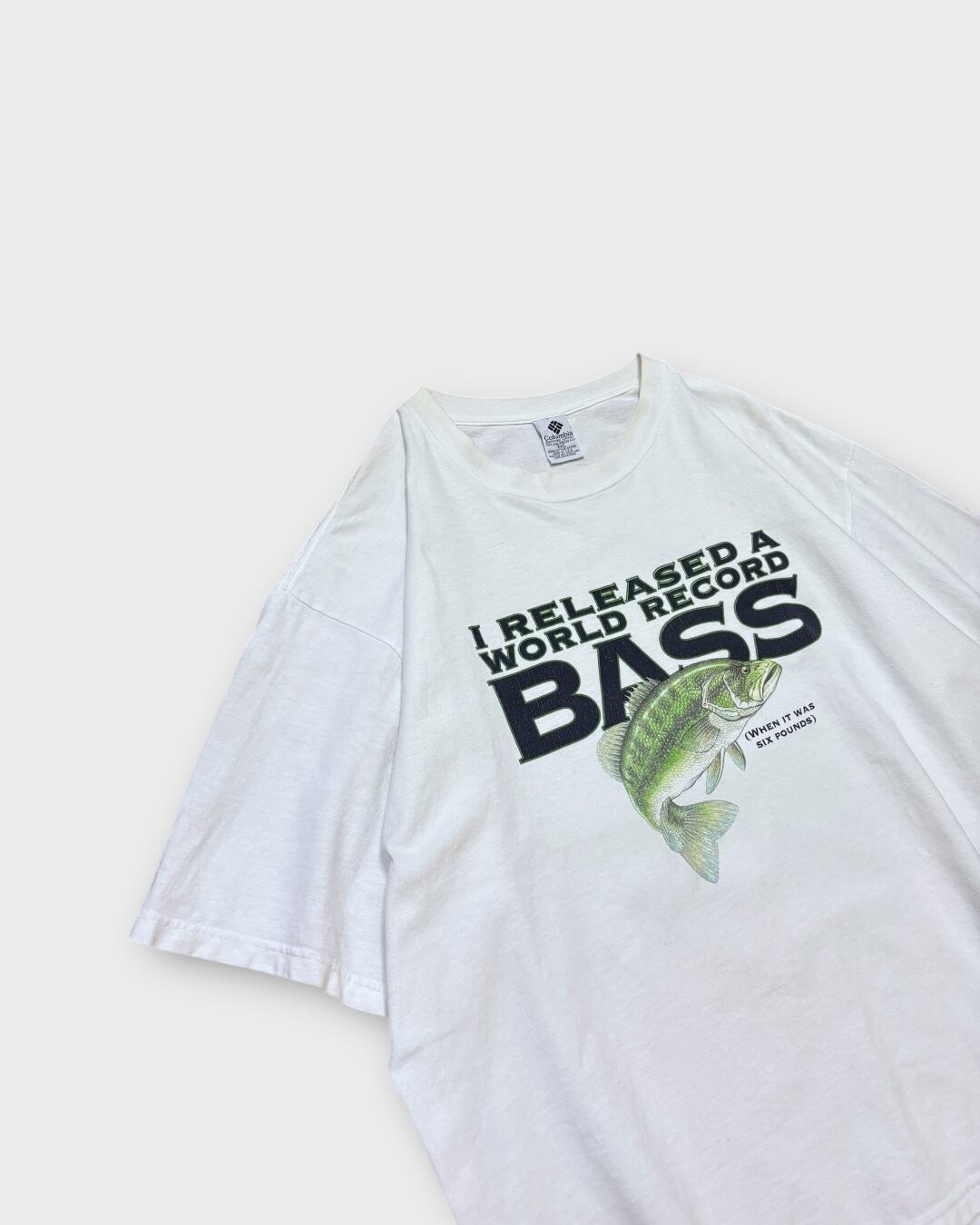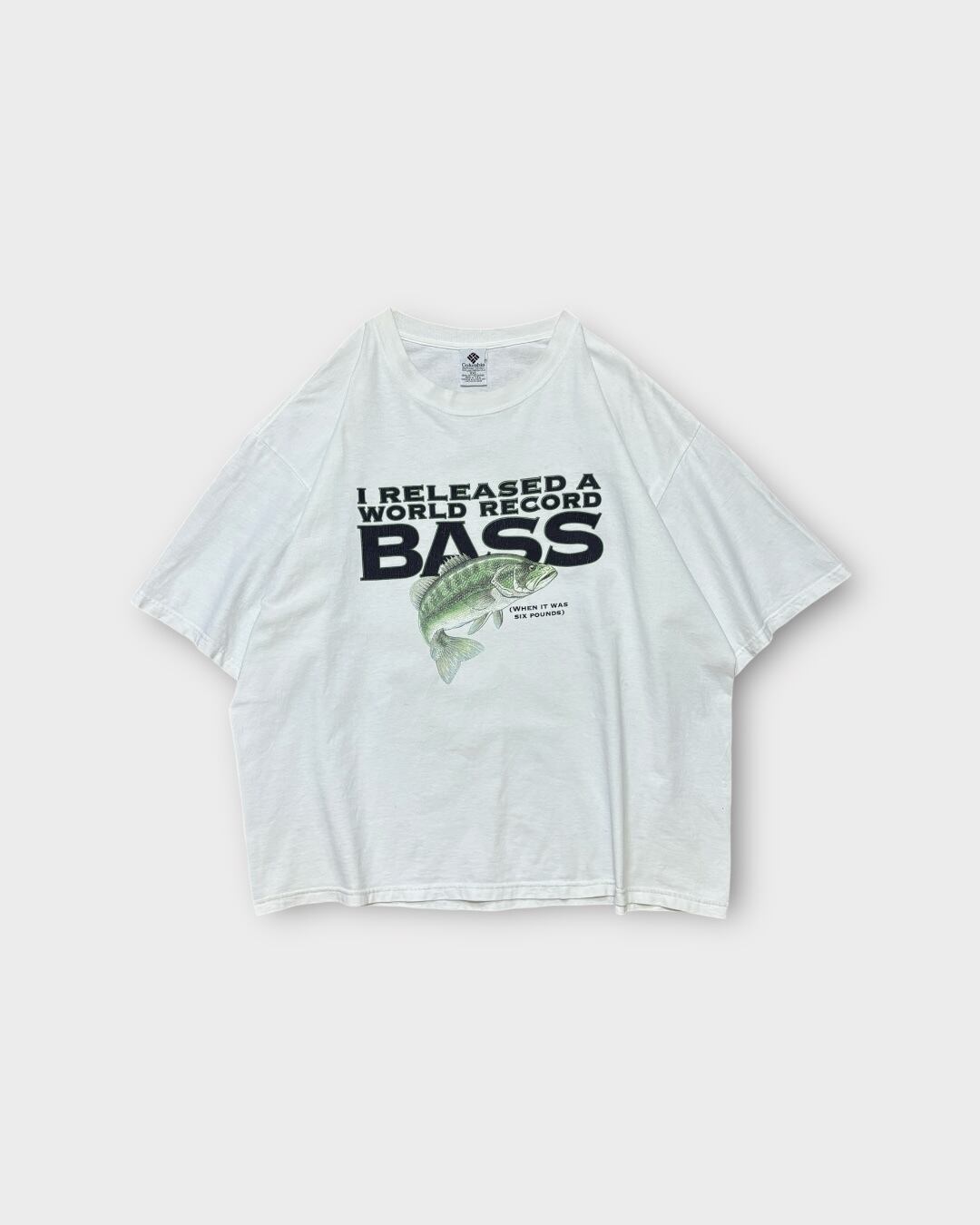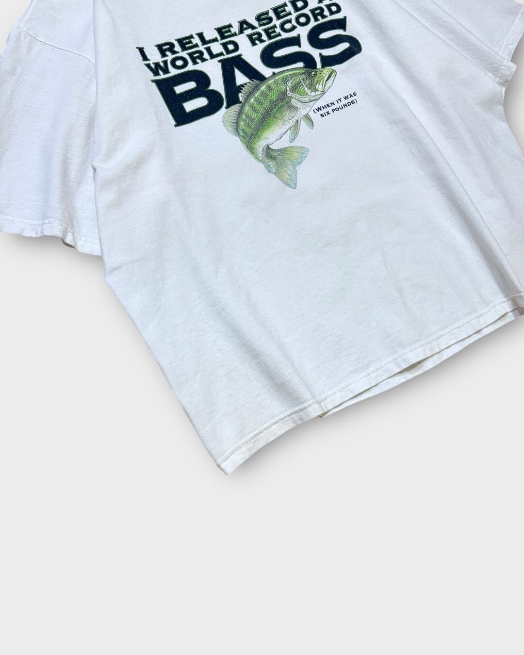 “I RELEASED A WORLD RECORD BASS(WHEN IT WAS SIX POUNDS)”というユーモラスなコピーと、リアルタッチで描かれたバスのイラストが印象的な一枚です。