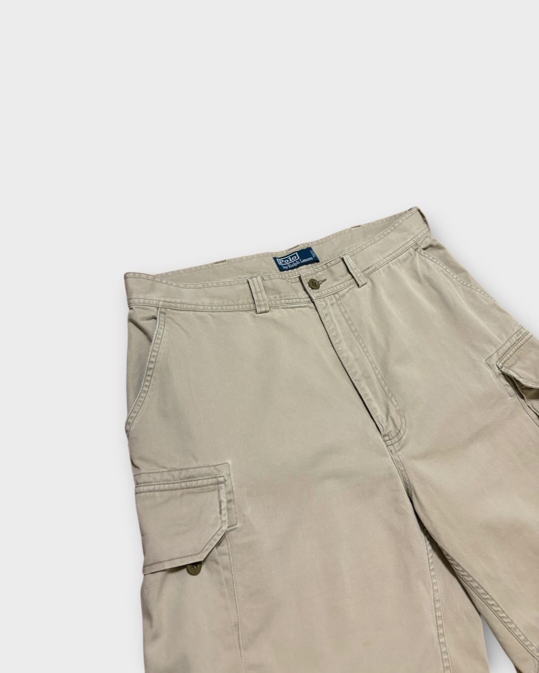 ベージュのツイル地にカーゴポケットが映える、Polo by Ralph Laurenのカーゴショーツ。