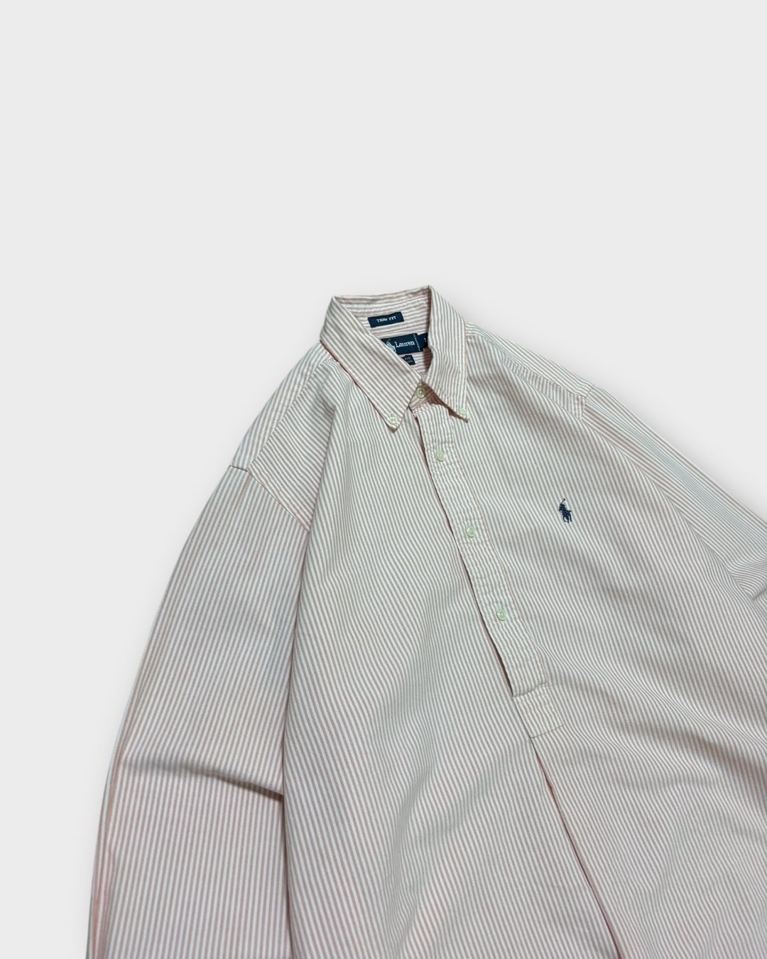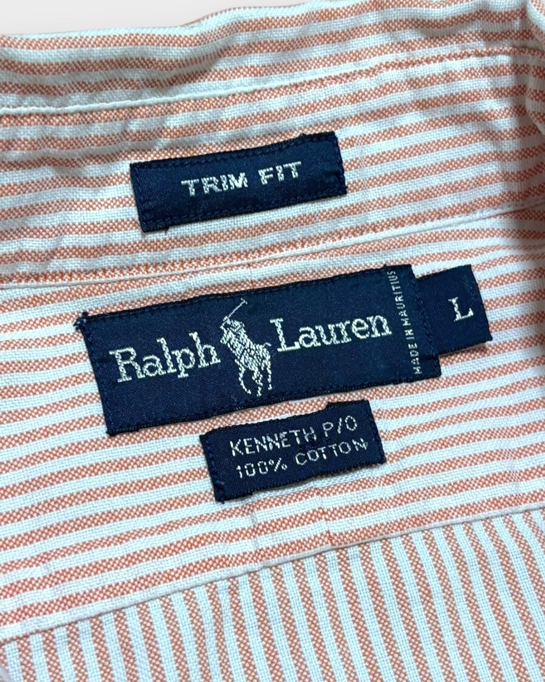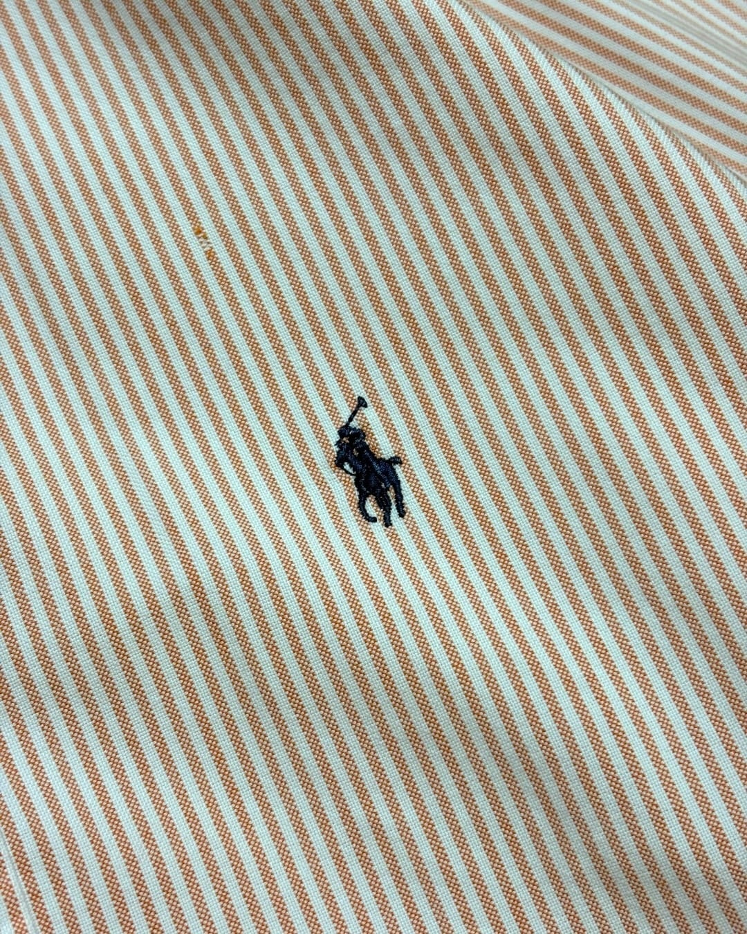 爽やかなオレンジとホワイトのストライプが目を引く、Ralph Laurenのプルオーバーシャツ。