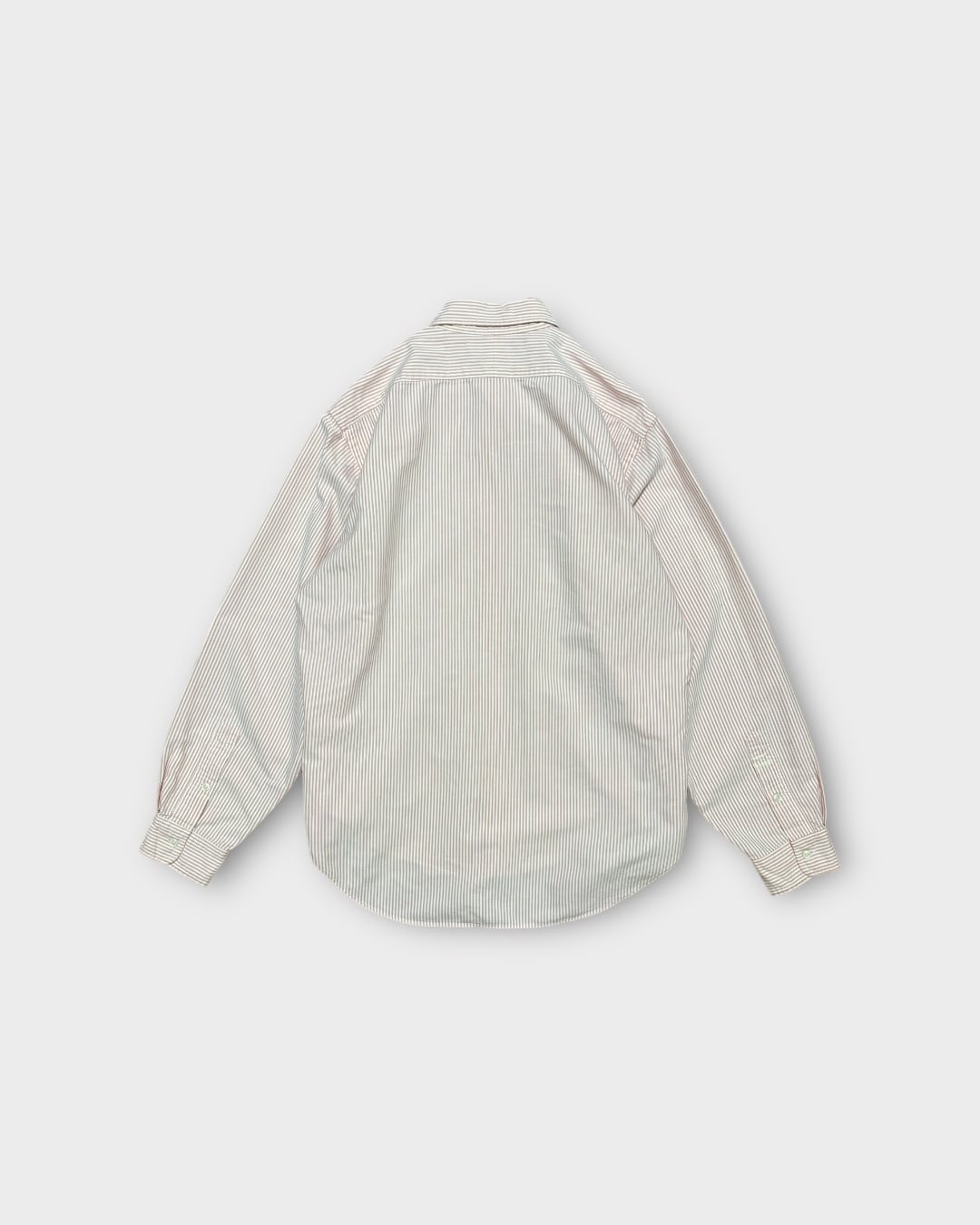 このアイテムの最大の特徴は「プルオーバー型」の仕様で、通常のボタンダウンとは異なるクラシックなスタイル。