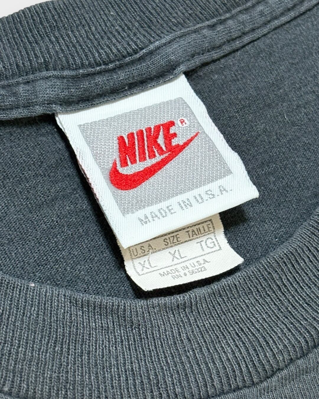 1990年代製、銀タグ付きのNIKEスウッシュTシャツ。MADE IN USAの希少な一枚です。