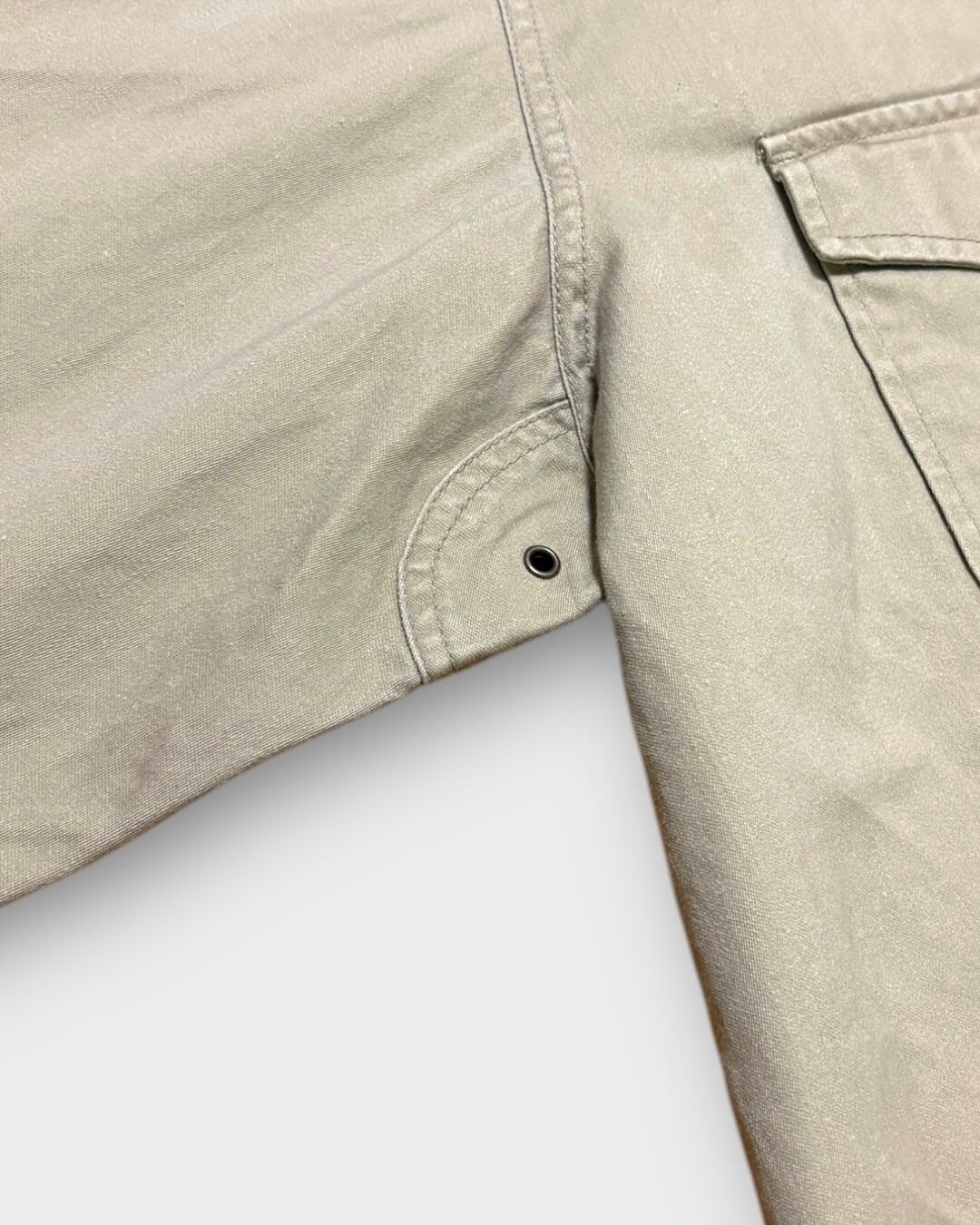 両胸のフラップポケット、肩のエポレット、脇下のベンチレーションホールなど、