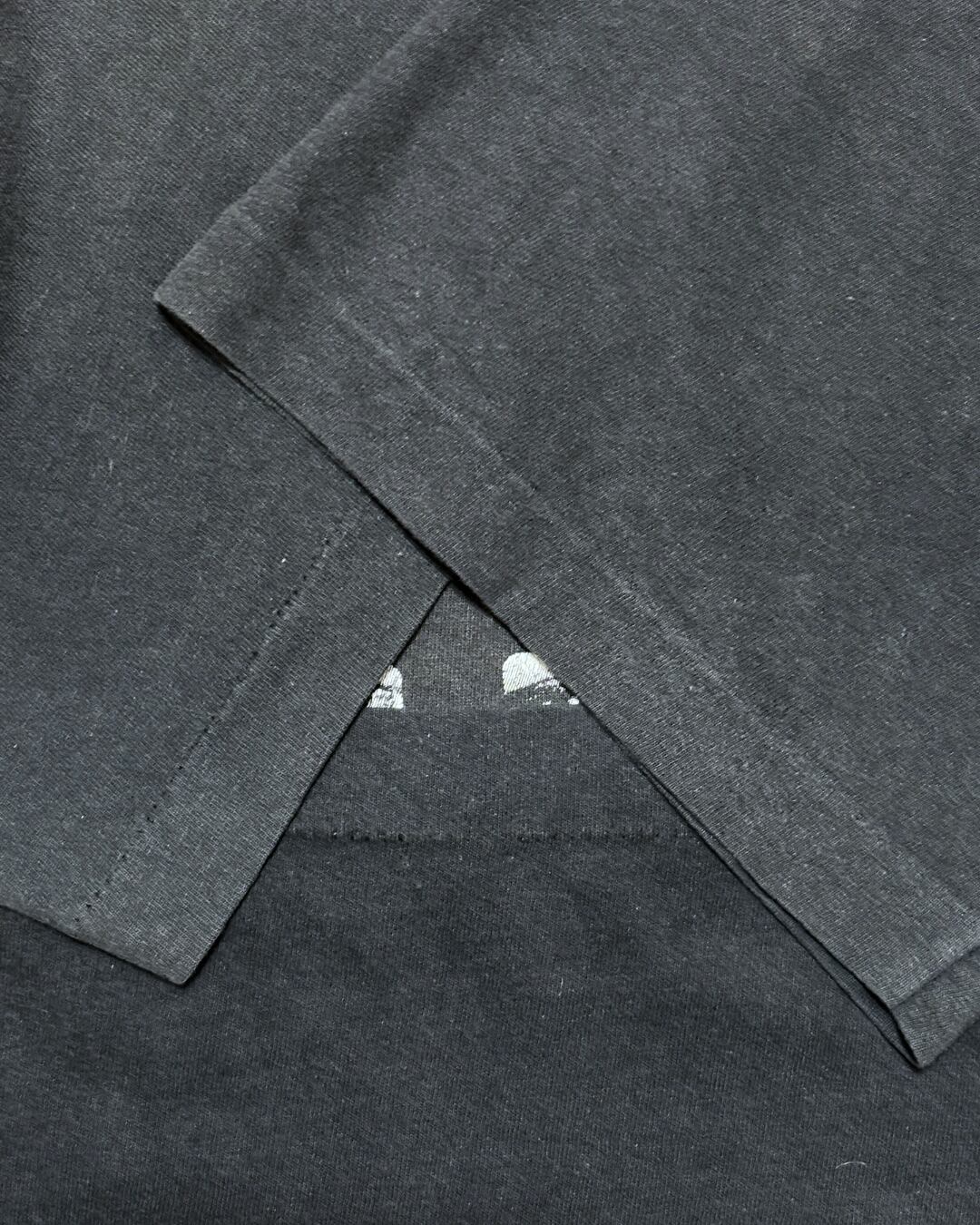ボディは黒のシングルステッチ仕様で、しっかり着込まれたフェード感が魅力。短めの着丈でコンパクトなシルエットを楽しめます。