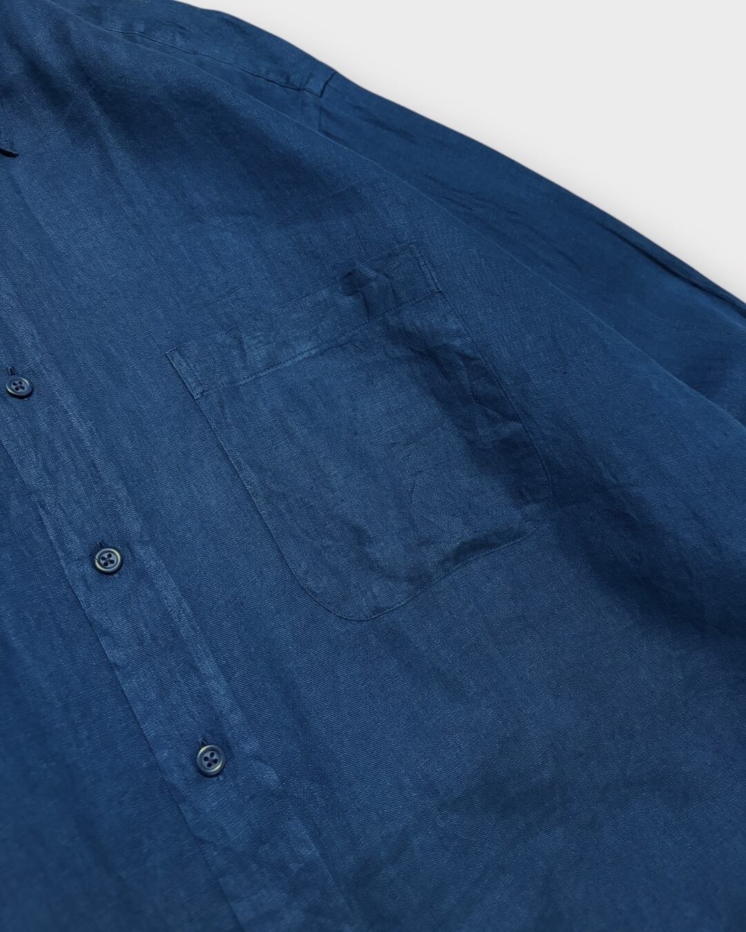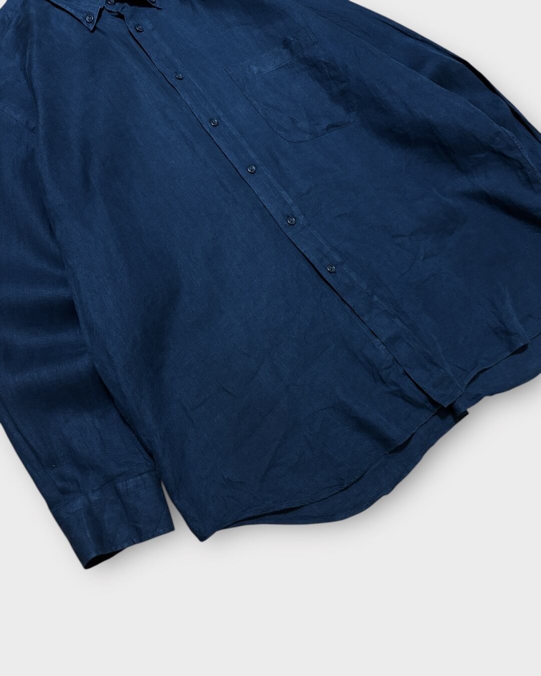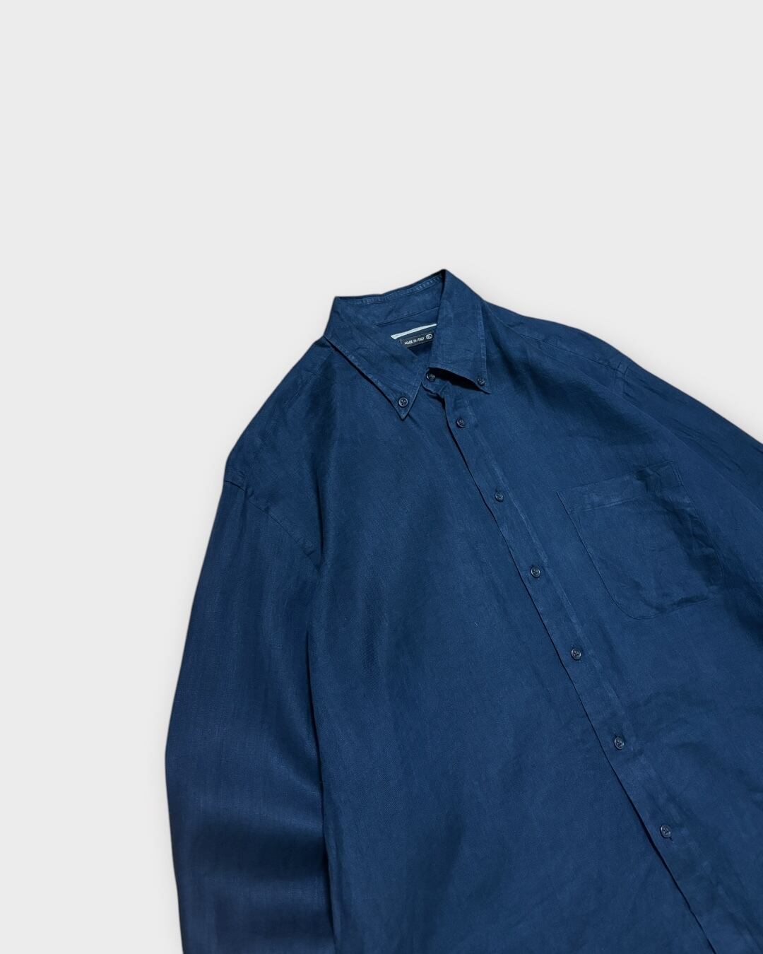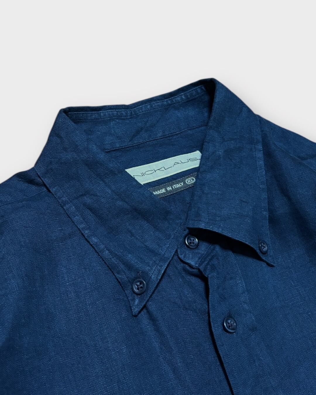 深みのあるネイビーカラーが上品な、NICKLAUSのリネンボタンダウンシャツ。