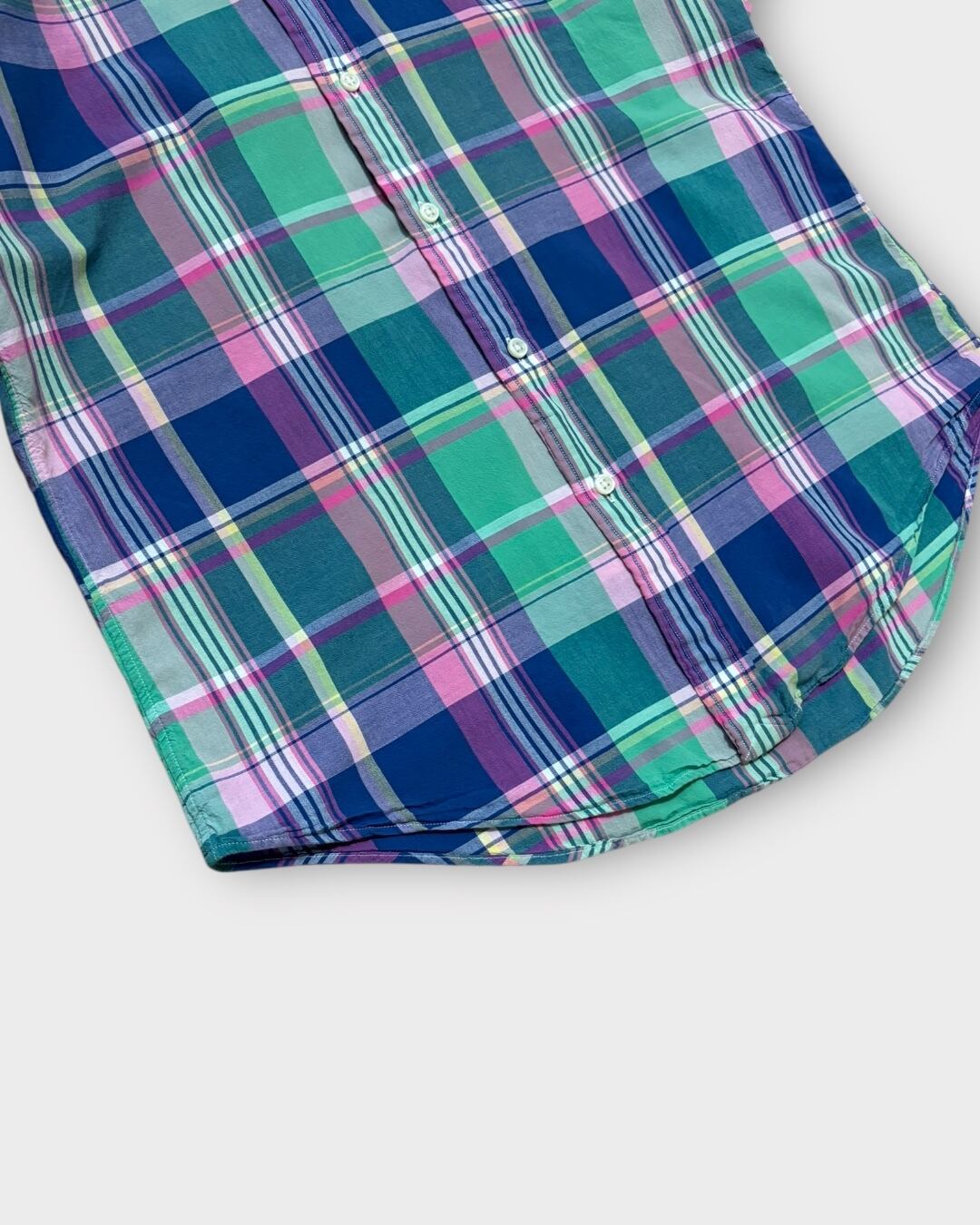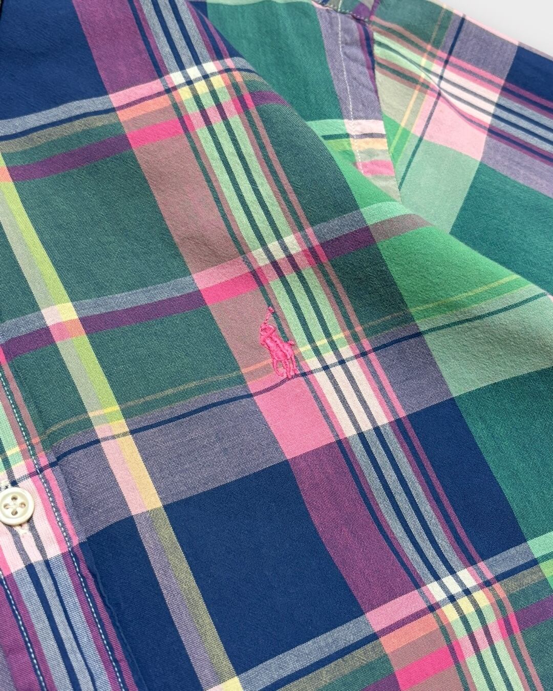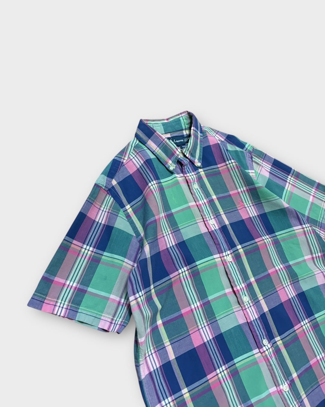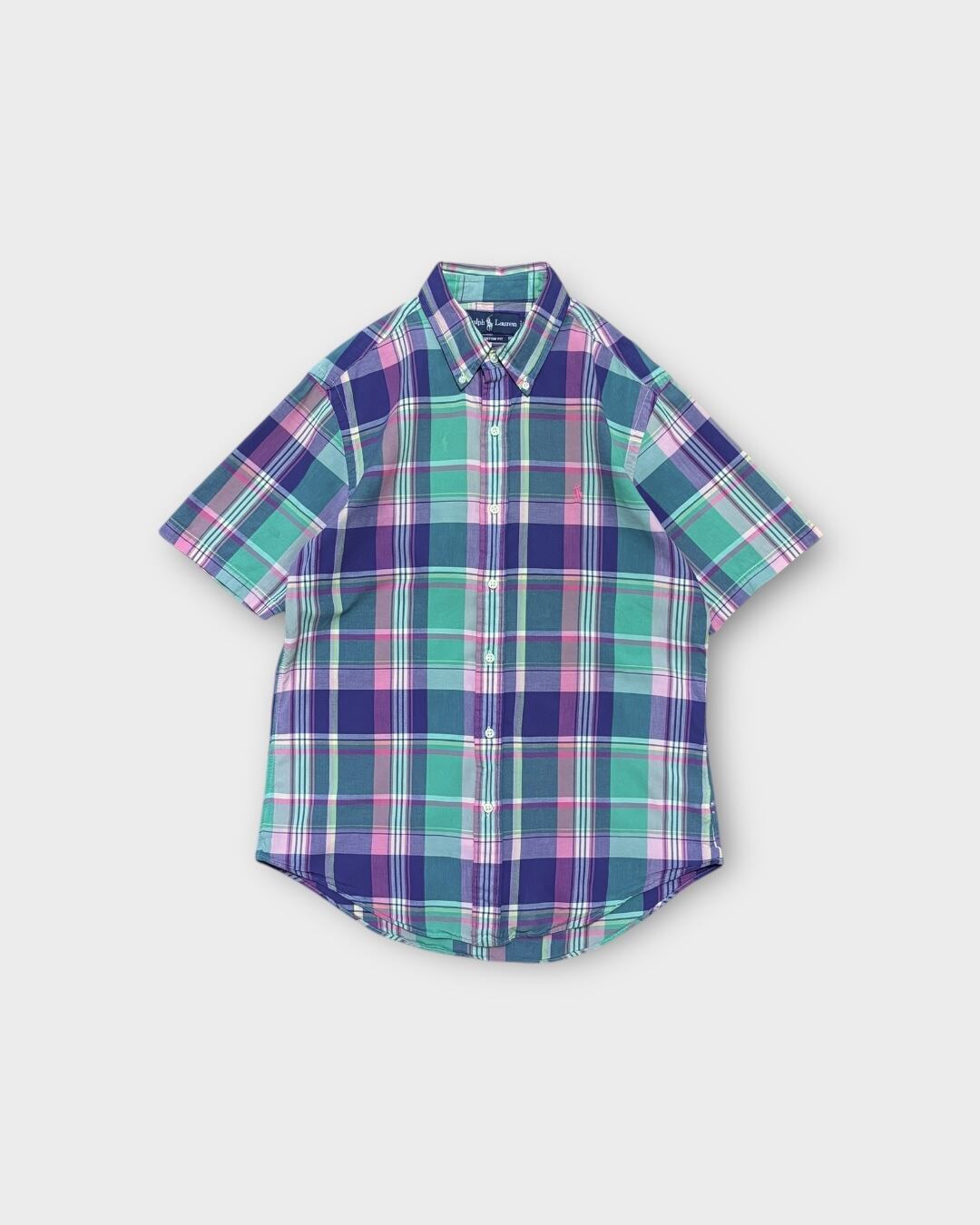 Ralph Laurenらしいマドラスチェックが目を惹く半袖ボタンダウンシャツ。