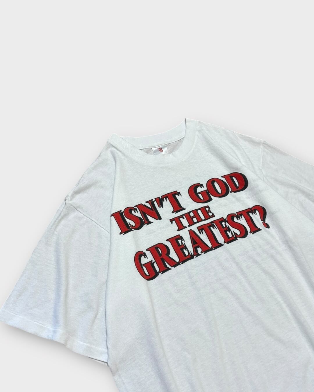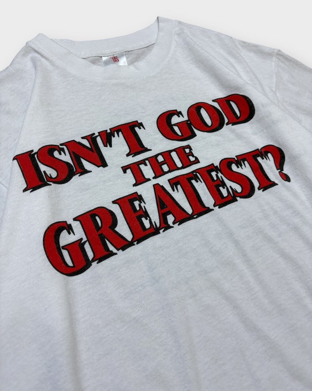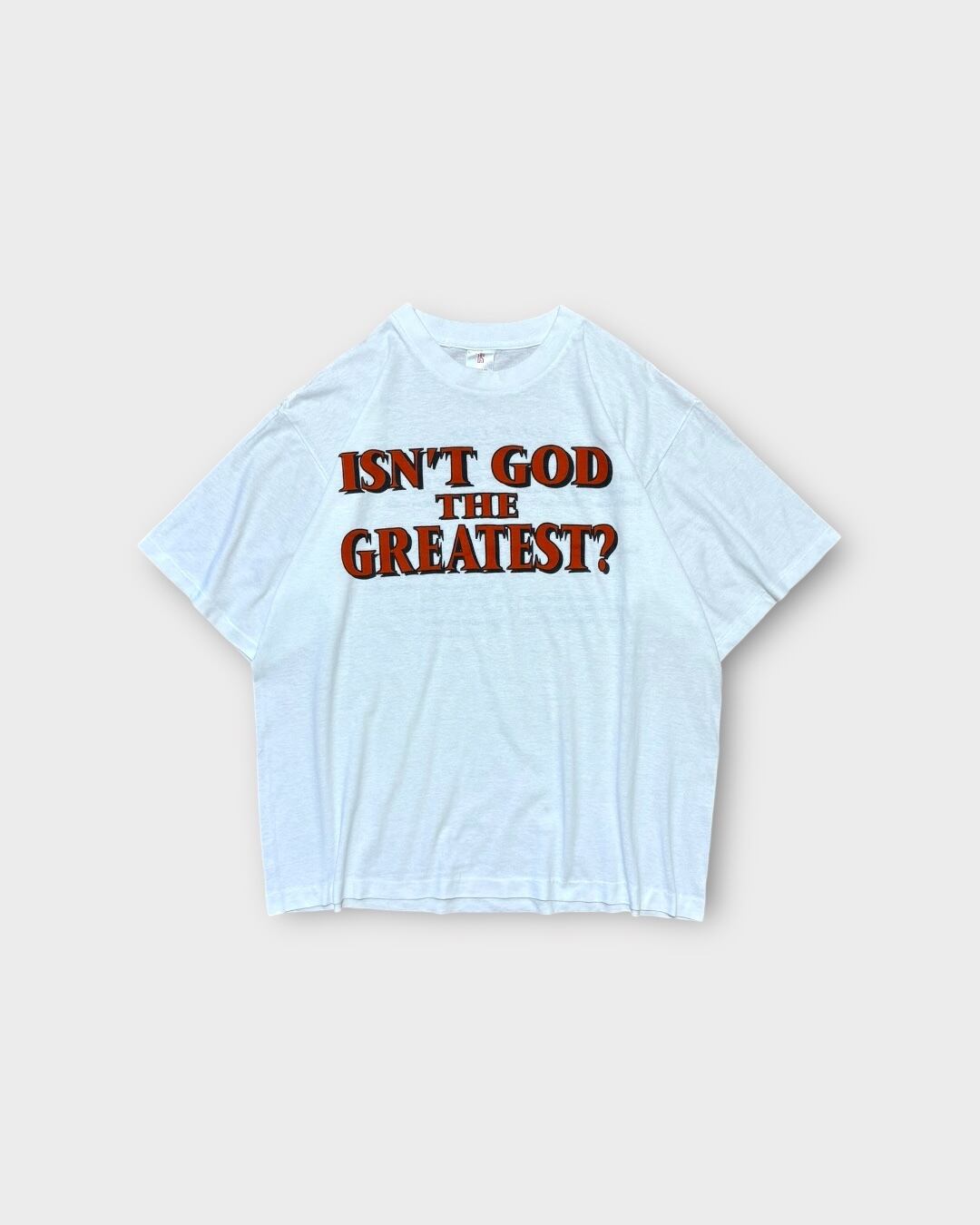 【VINTAGE】1990’s “TS” Graphic T-Shirt “ISN’T GOD THE GREATEST?”