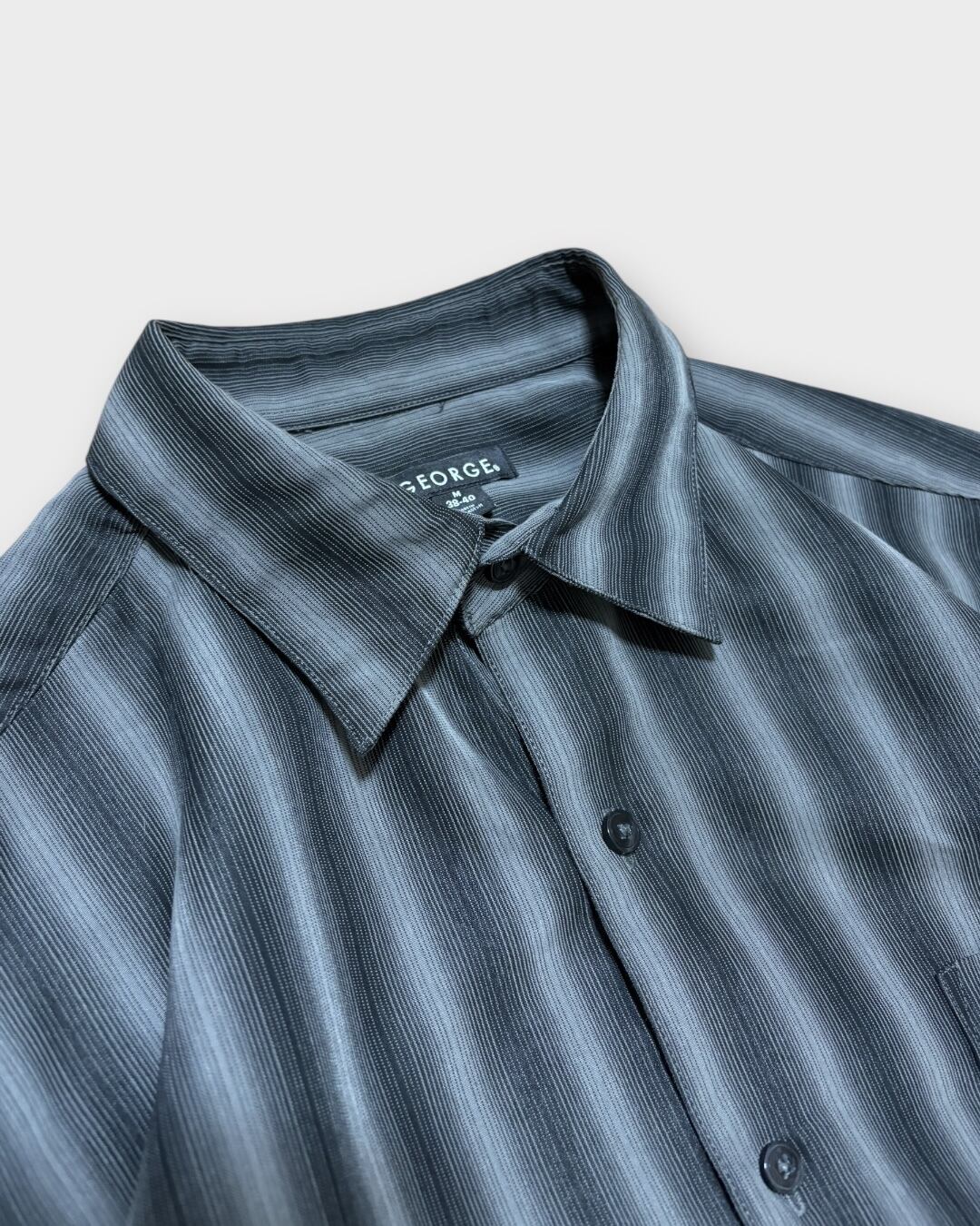 【Used】“GEORGE” Stripe Pattern Polyester Shirt