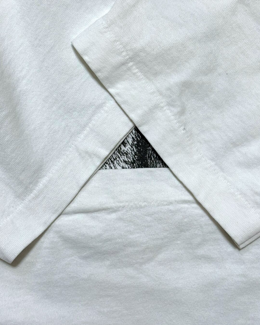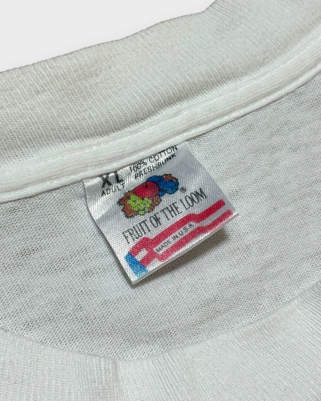 ボディはMade in USAのFRUIT OF THE LOOM、やや厚手のしっかりした生地感で、袖と裾ともにシングルステッチ仕様。90年代らしいクラシックなシルエットも魅力的です。