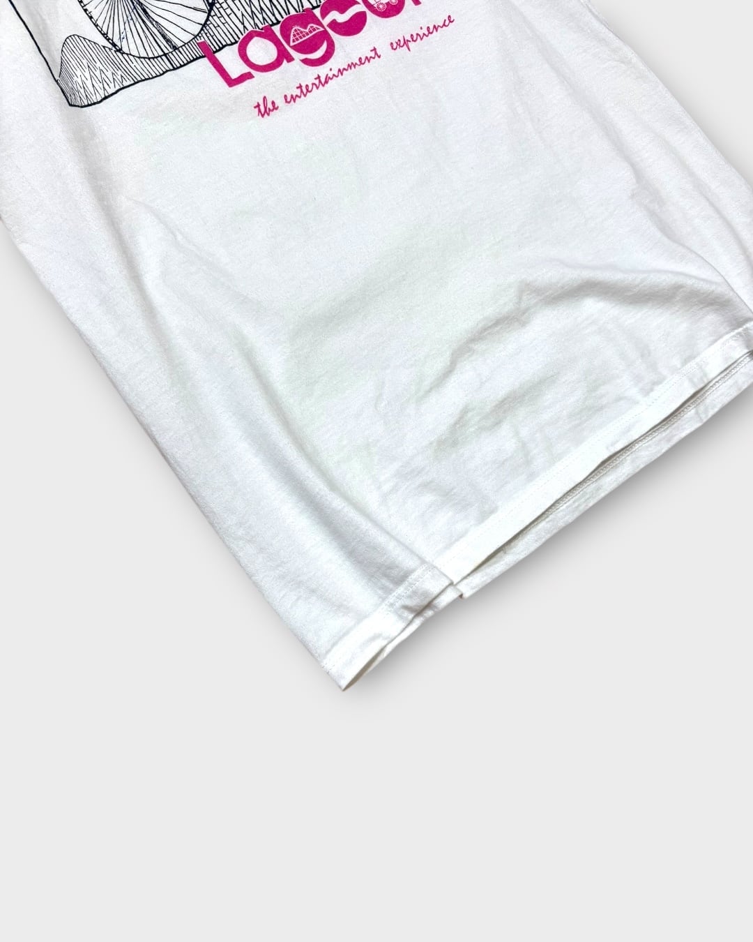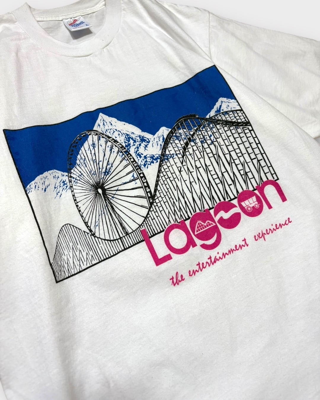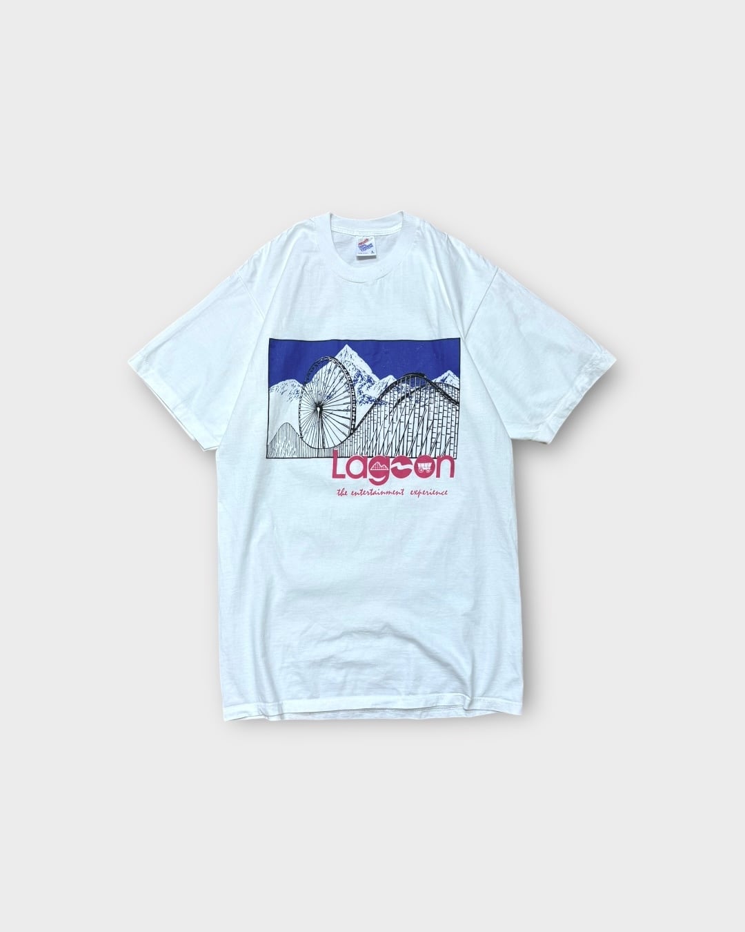ユタ州にある老舗アミューズメントパーク「Lagoon(ラグーン)」のローカルTシャツ。観覧車やジェットコースターが描かれたポップなグラフィックが、レトロなムードを醸す1枚です。