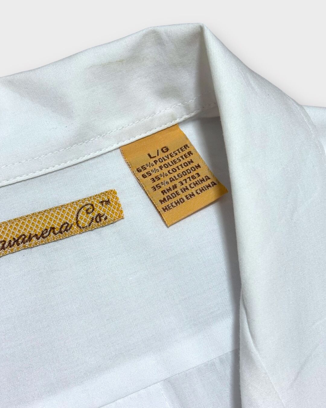 ブランドはThe Havanera Co.。ポリコットンの軽やかな生地で、さらっとした肌触りと丈夫さを兼ね備えています。背面にもピンタックのラインが入り、全体にバランスの取れたデザイン。