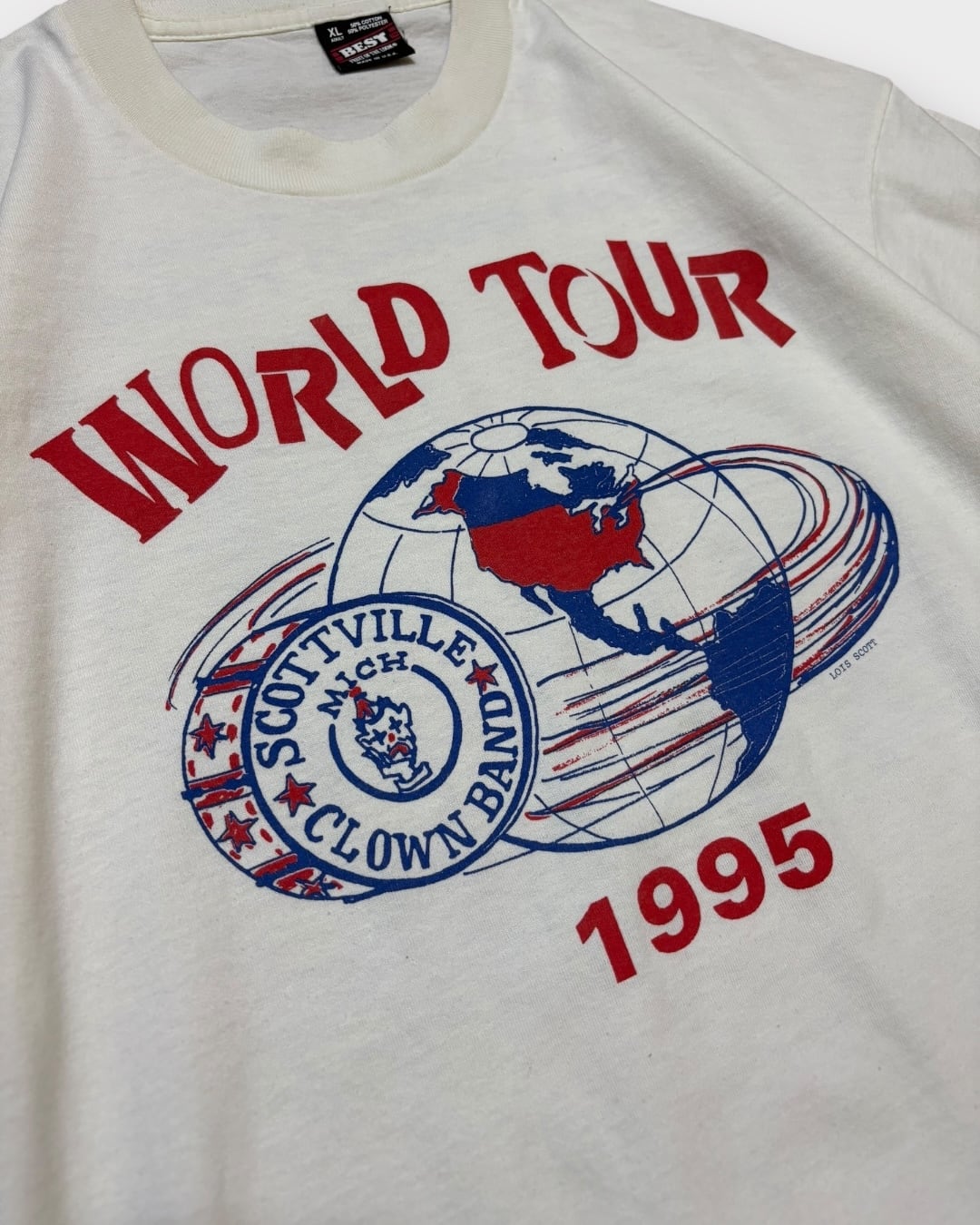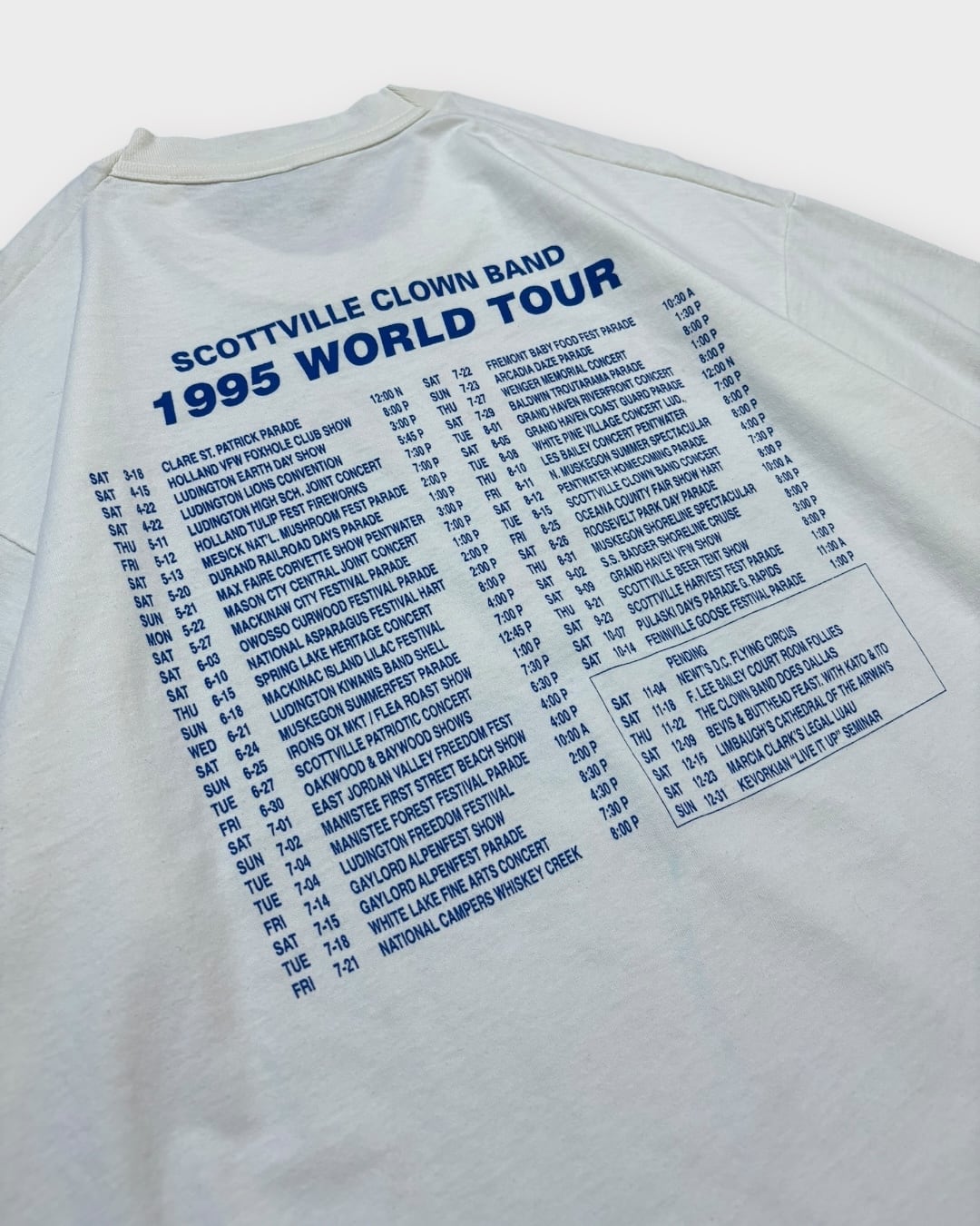 アメリカ・ミシガン州を拠点に活動する“SCOTTVILLE CLOWN BAND”による、1995年のワールドツアーTシャツ。