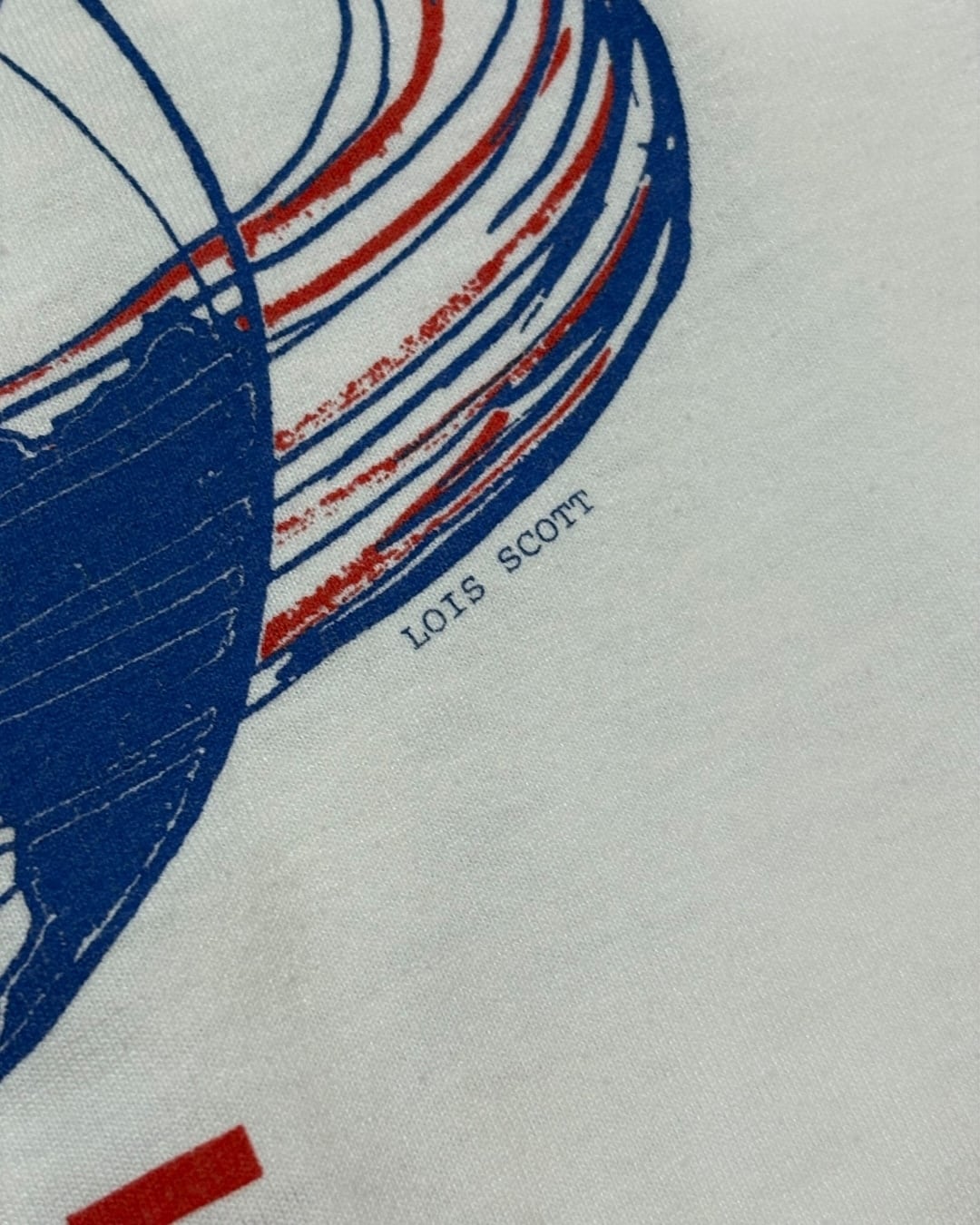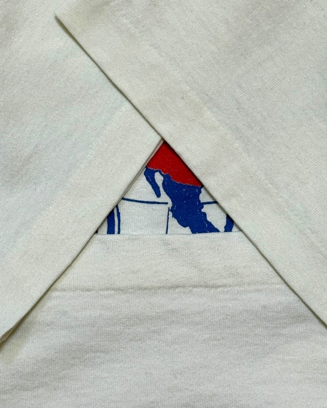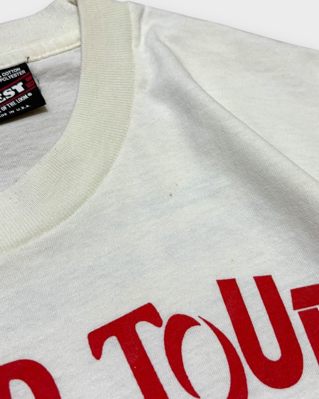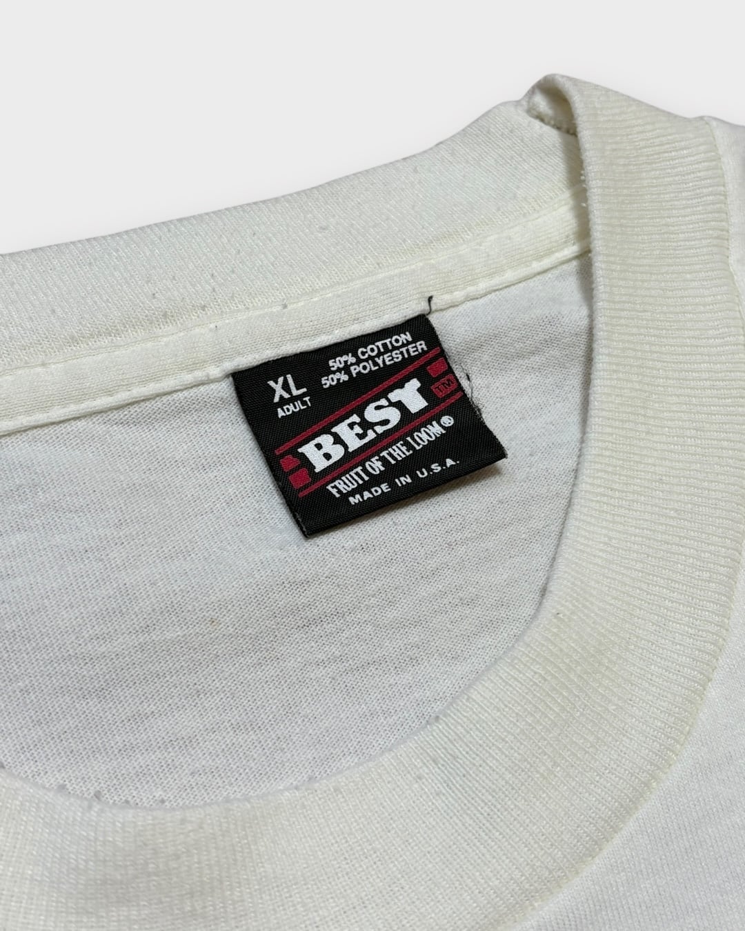 ボディはFRUIT OF THE LOOMの「BEST」タグ、MADE IN USA。柔らかなコットンポリの混紡生地で、シングルステッチ仕様も嬉しいポイント。