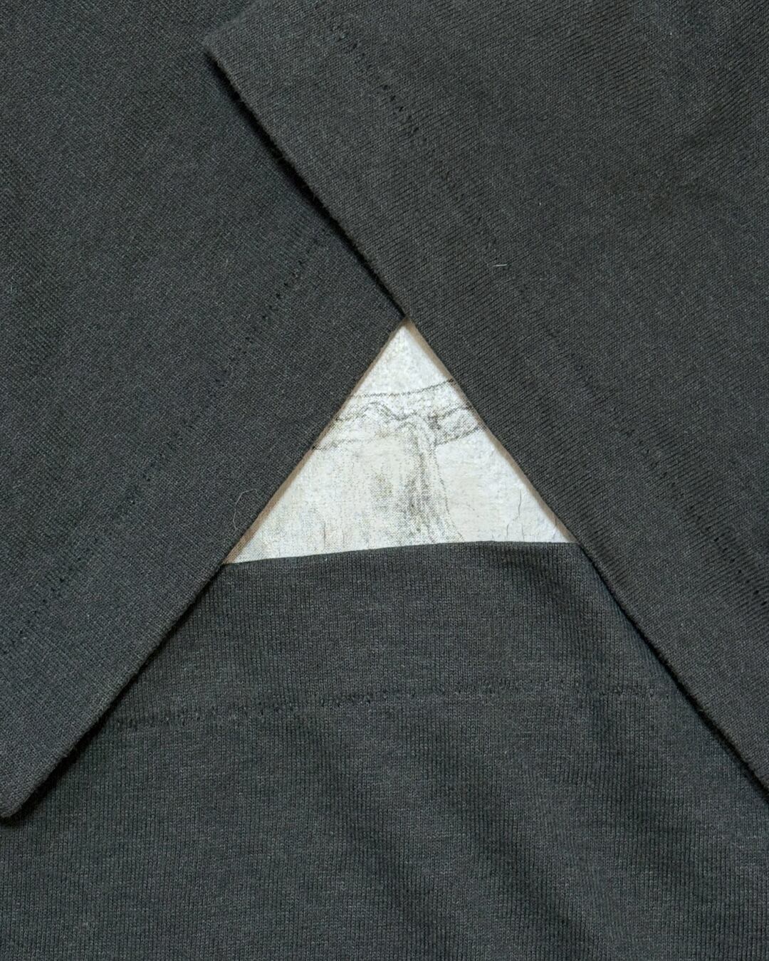 ボディはFRUIT OF THE LOOM “BEST”、MADE IN USA。シングルステッチ仕様、ほどよく色褪せたフェードブラックが雰囲気をより引き立てます。