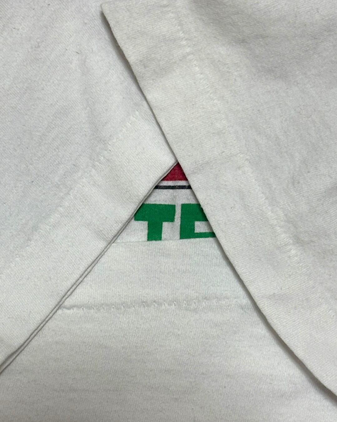 1980年代製、アメリカ製のヴィンテージプリントTシャツ。ボディは1980'sのSCREEN STARS。プリントに赤・緑・黒の大胆な配色が目を引きます。