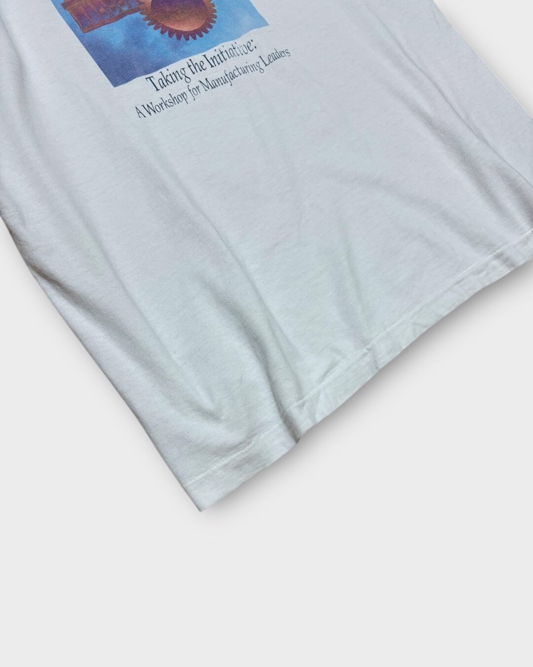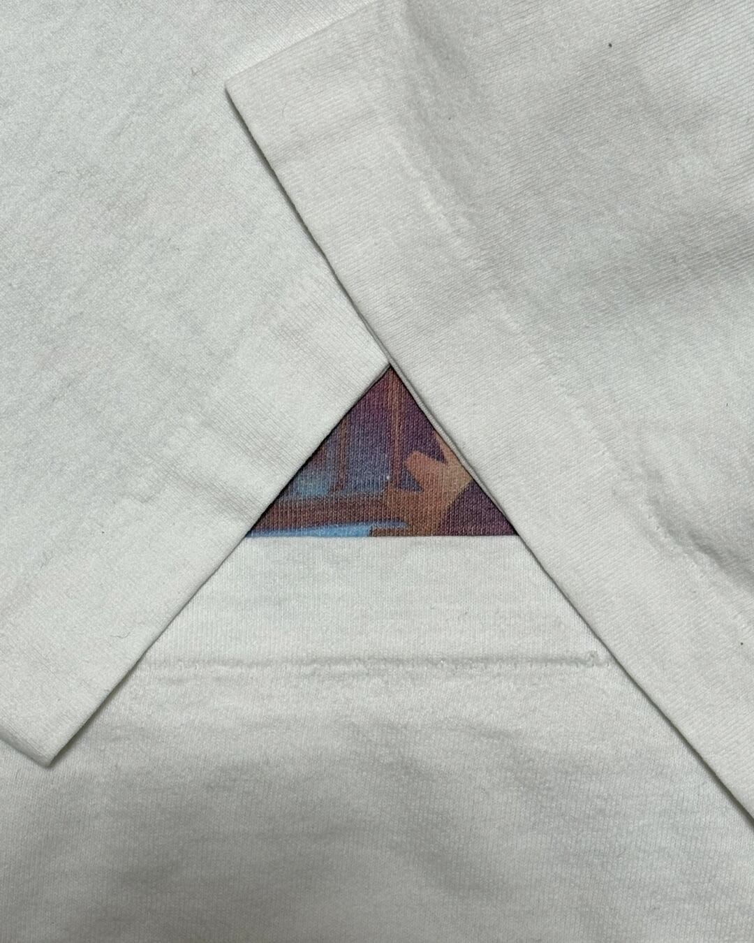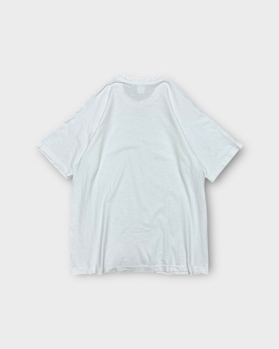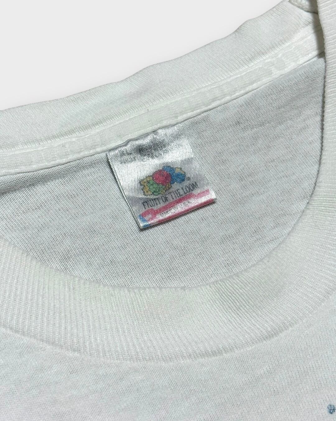 90年代らしい企業カルチャーを感じさせる、どこかアート的な雰囲気も漂うプリントTシャツです。