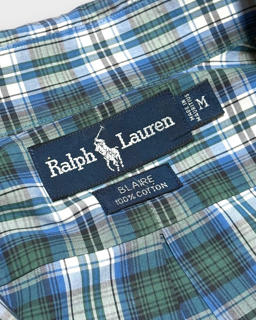 【VINTAGE】1990’s “Ralph Lauren” BLAIRE S/S B.D. Shirt Green Check