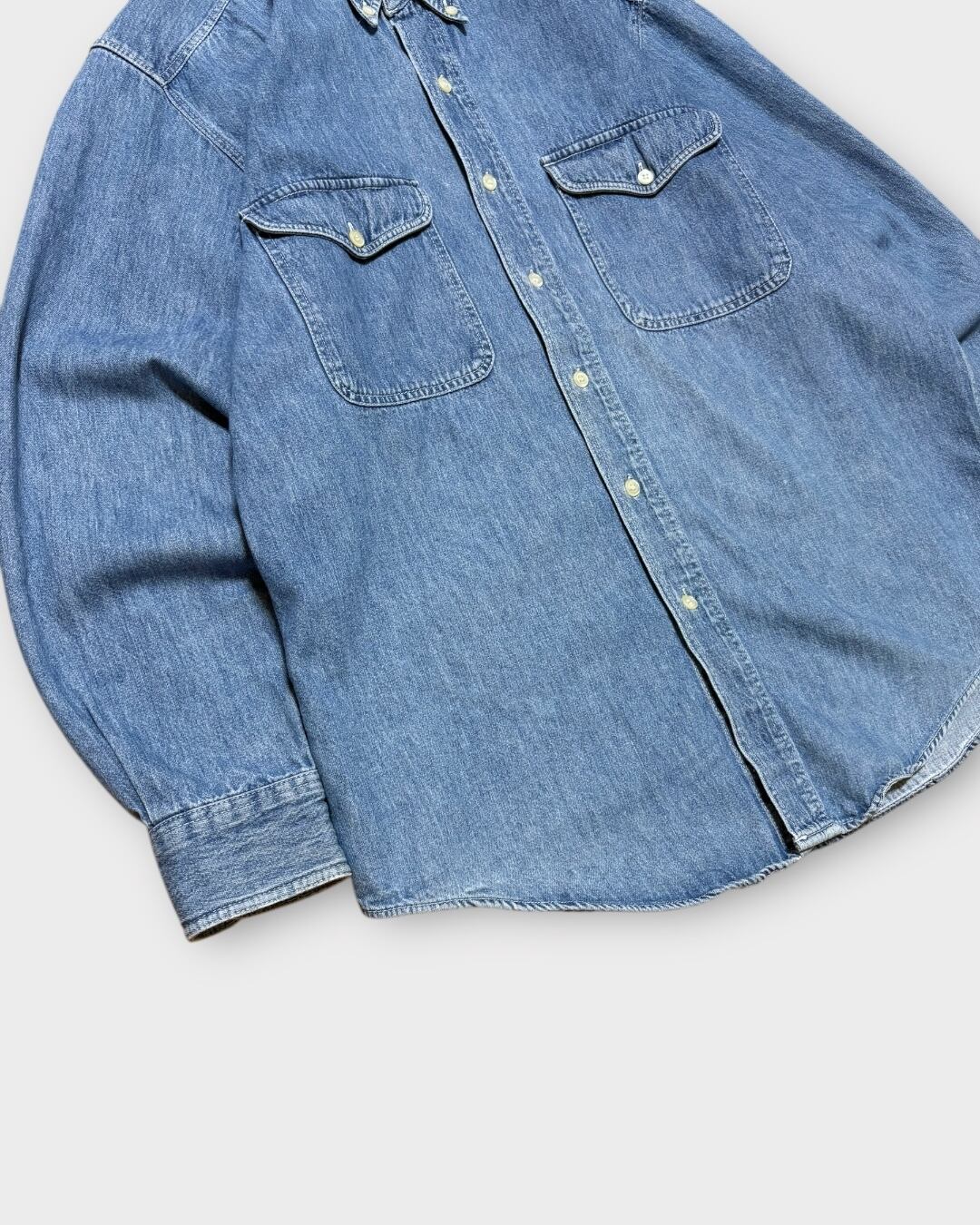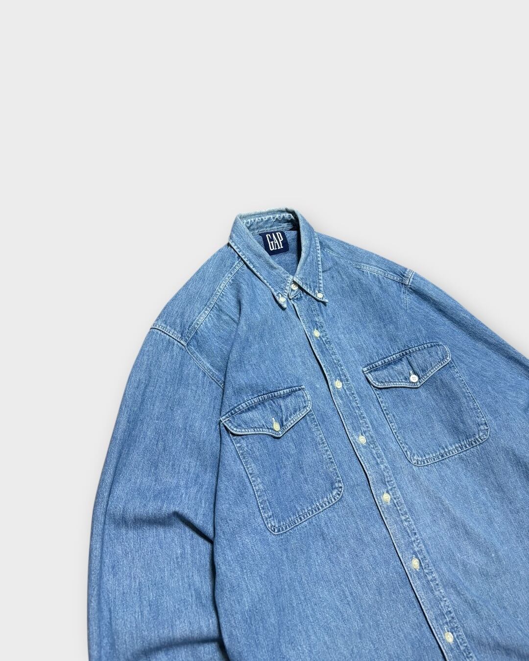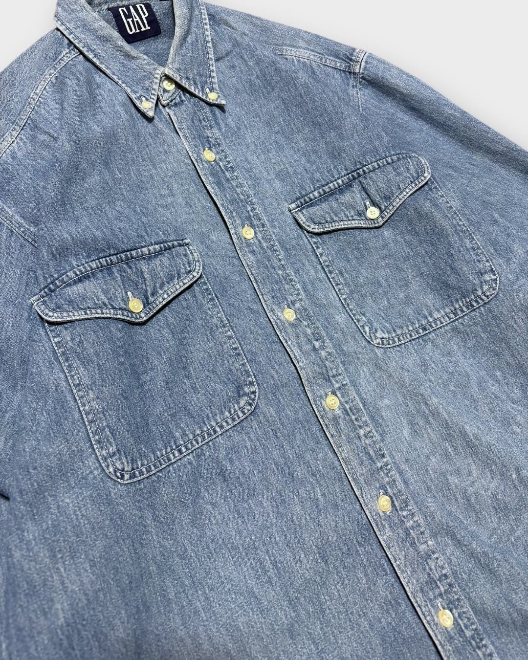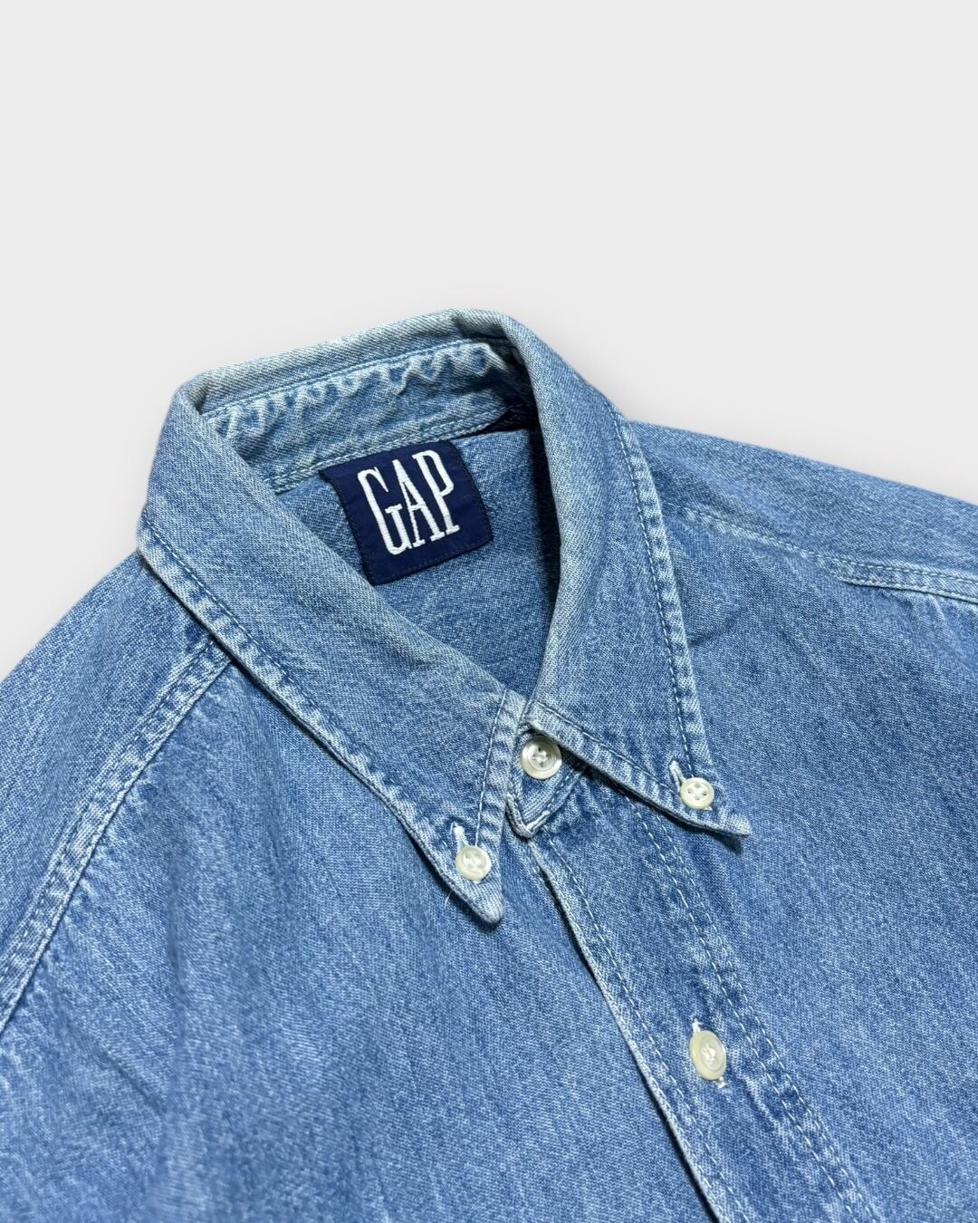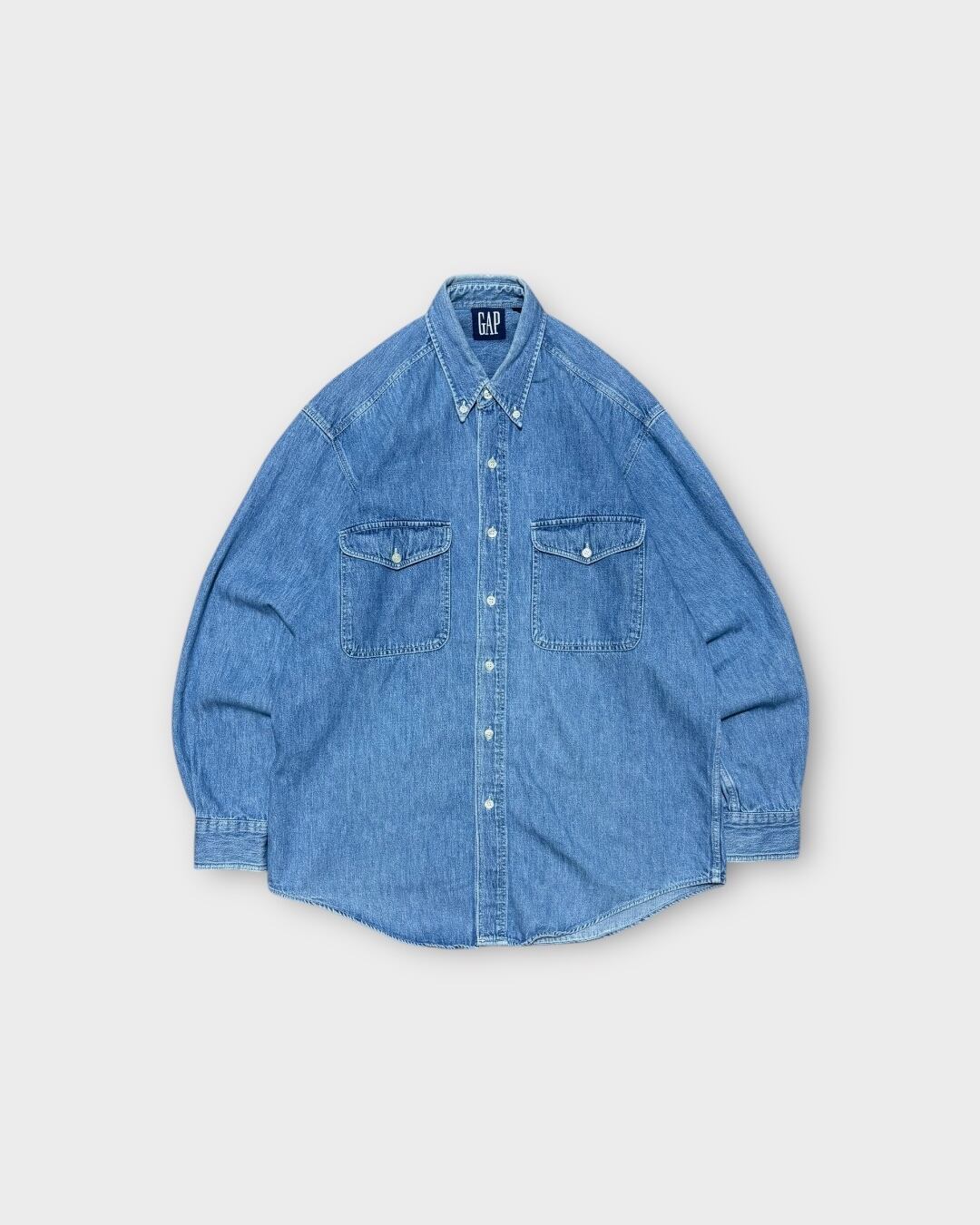 1990年代のGAPより、雰囲気のあるインディゴデニムのボタンダウンシャツ。ややフェードした色合いが魅力で、着込むほどに風合いが増す生地感です。
