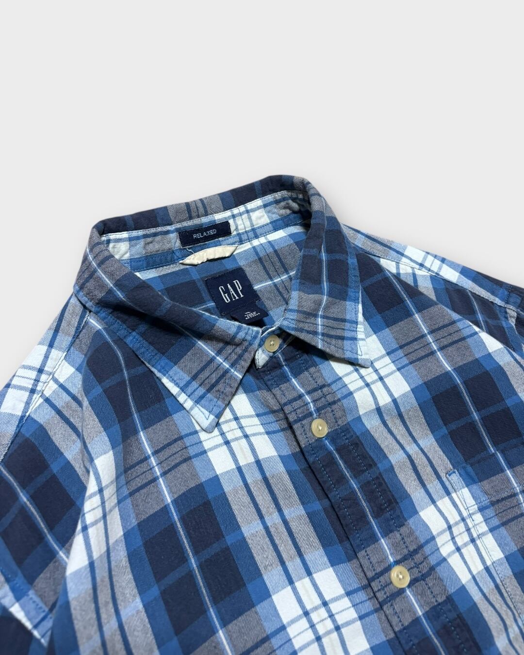 2000年代のGAPより、ブルーとホワイトを基調にしたチェック柄のフランネルシャツ。
