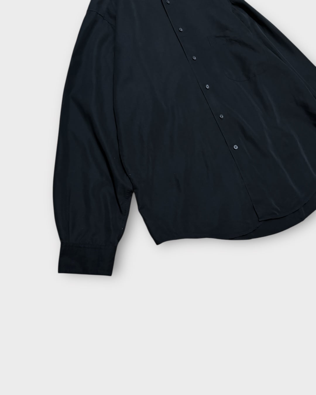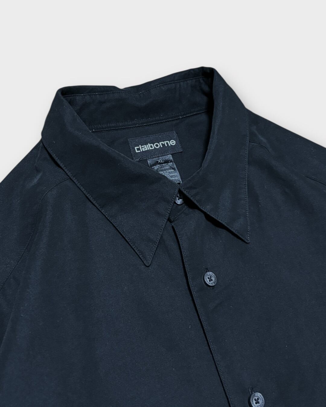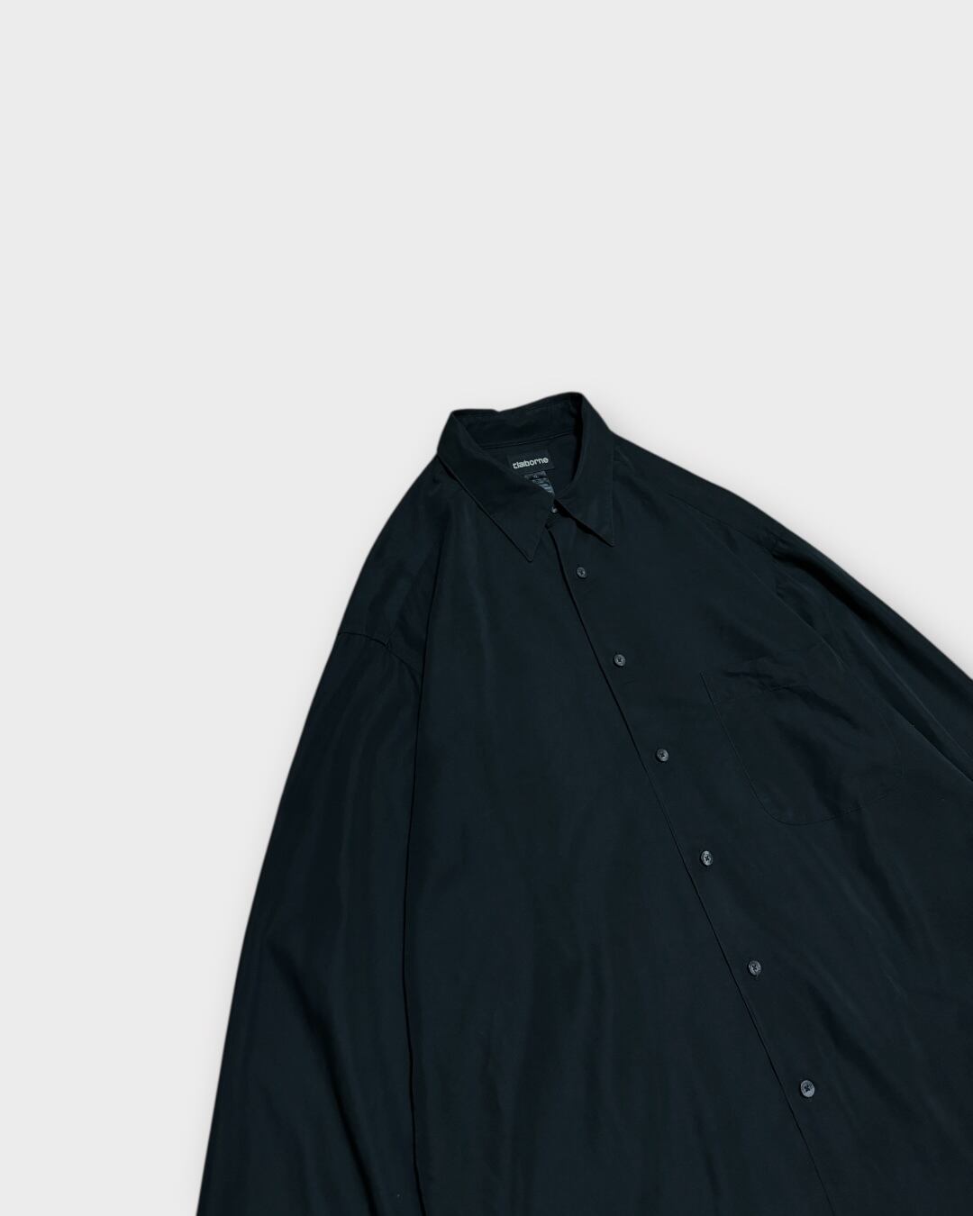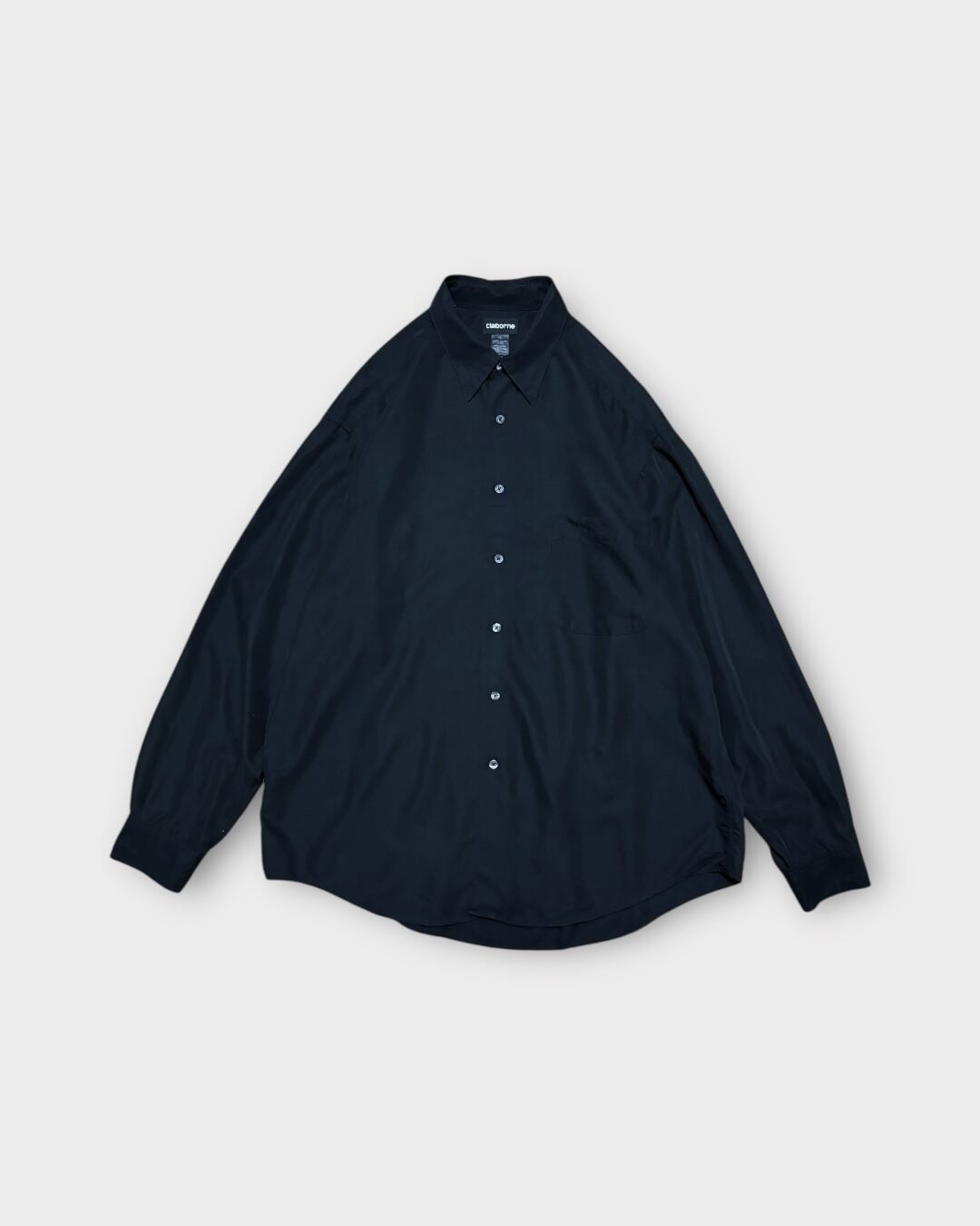 とろみのある落ち感が魅力のレーヨン混シャツ。アメリカブランド「Claiborne」より、深みのあるブラックボディに無駄のないシンプルなデザインが映える一枚です。