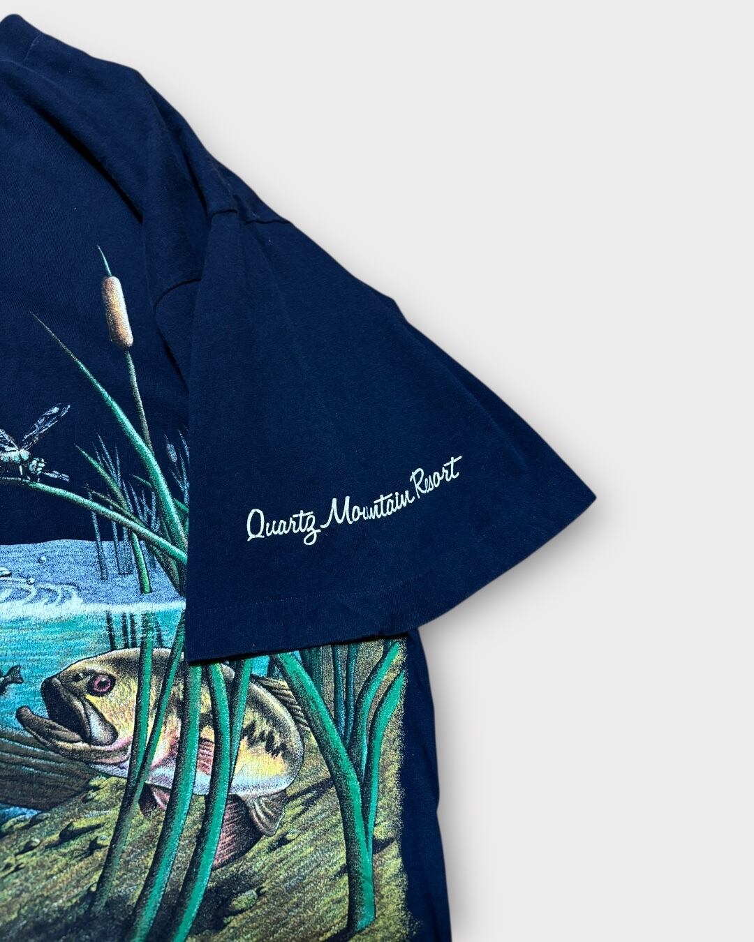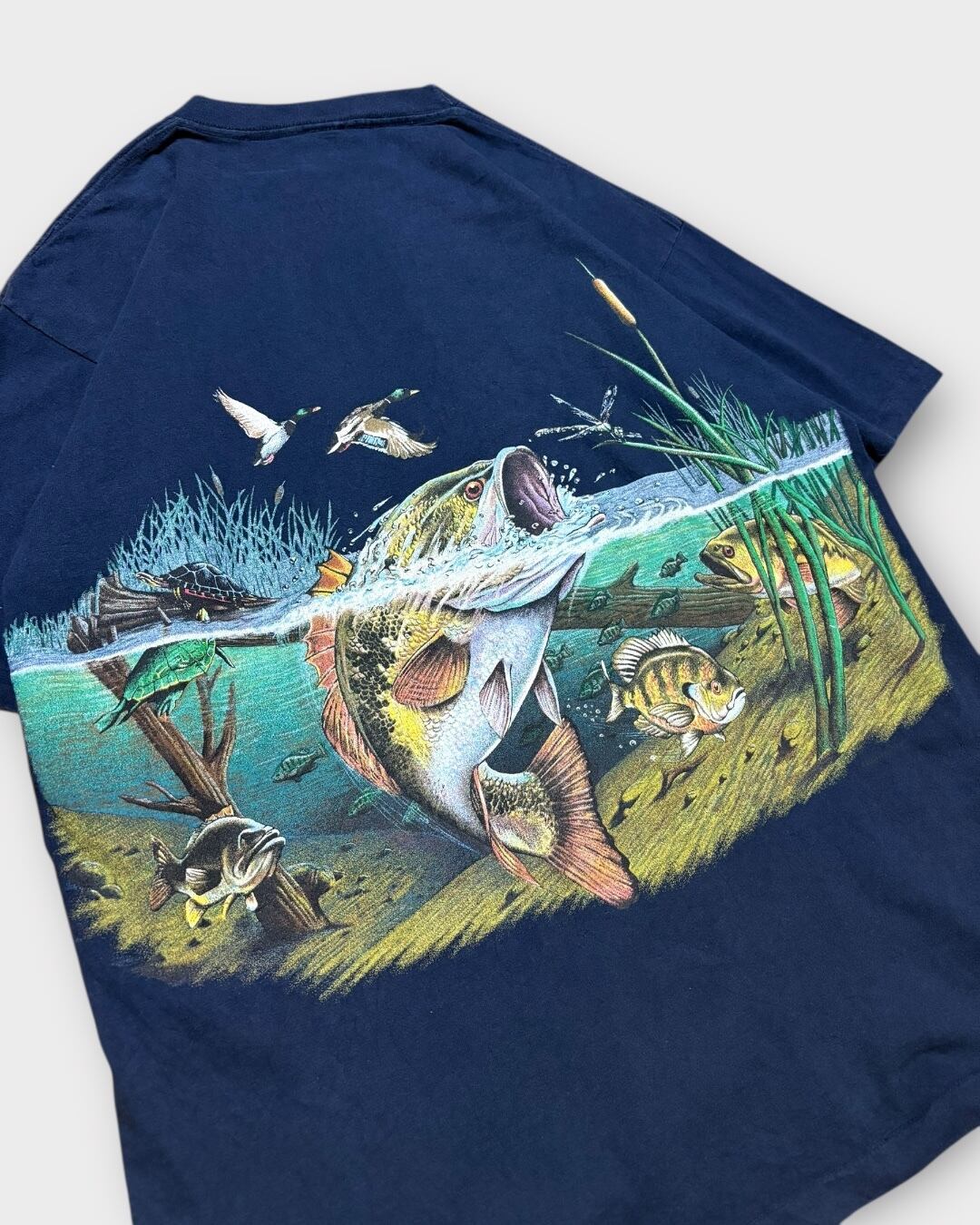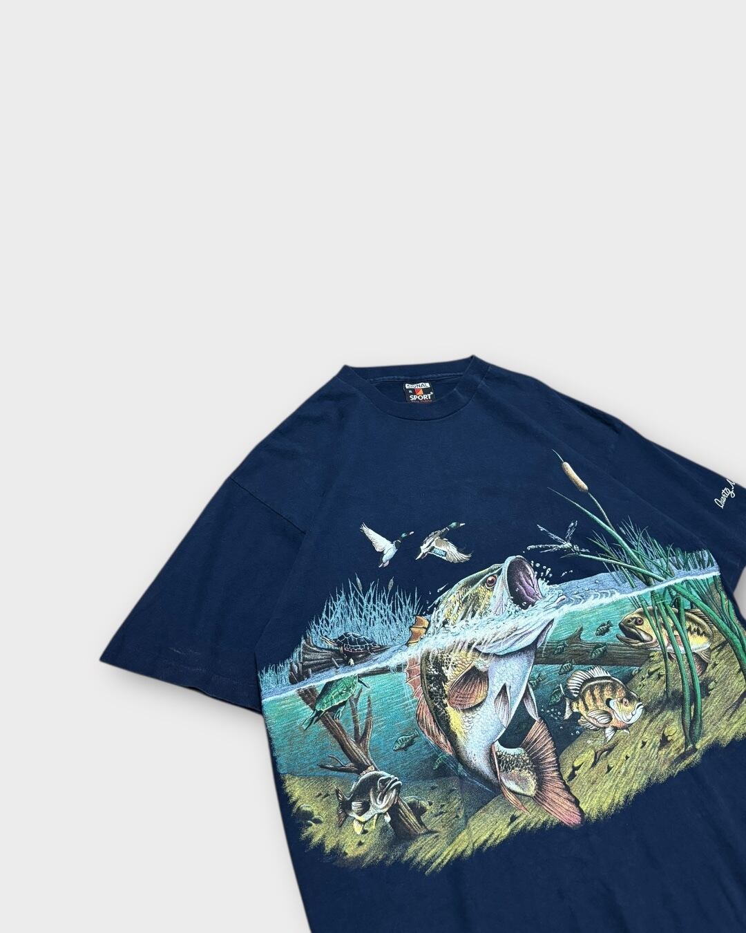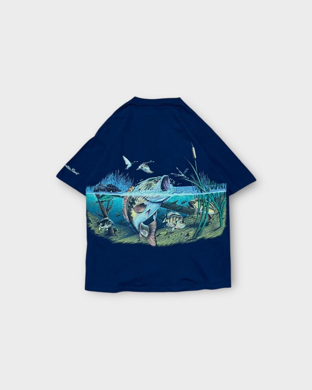 【VINTAGE】1990’s “SIGNAL SPORT” Fishing Graphic T-Shirt Navy MADE IN USA