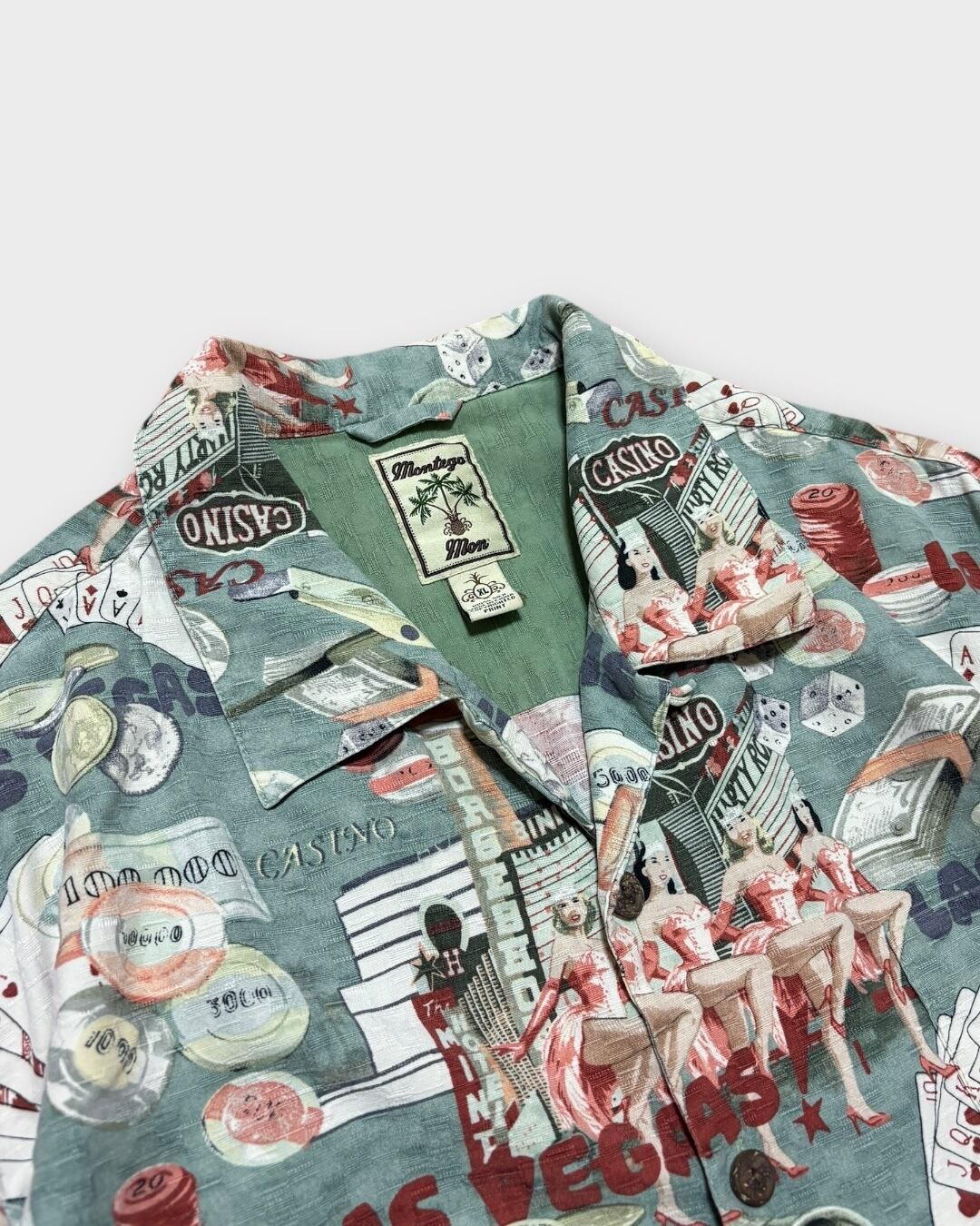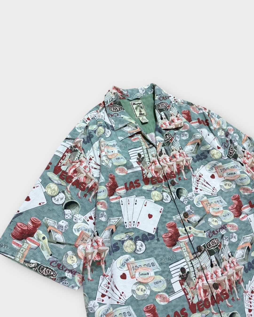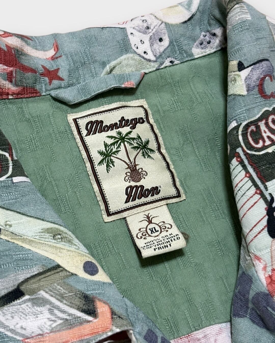 ラスベガスをテーマにした総柄が目を惹く、Montego Monのシルクシャツ。