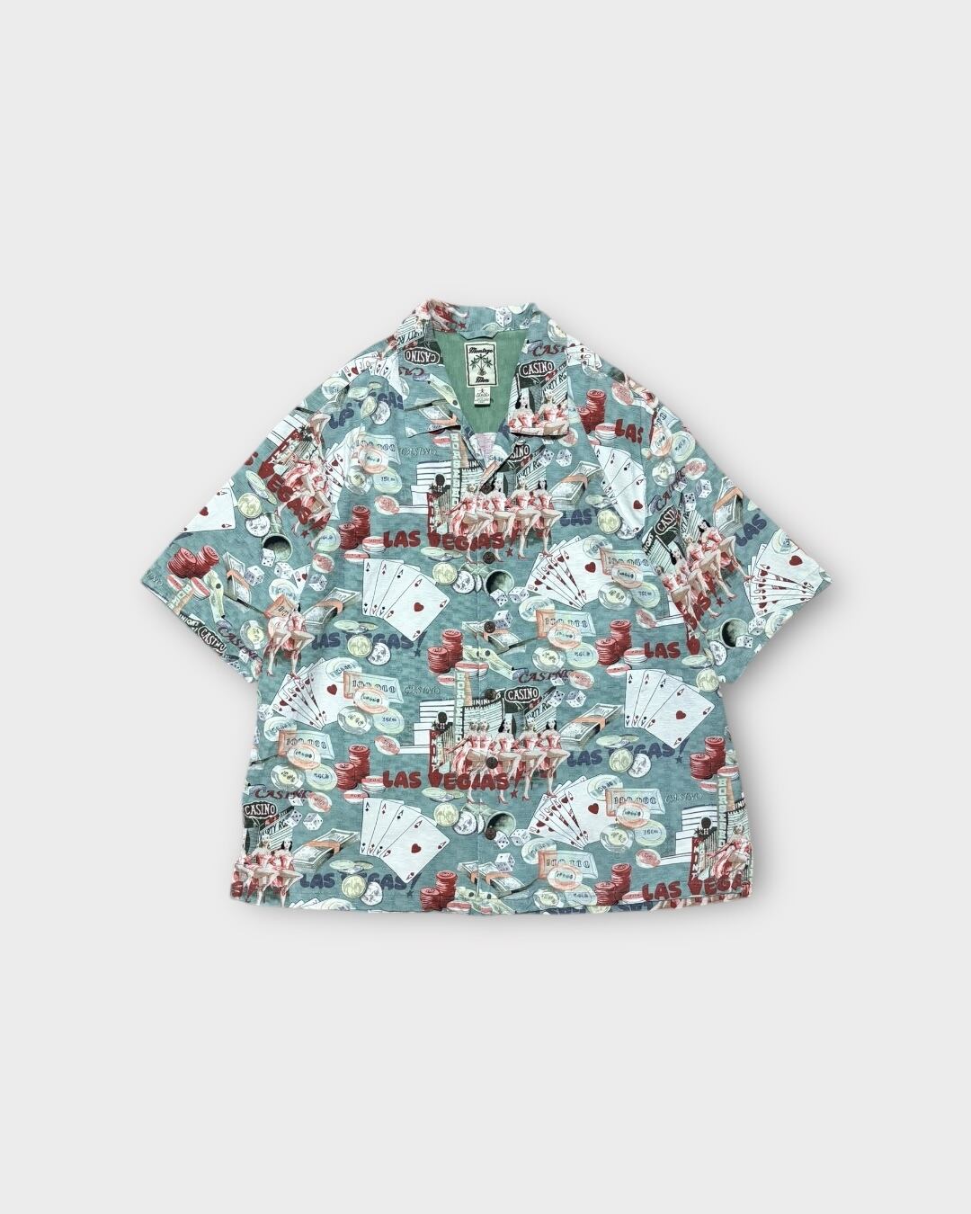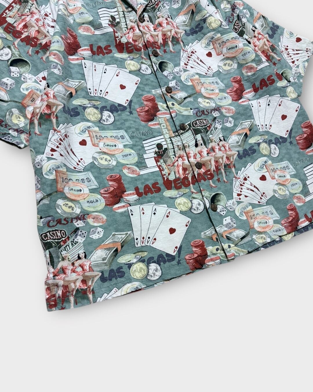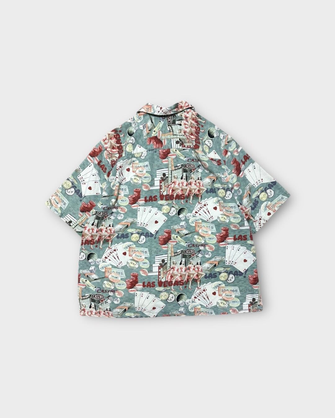 ラスベガスをテーマにした総柄が目を惹く、Montego Monのシルクシャツ。