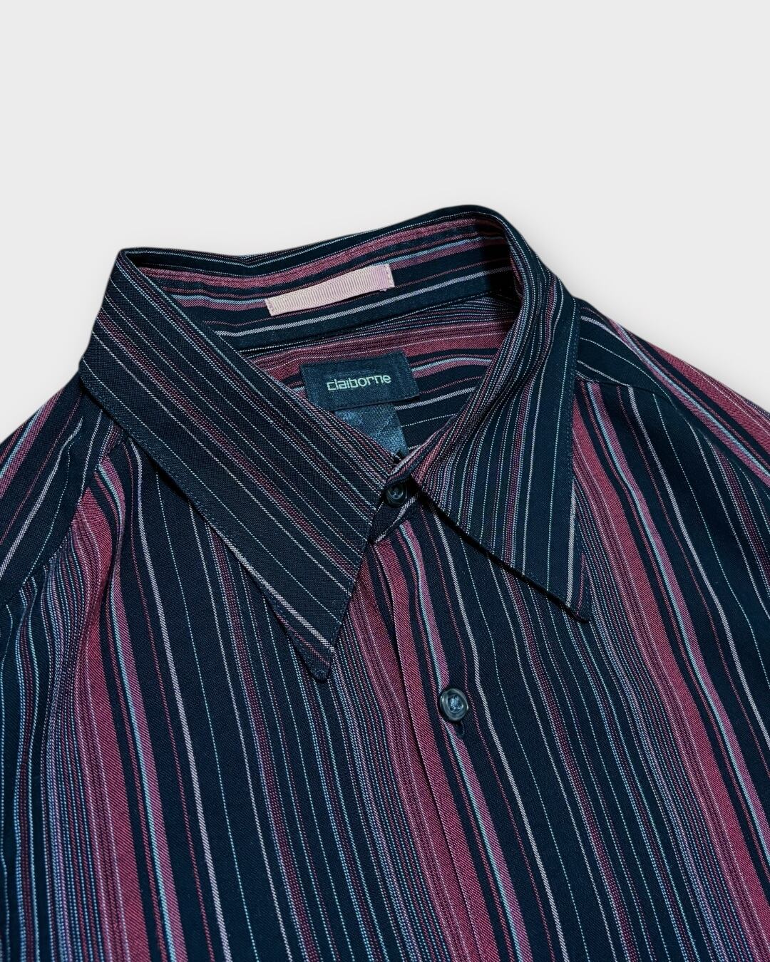 【Used】“Claiborne” Rayon Stripe Shirt XL